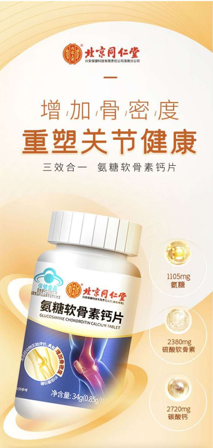 北京同仁堂氨糖软骨素钙片中老年骨质疏松补钙增加骨密度