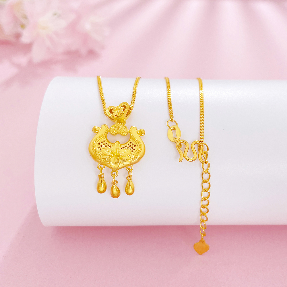 【限时克减150元】足金999 (足金999字印)5G黄金空心百合花形开百合花锁包称心如意国潮锁包调节套链(5GTL02100),(预售产品下单后不退款不退货不换货不补差价)