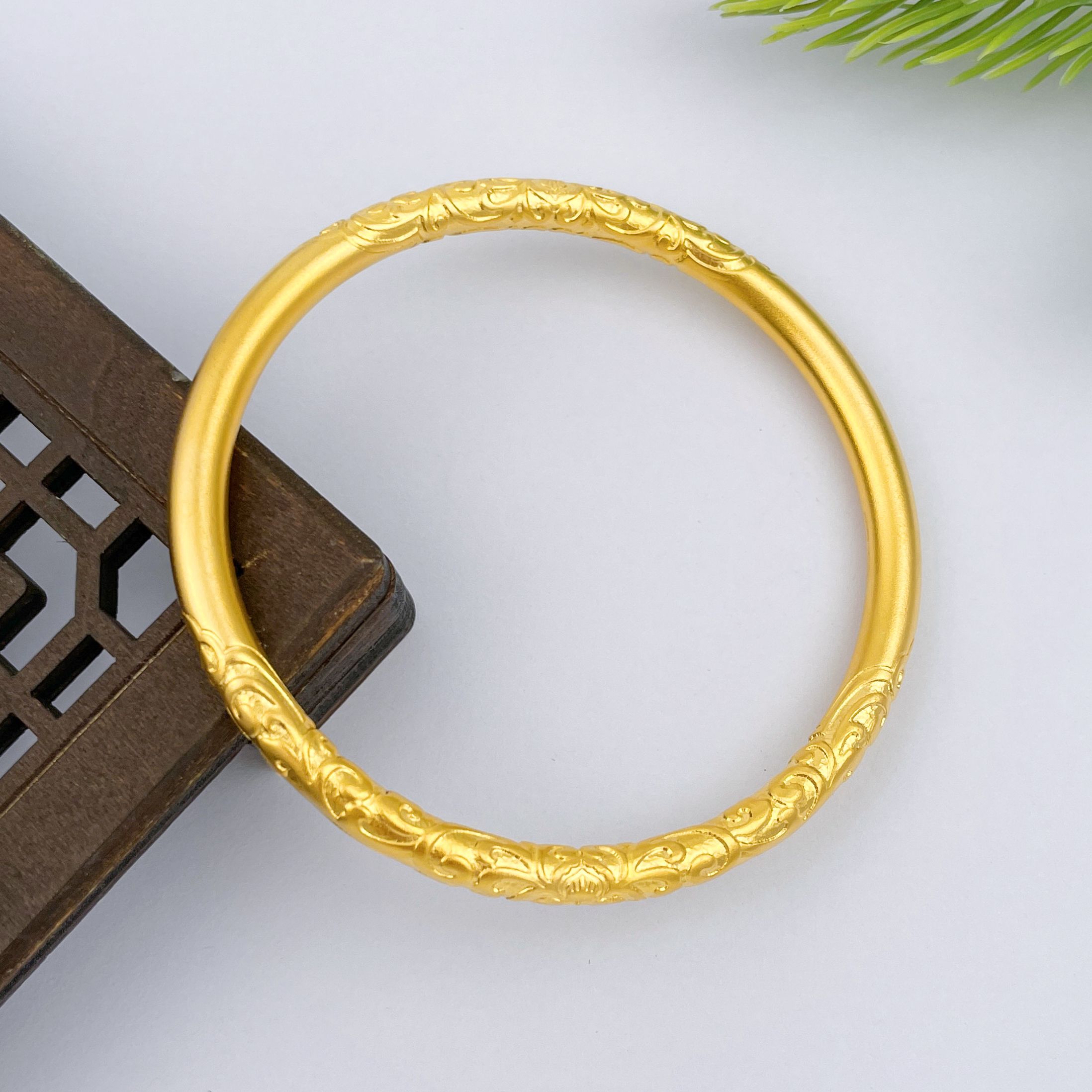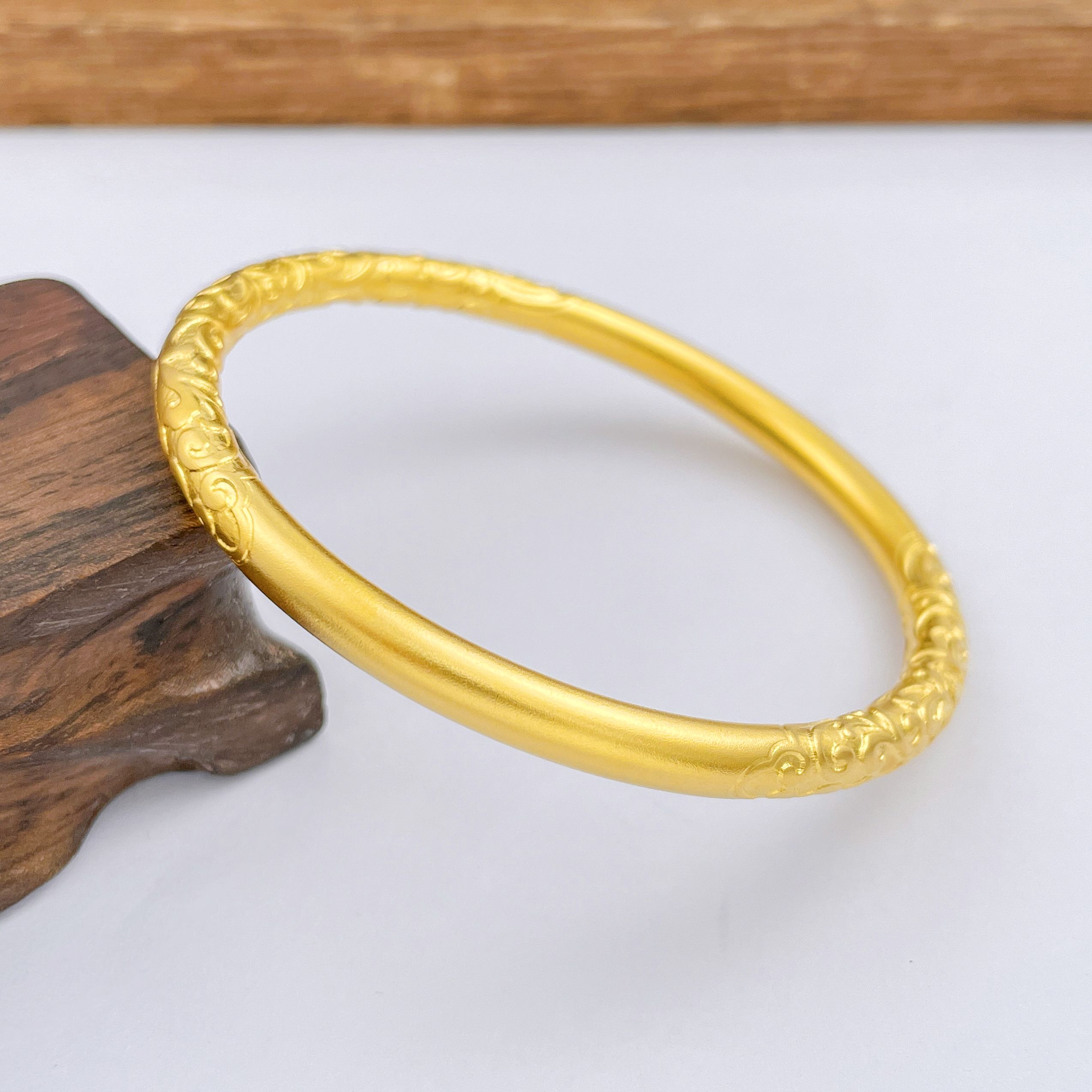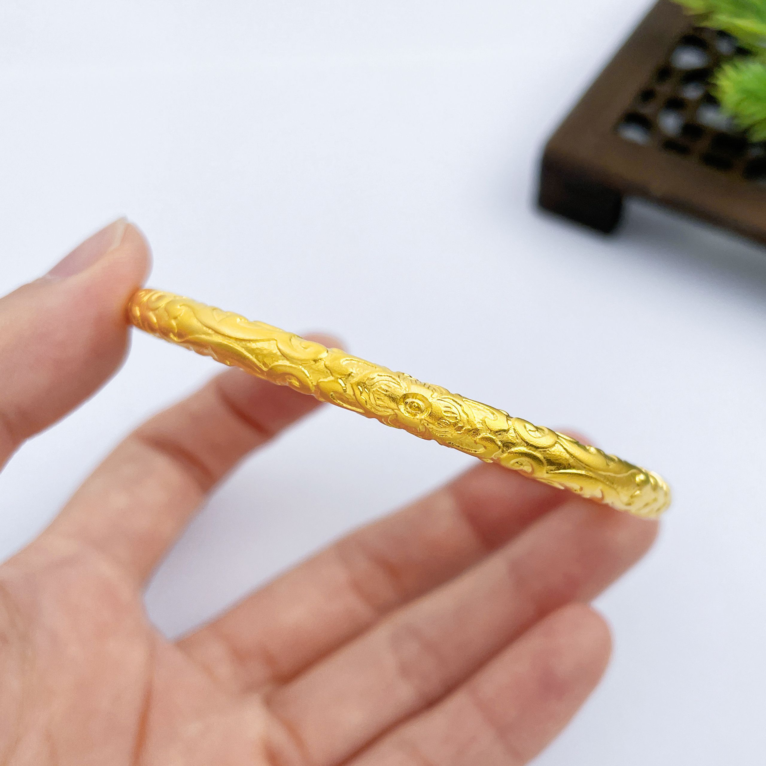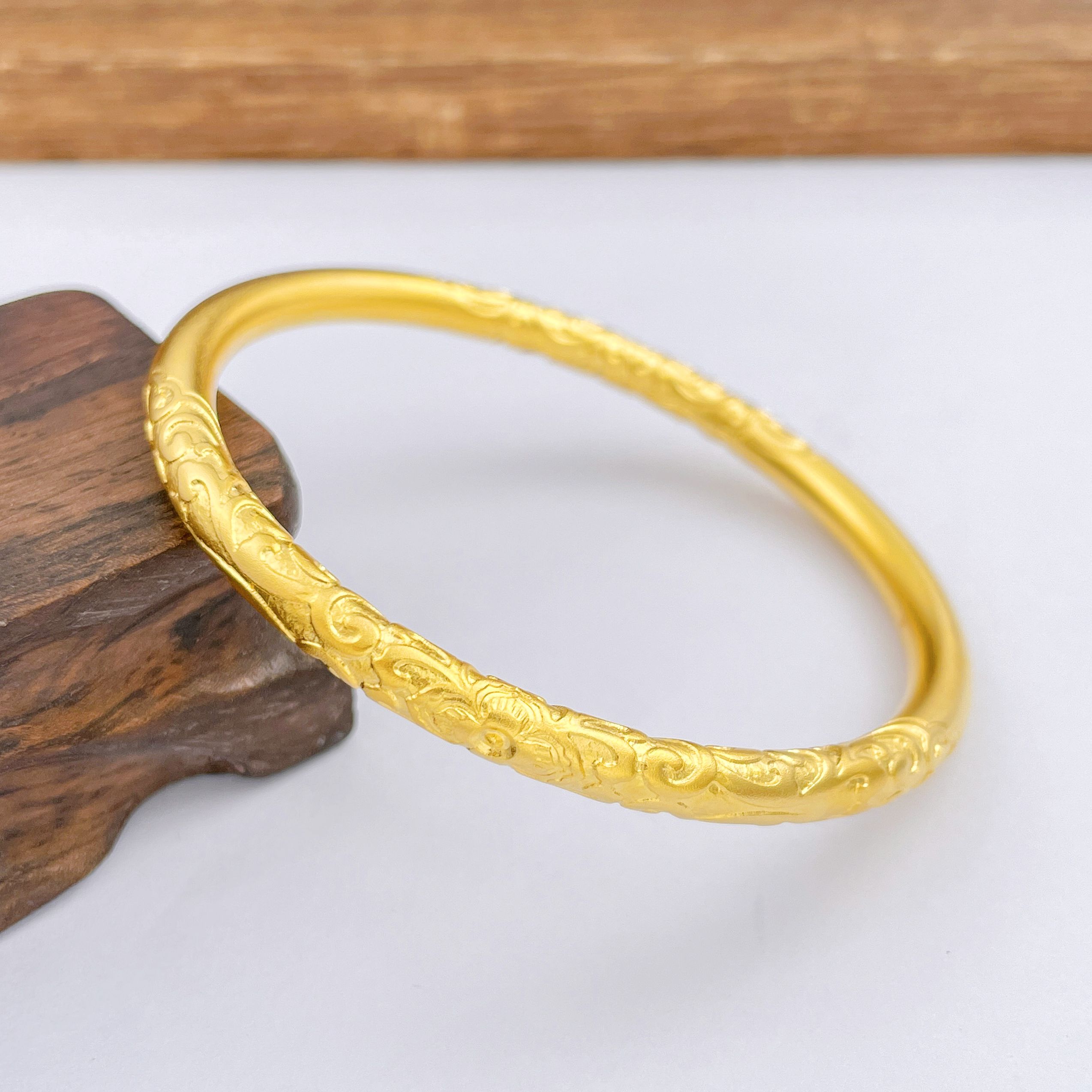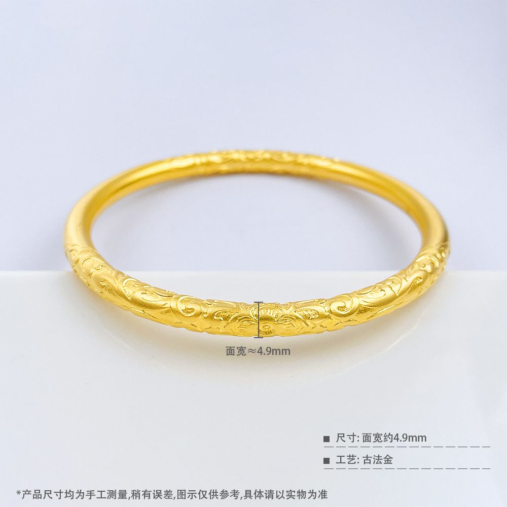【限时克减150元】足金999.9 【油亮版本】古法空心固口双边如意卷草纹手镯(面宽约4.3-4.7mm)(AIGFSZ00345-2)(预售产品下单后不退款不退货不换货不补差价)