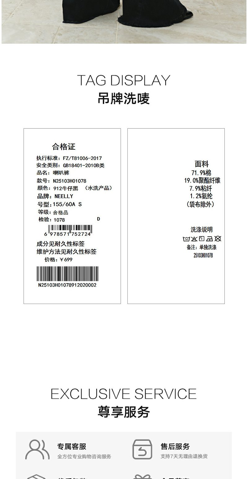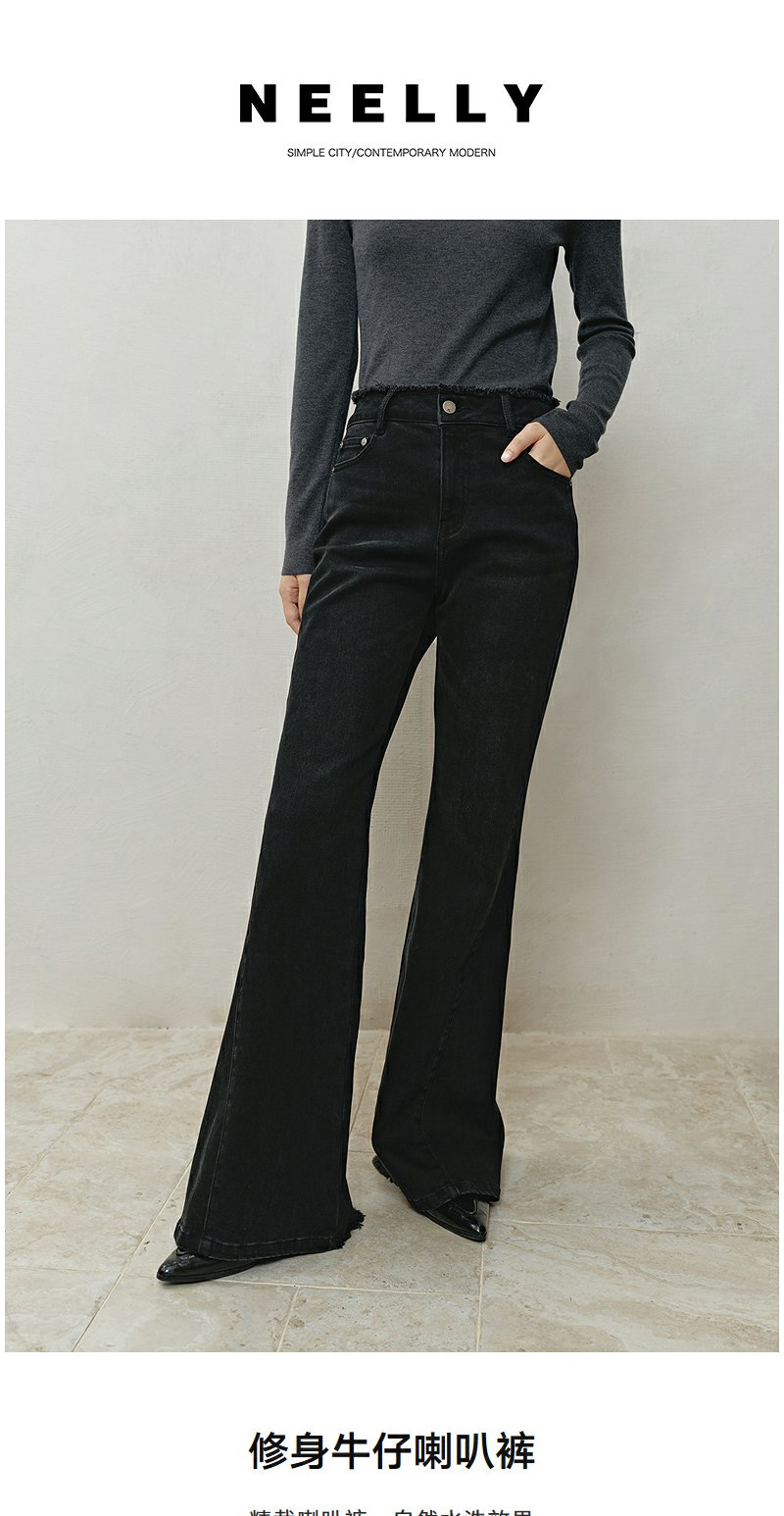 NEELLY纳俪商场同款冬季新款时尚修身显瘦喇叭裤女百搭舒适长裤N25103H01078