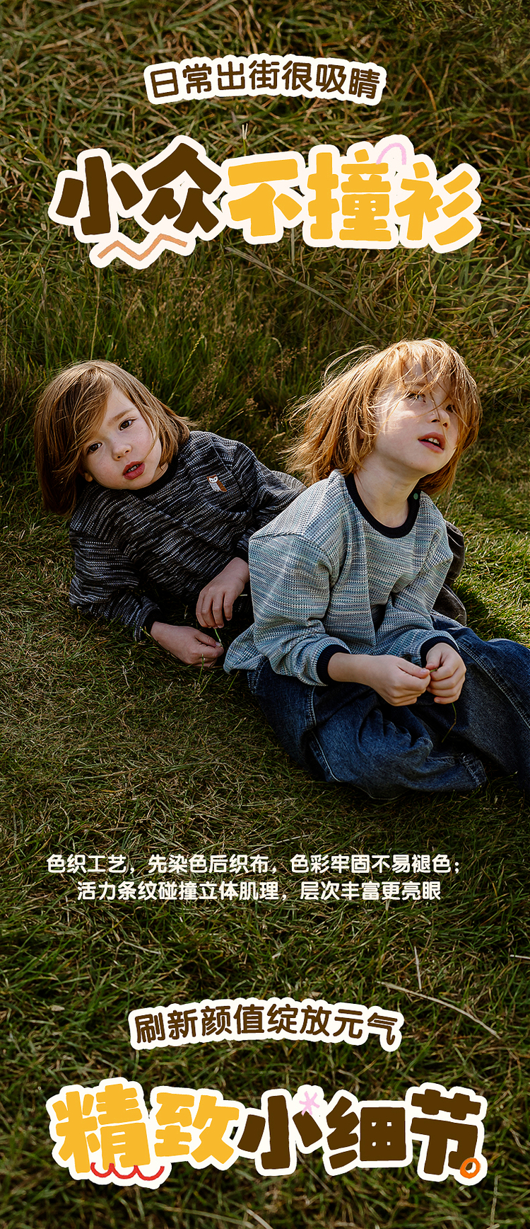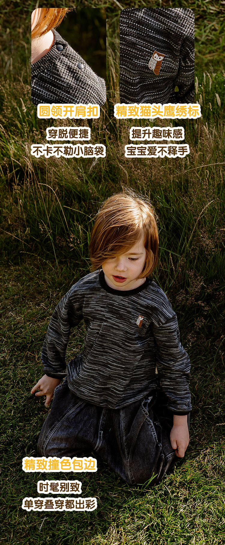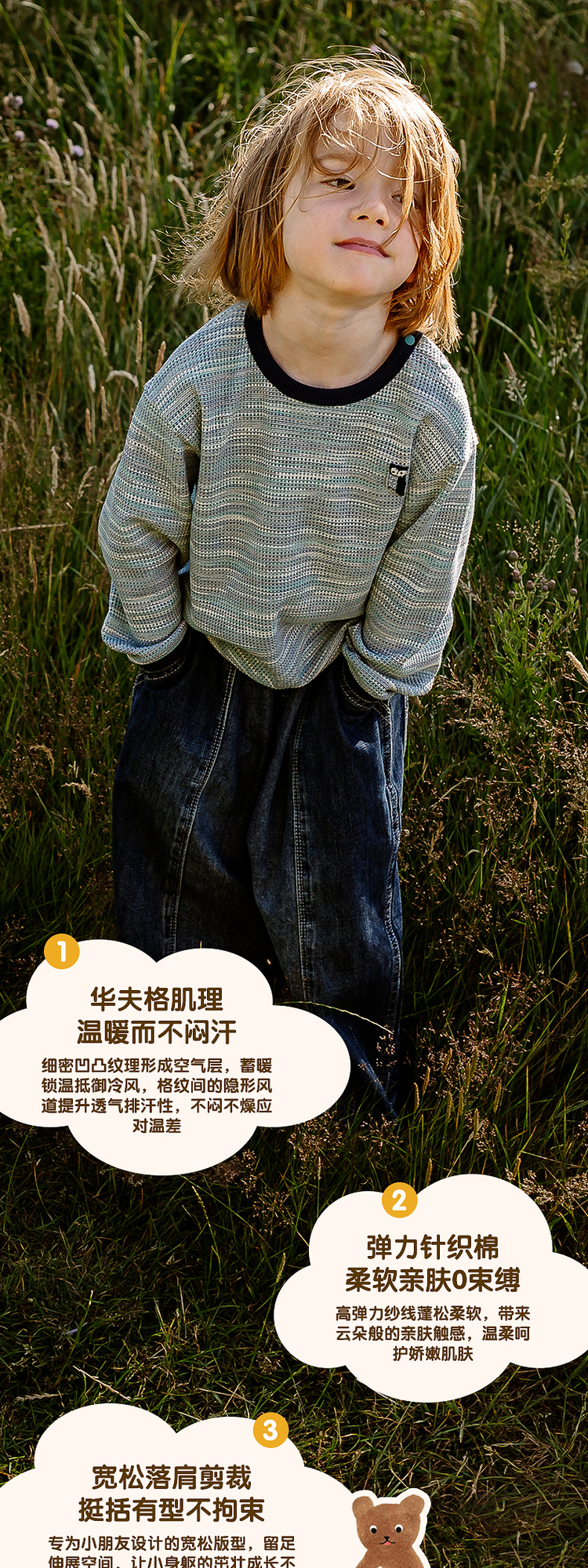 【云优选】lelejove北欧风儿童长袖T恤早秋男女宝华夫格肌理感T恤内搭上衣
