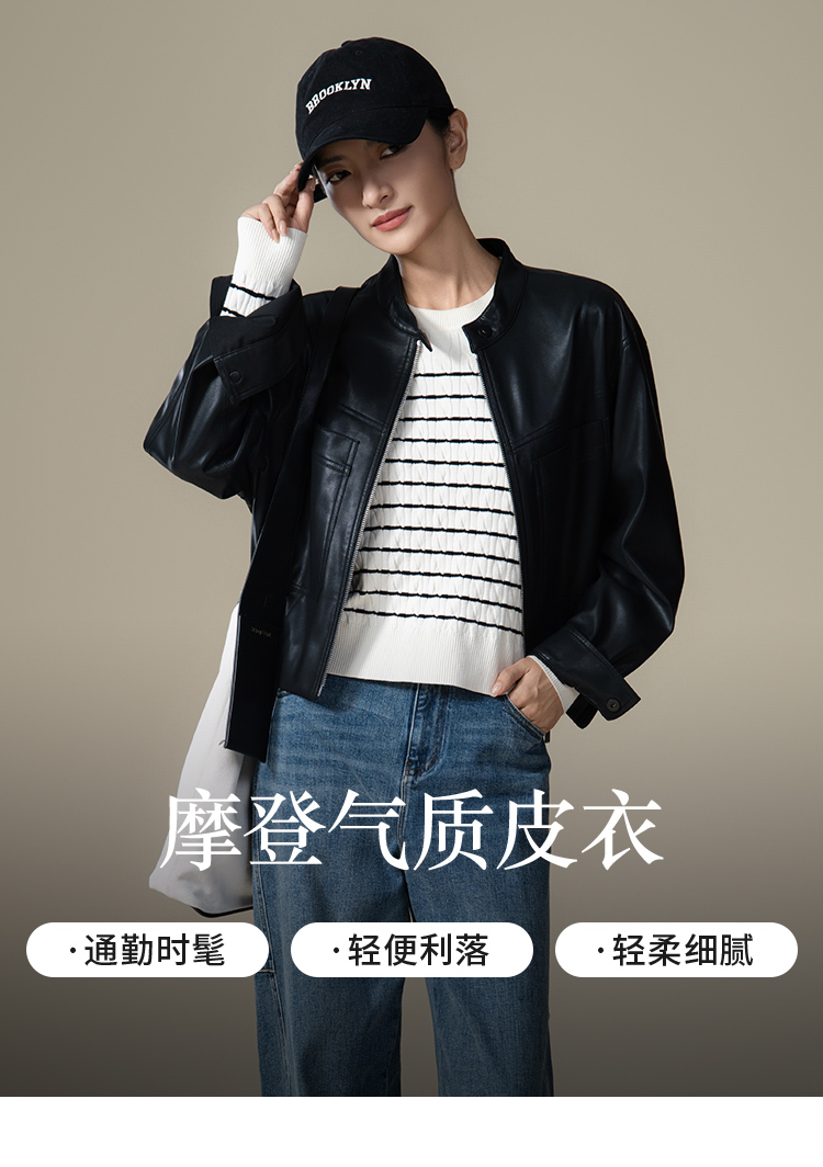 【商场同款】CNJ5850 “ 甜酷皮衣” 柔软蛋白皮 轻盈好穿 版型显瘦包容 夹克外套