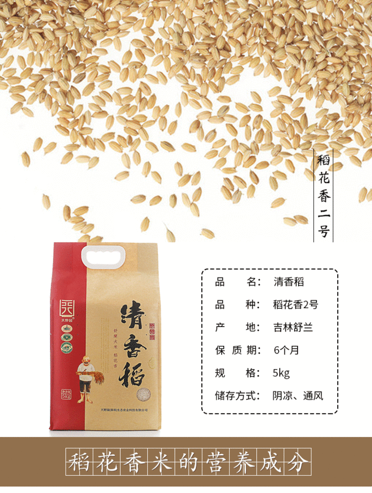 天野园·清香稻 5kg 舒兰平安镇 稻花香2号 东北大米 真空包装