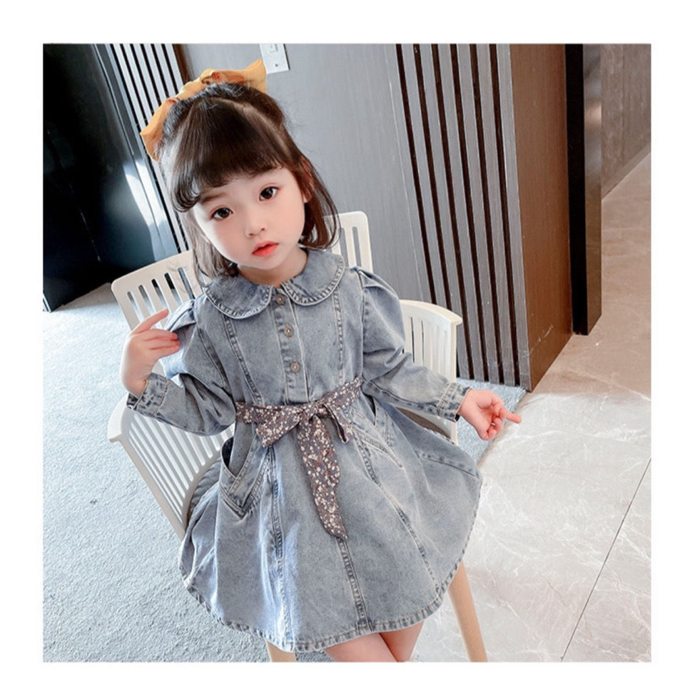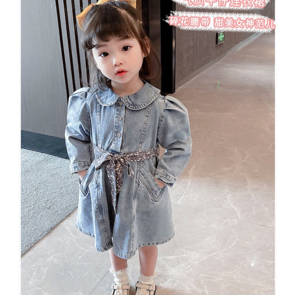 女童牛仔连衣裙春秋洋气韩版新款女宝宝小童儿童时髦公主春装