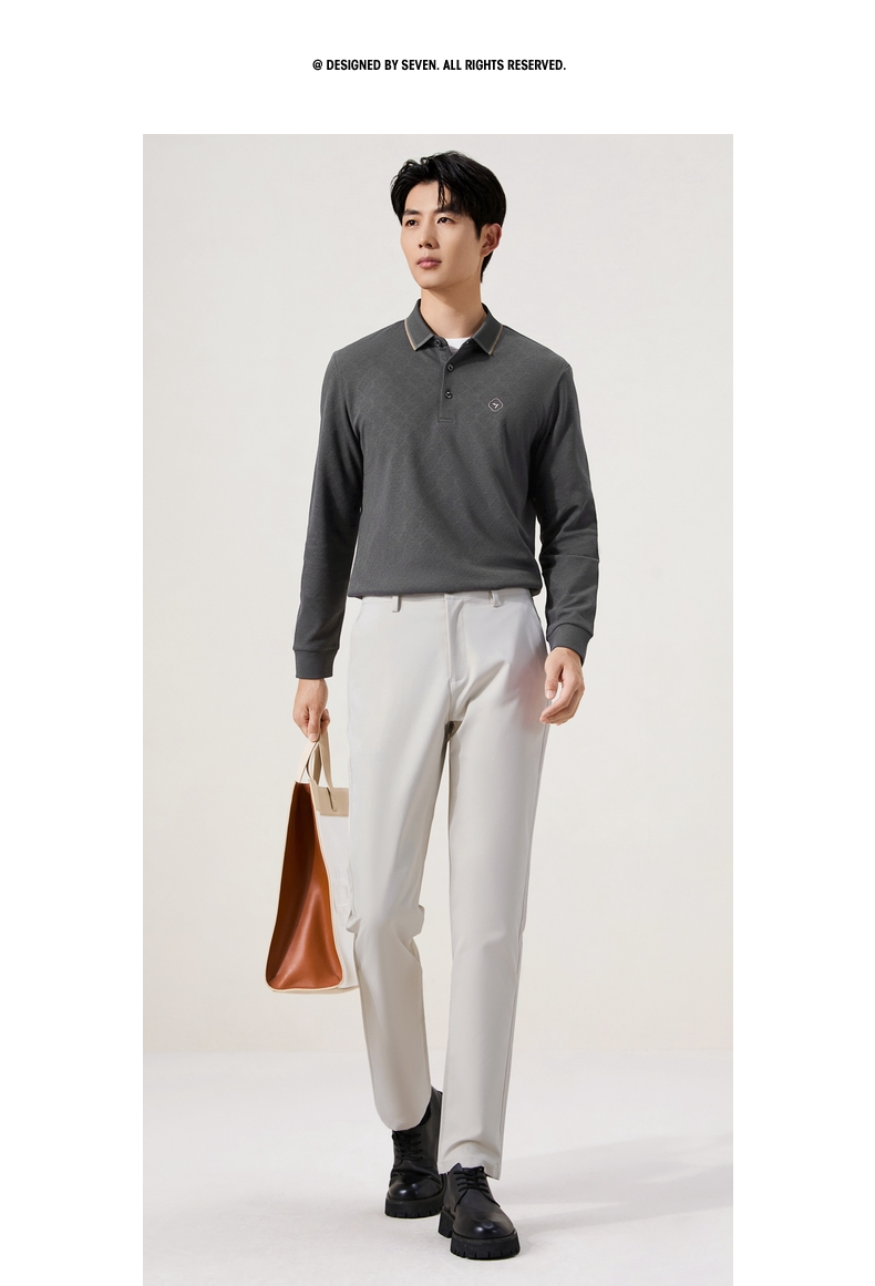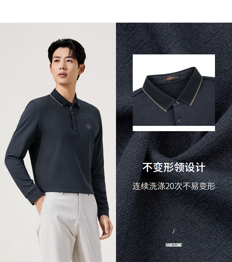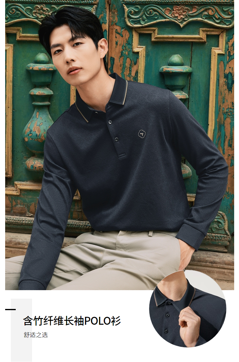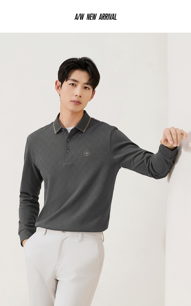 【竹纤维/满身提花/不变形领】柒牌polo衫男长袖休闲商务翻领T恤129T70700