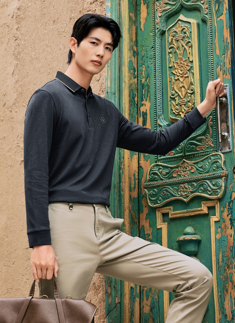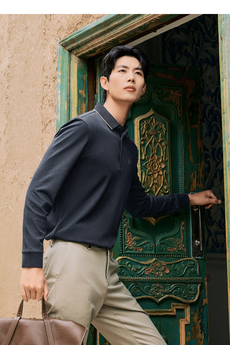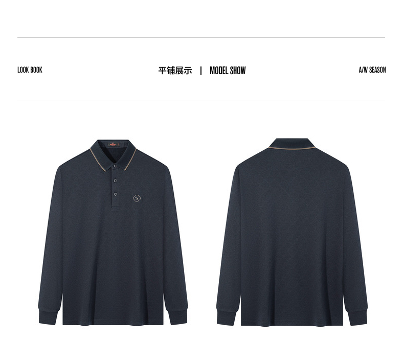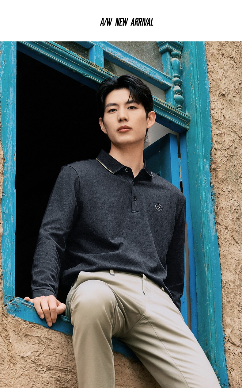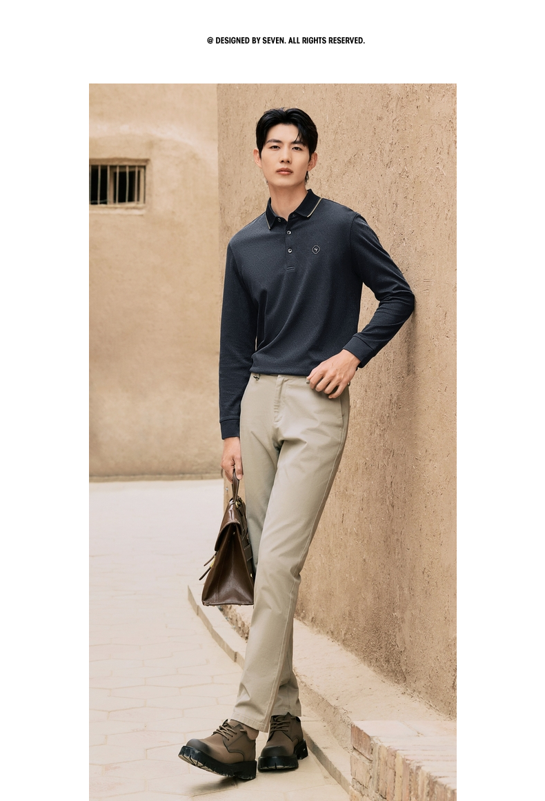 【竹纤维/满身提花/不变形领】柒牌polo衫男长袖休闲商务翻领T恤129T70700