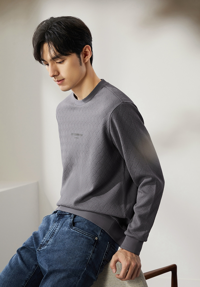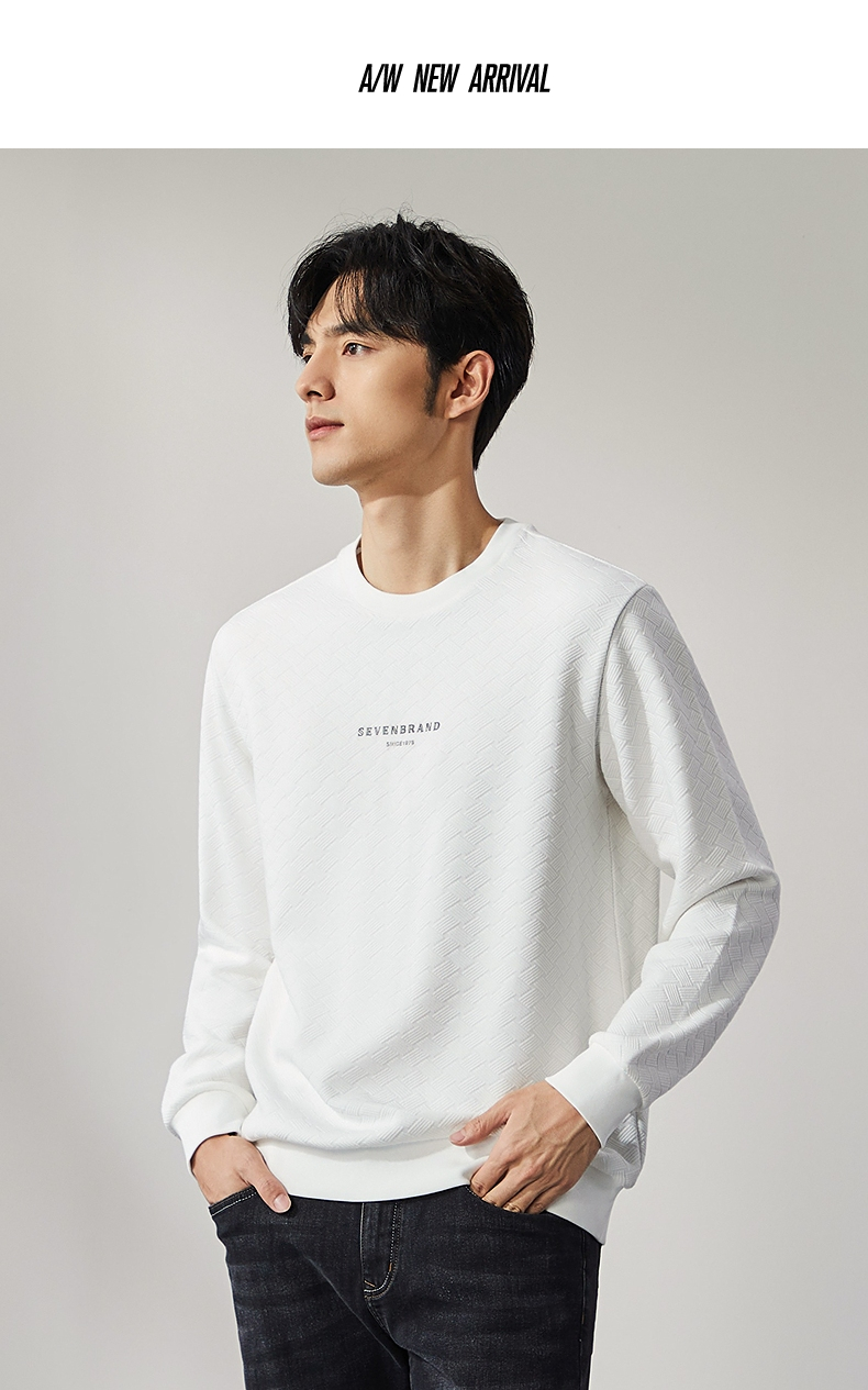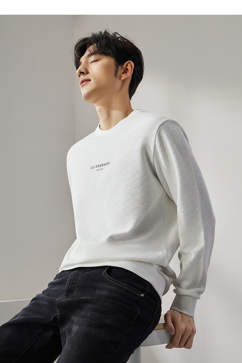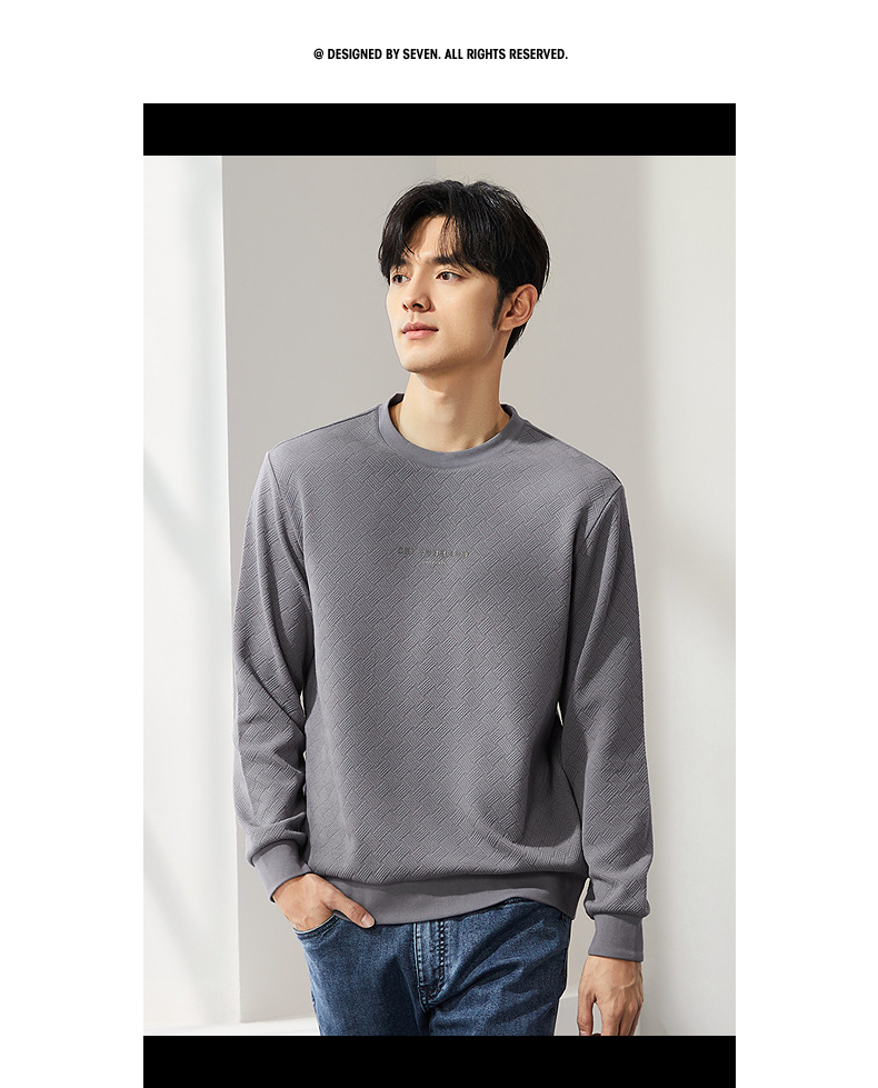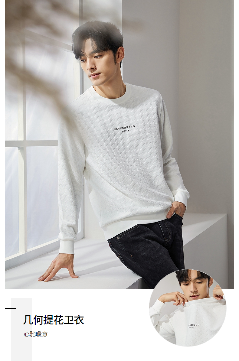 柒牌男装圆领卫衣男2024秋季新款空气层几何提花时尚休闲套头上衣 127W70150