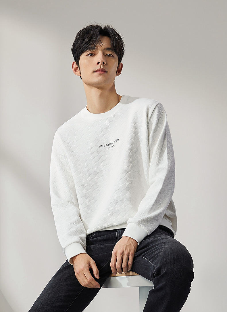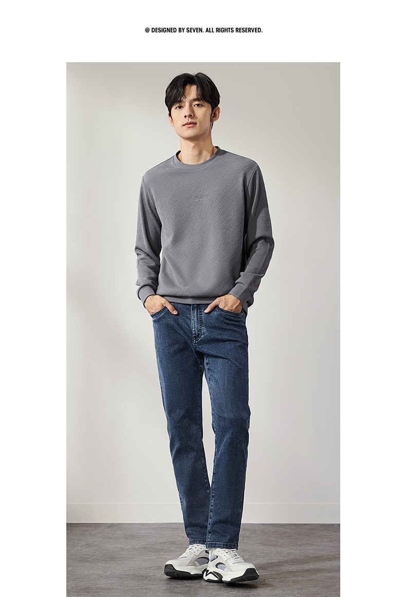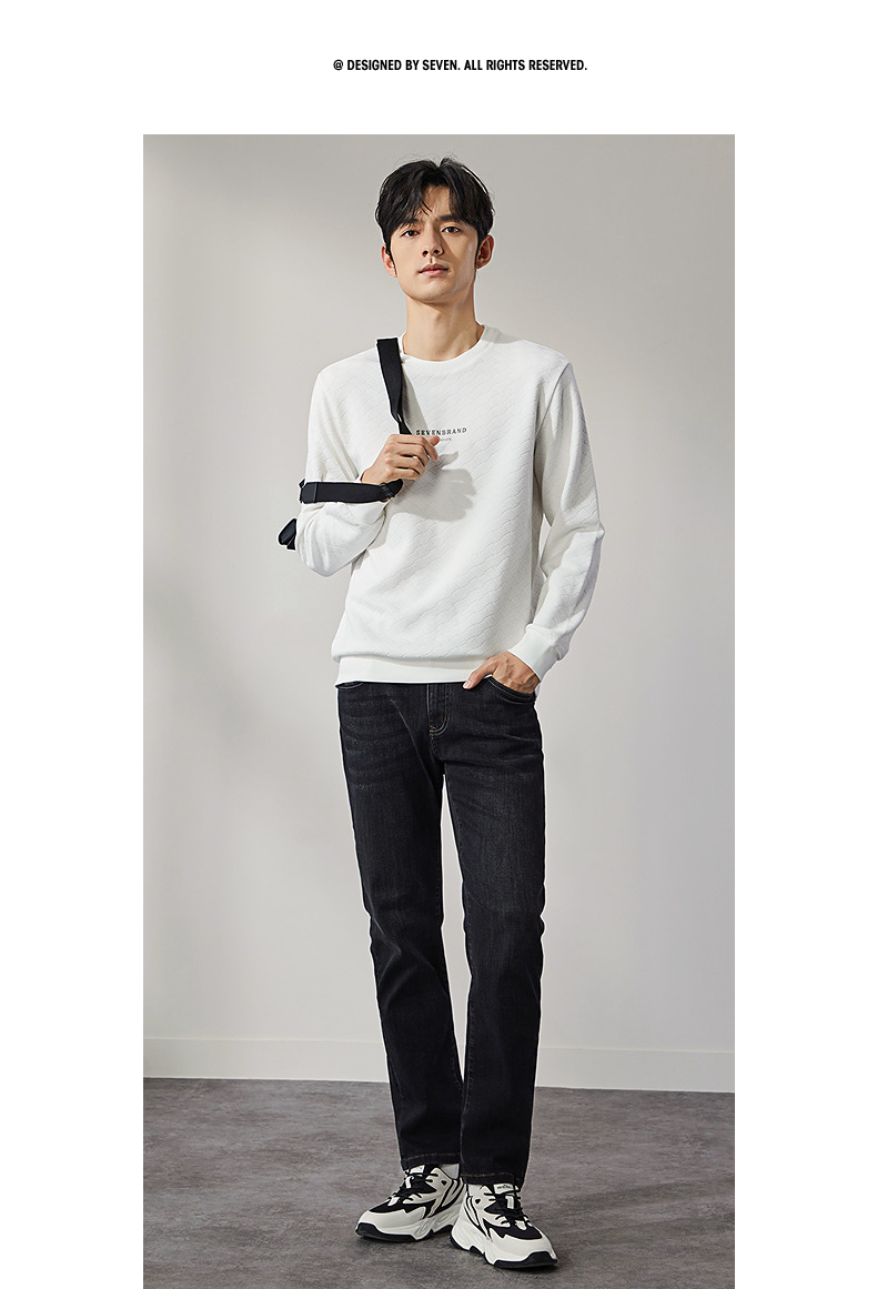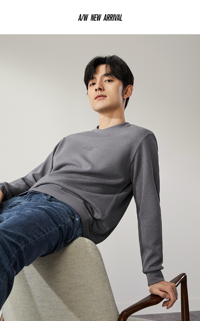 柒牌男装圆领卫衣男2024秋季新款空气层几何提花时尚休闲套头上衣 127W70150
