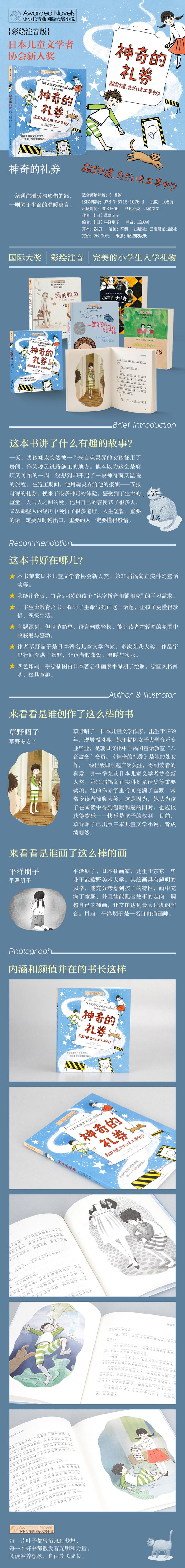 ★本书荣获日本儿童文学者协会新人奖、第32届福岛正实科幻童话奖等,文学性与故事性并重,是值得一读的经典儿童文学作品。 ★本书是彩绘注音版,符合5~8岁的孩子“识字拼音相辅相成”的学习需求。国际大奖小说保证了故事的经典性与可读性,能够让孩子在上学之初即与世界孩子站在同一起跑线上。 ★本书是一本生命教育之书,探讨了生命与死亡这一话题,让孩子更懂得珍惜,积极生活。 ★本书主题深刻,但情节简单,语言幽默轻松,能让读者在轻松的氛围中收获爱与感动。 ★作者草野晶子是日本著名儿童文学作家,多次荣获大奖,作品字里行间充满了幽默,让读者在阅读中得到爱与温暖的同时,也收获欢乐。 ★全书采用四色印刷,手绘插图由日本著名插画家平泽朋子绘制,绘画风格鲜明,极具童趣,与令人捧腹大笑的故事情节相得益彰。