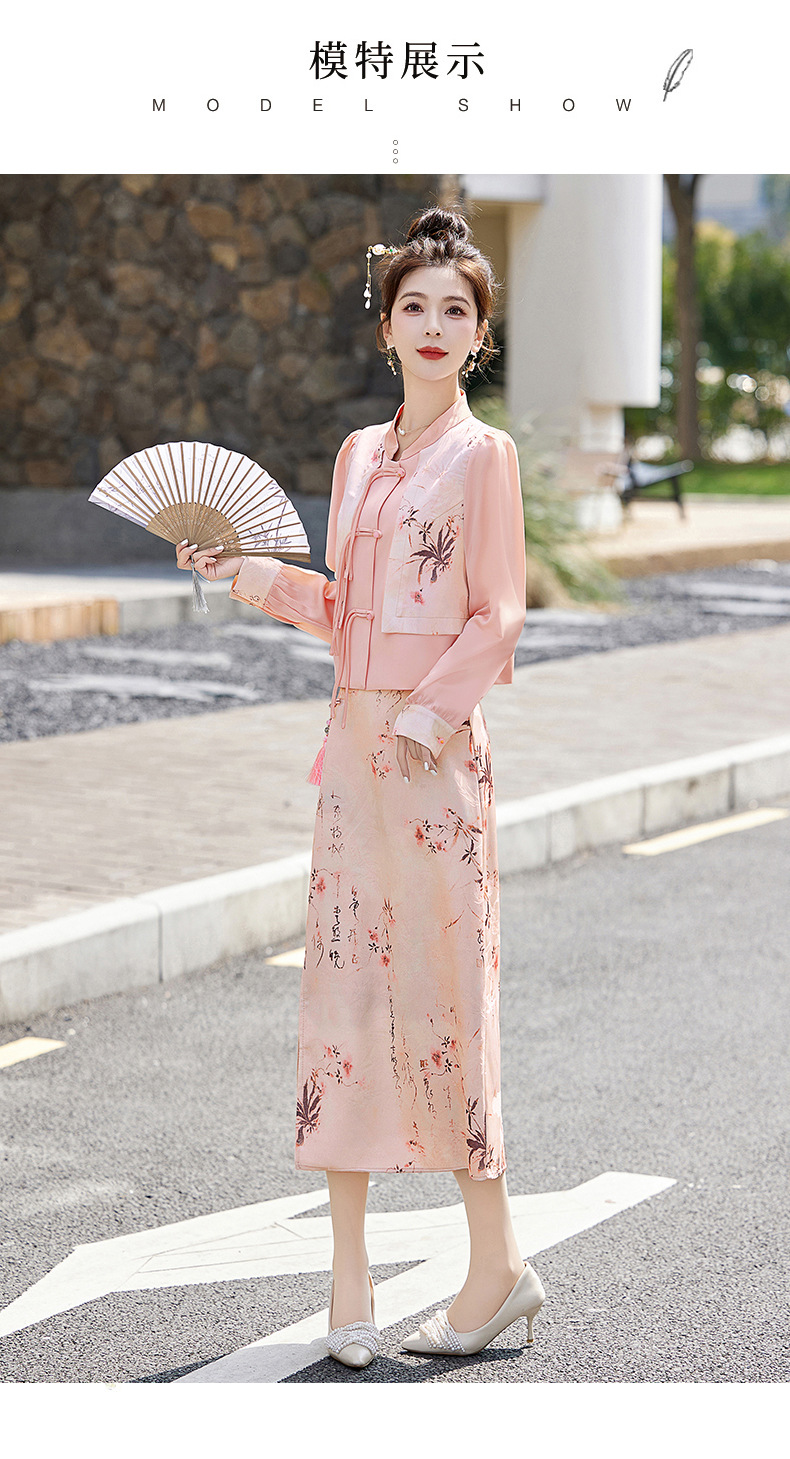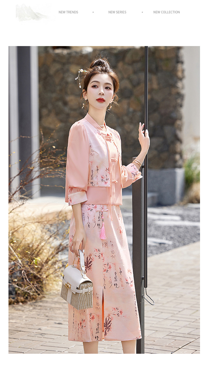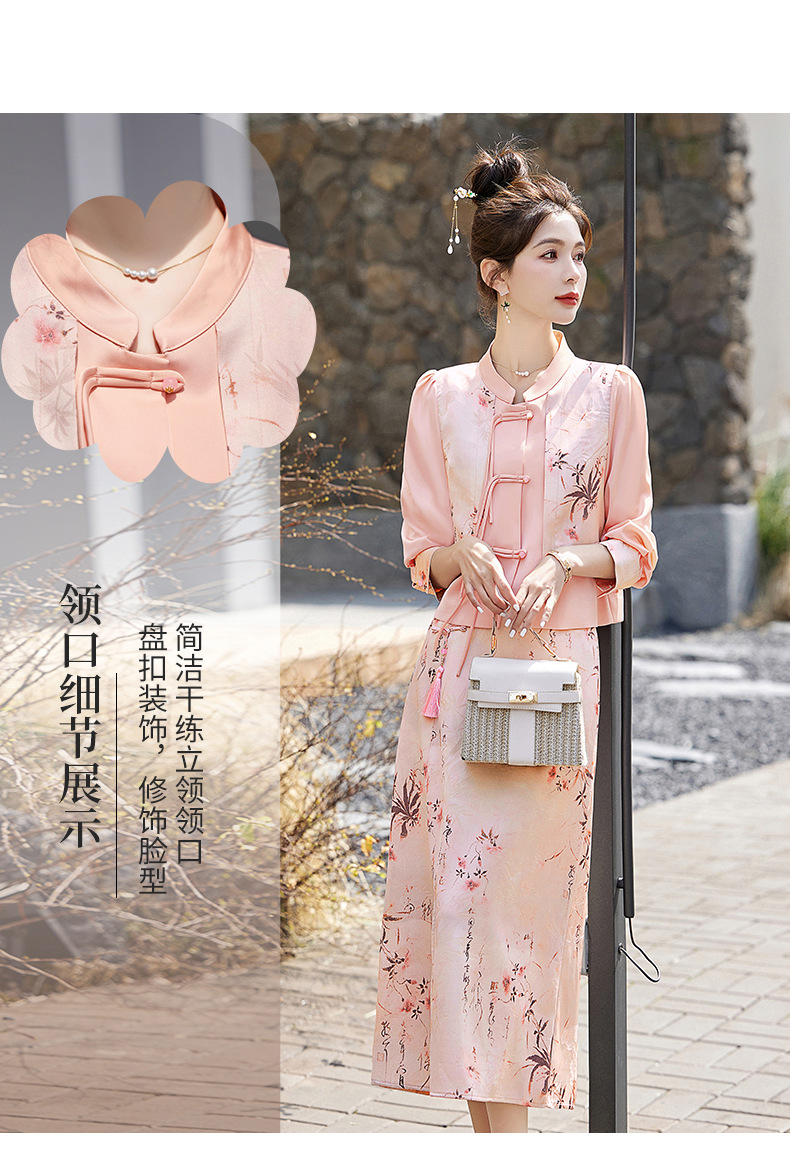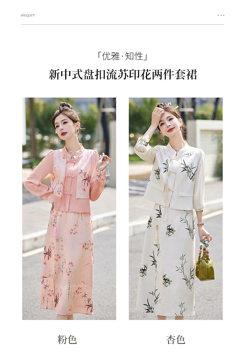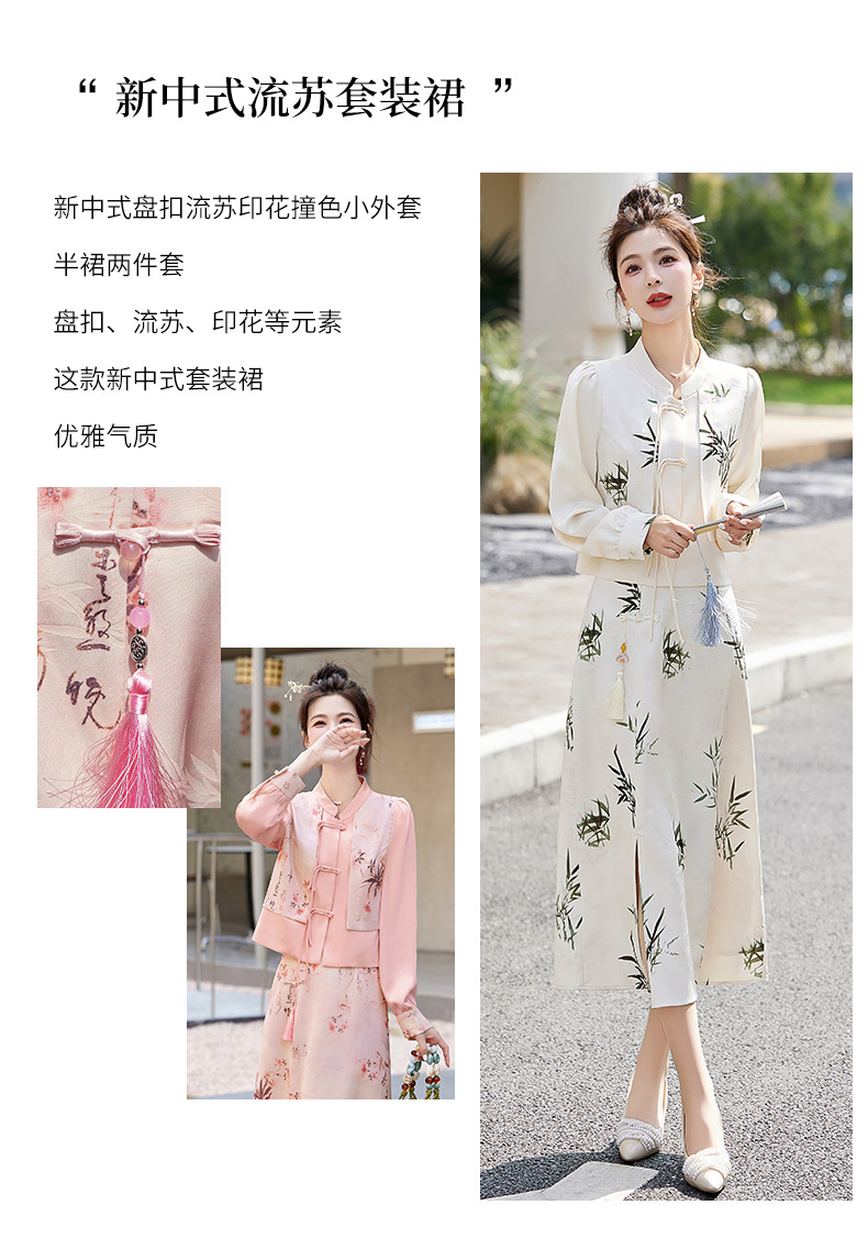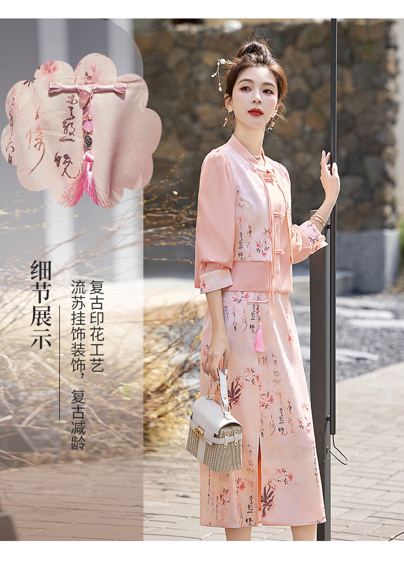 新中式国风套装裙,轻奢气质改良旗袍印花盘扣两件套HR-YWY8931