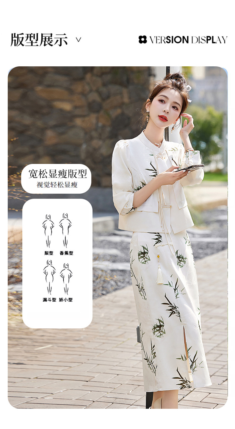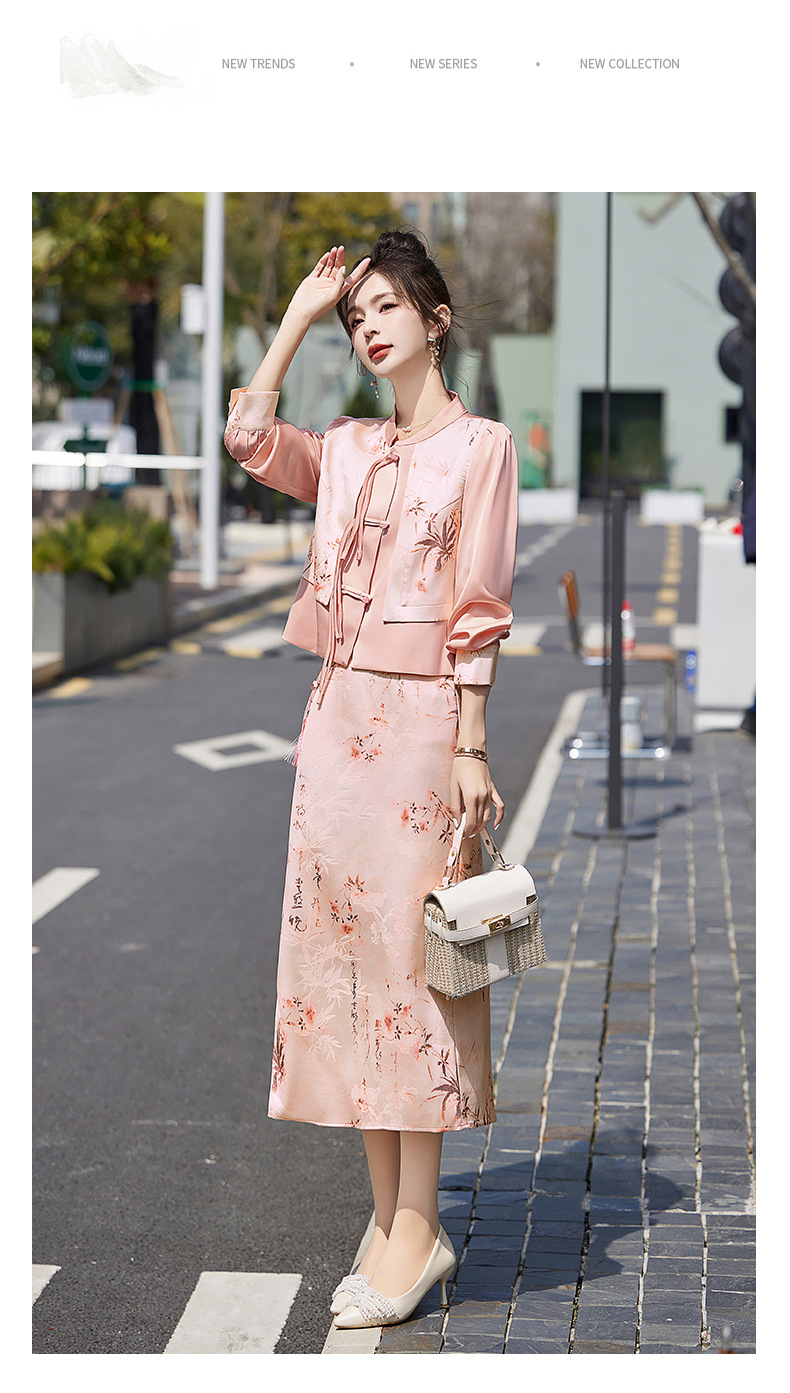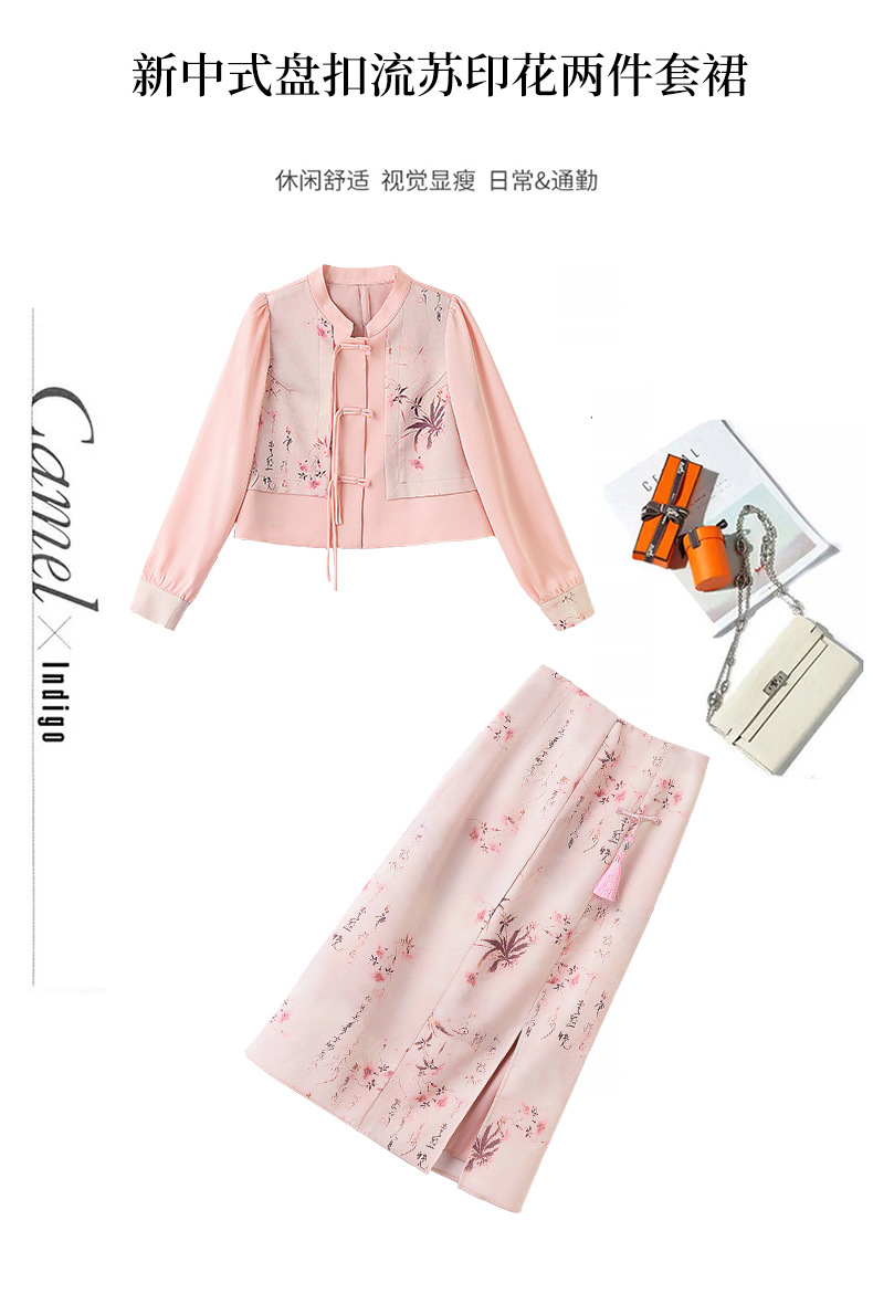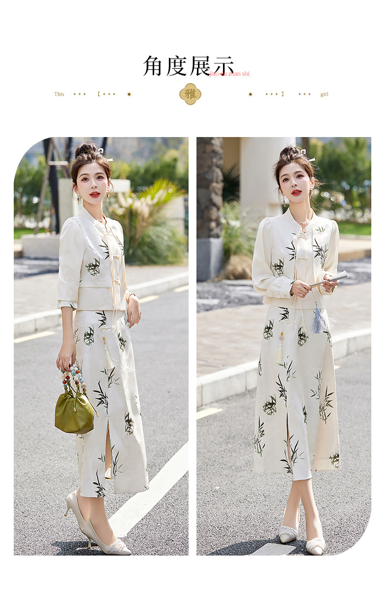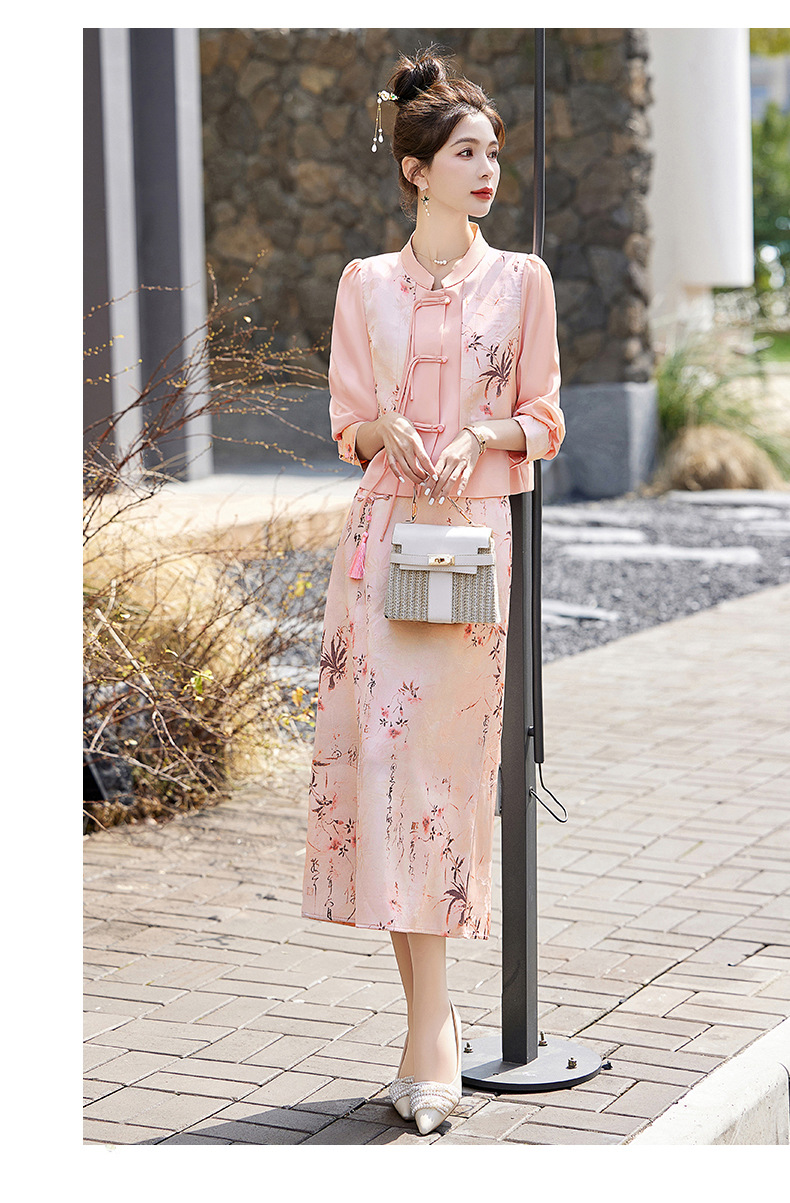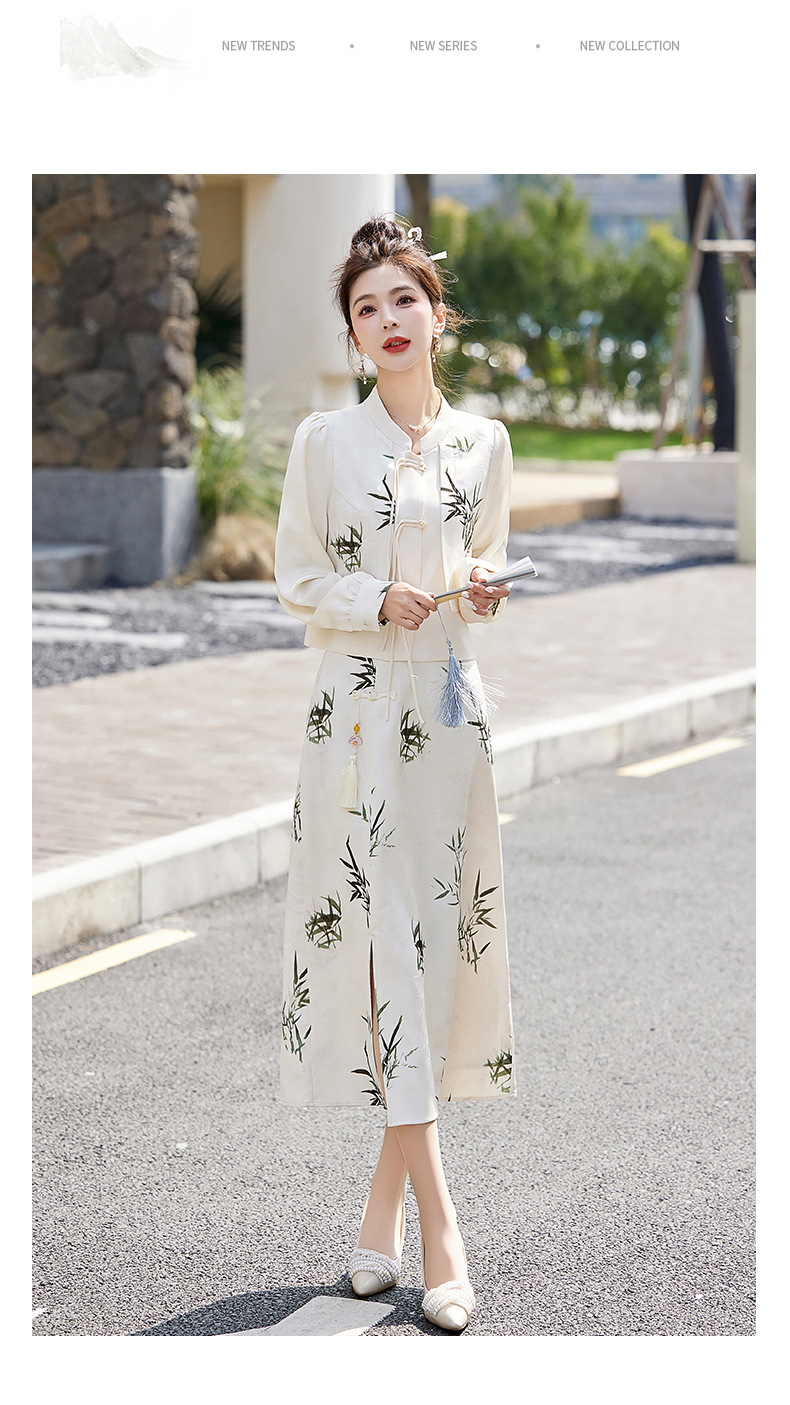 新中式国风套装裙,轻奢气质改良旗袍印花盘扣两件套HR-YWY8931