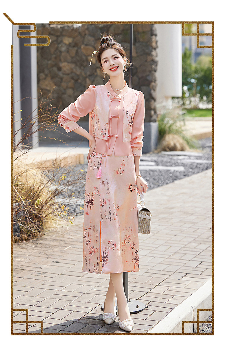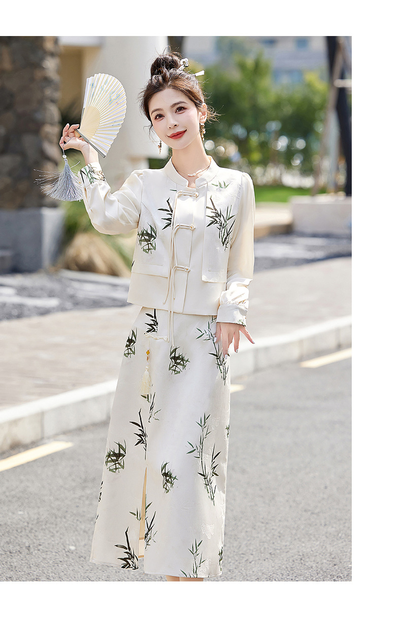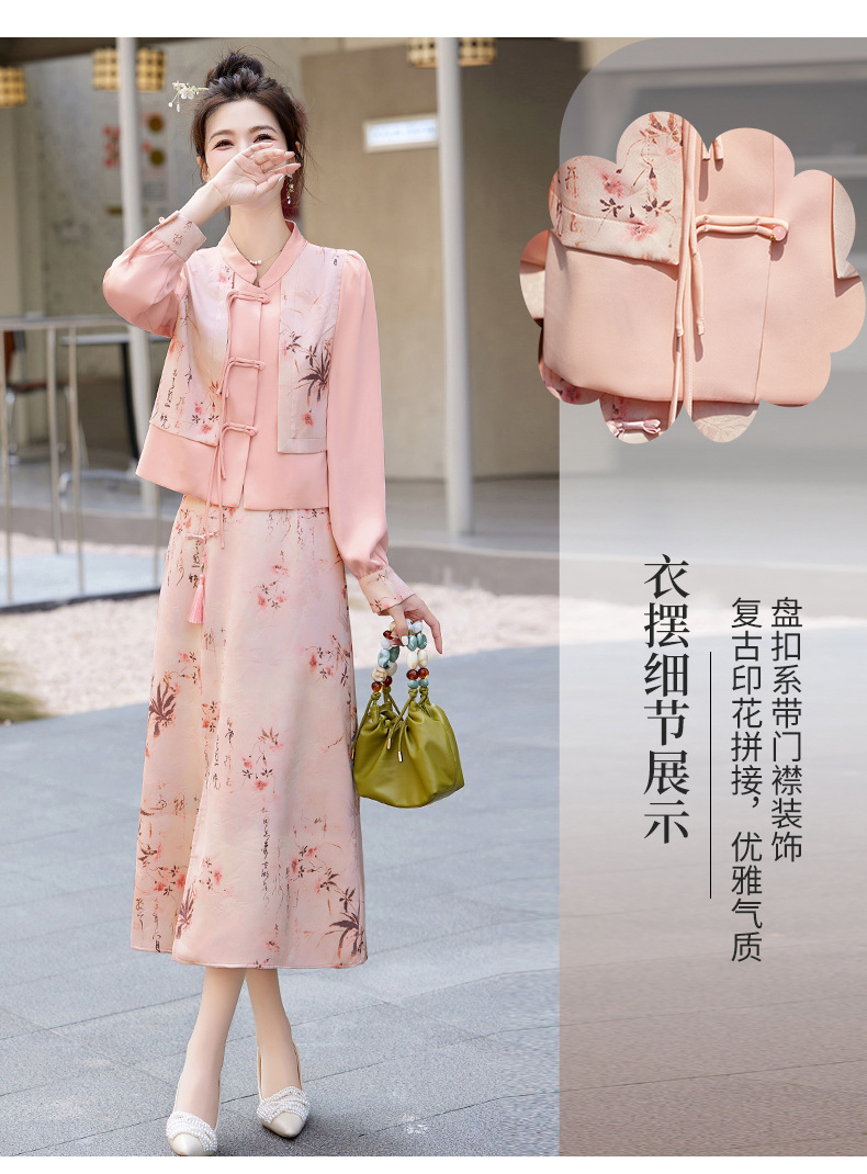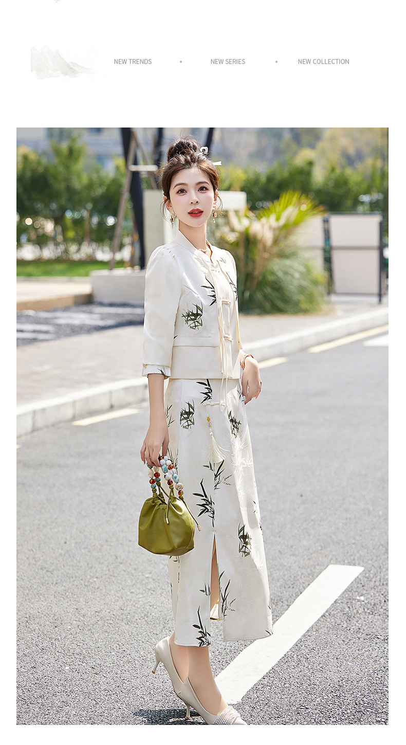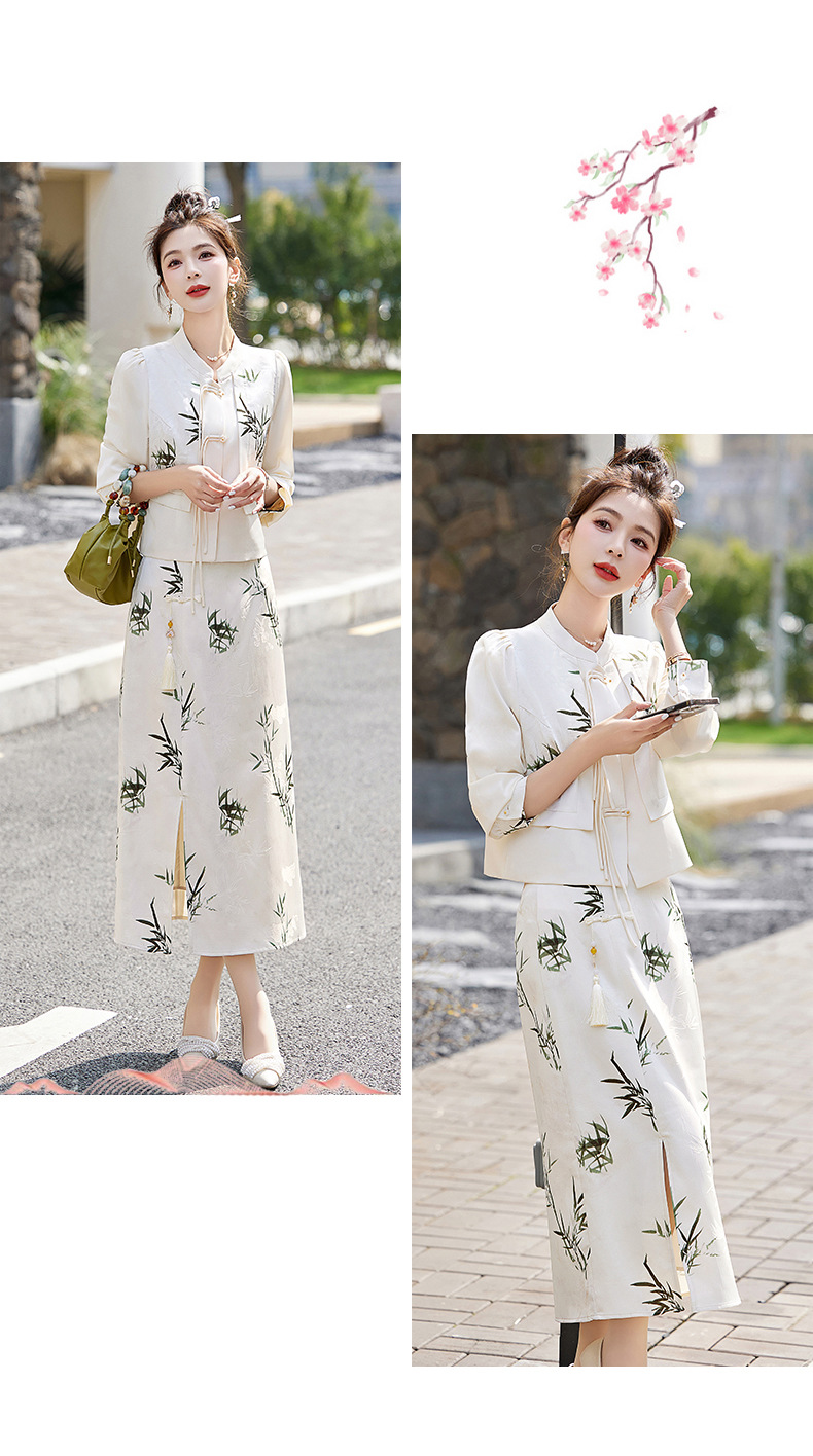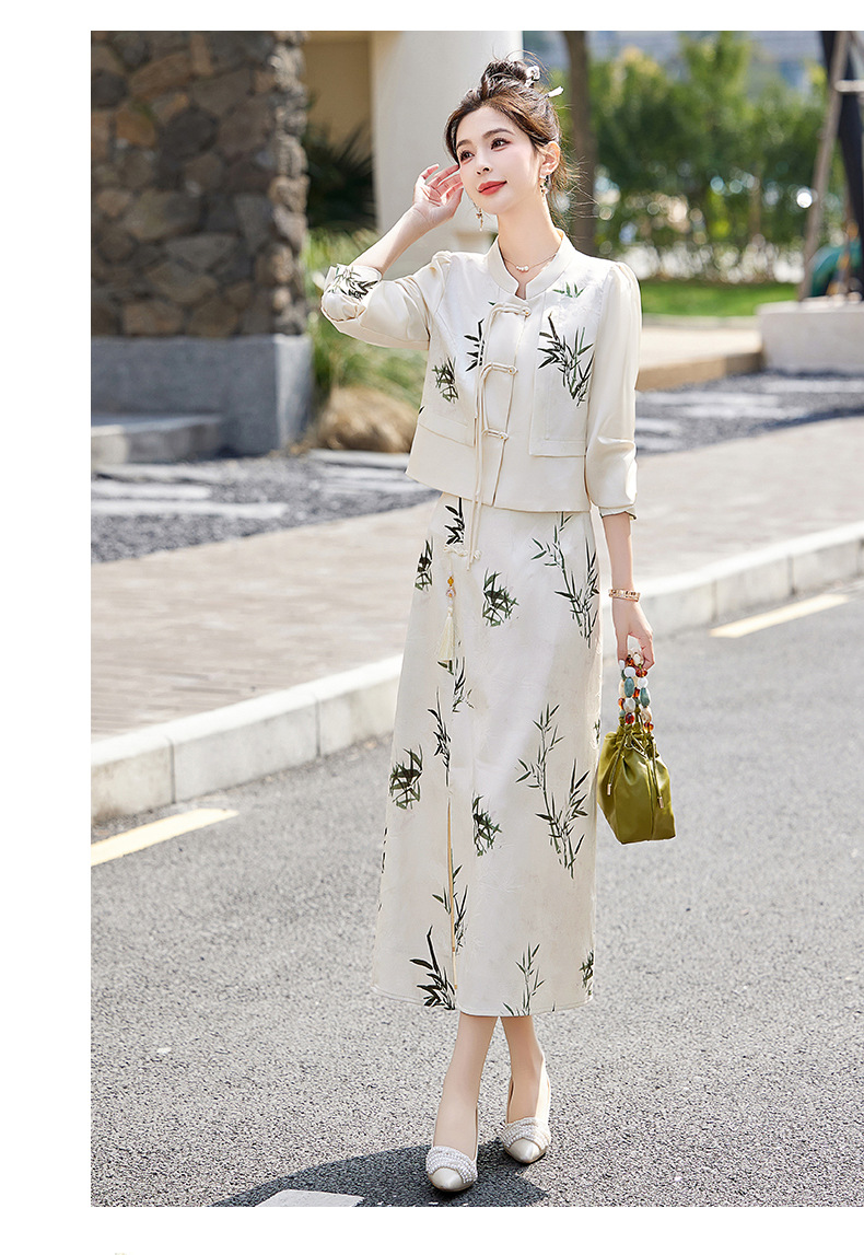 新中式国风套装裙,轻奢气质改良旗袍印花盘扣两件套HR-YWY8931