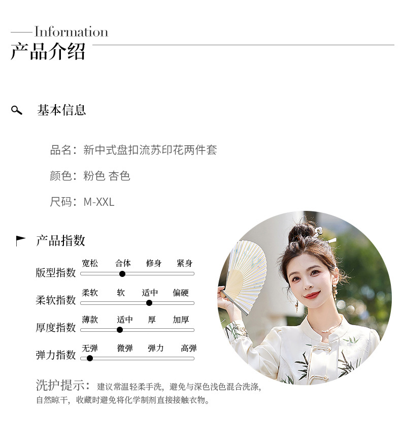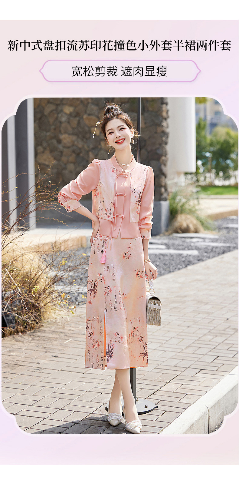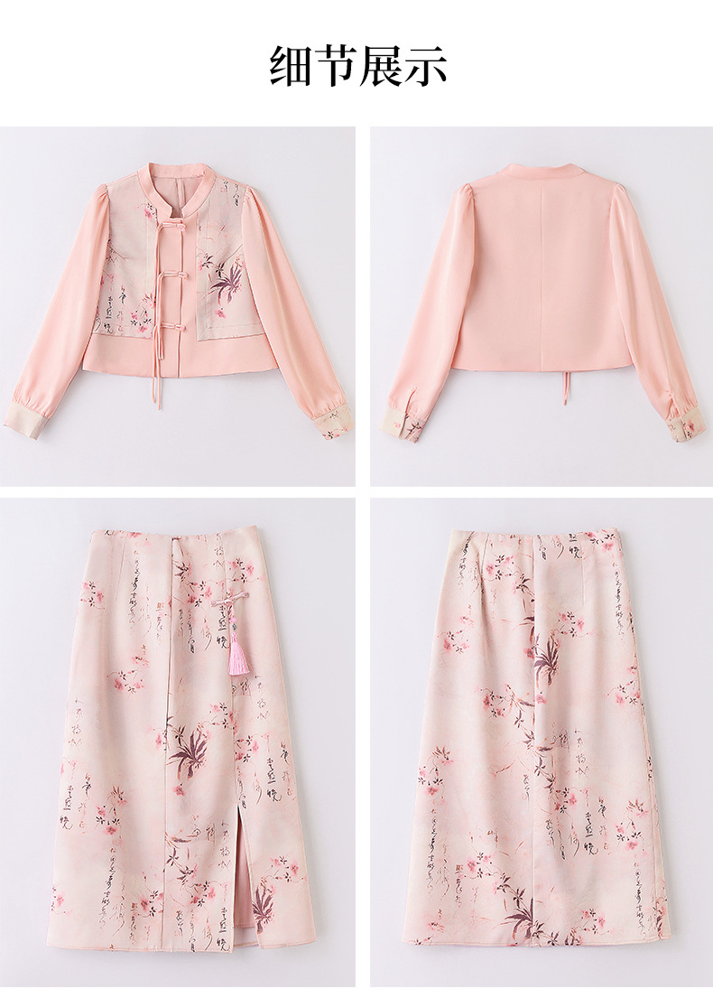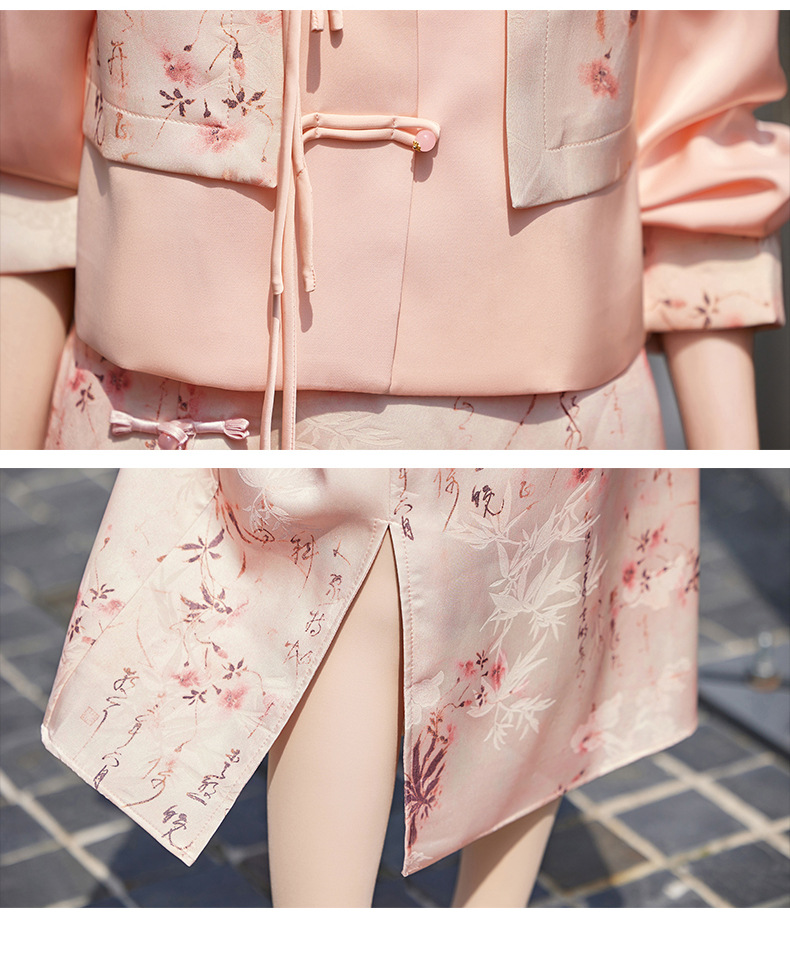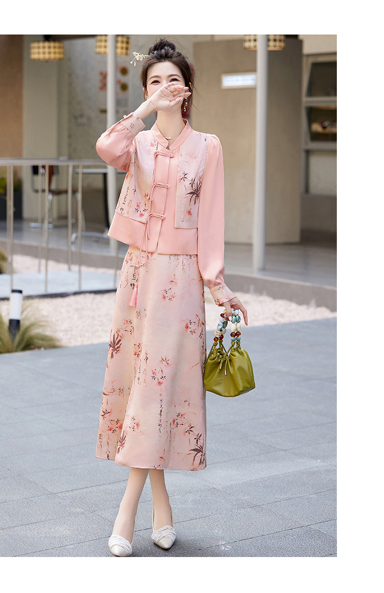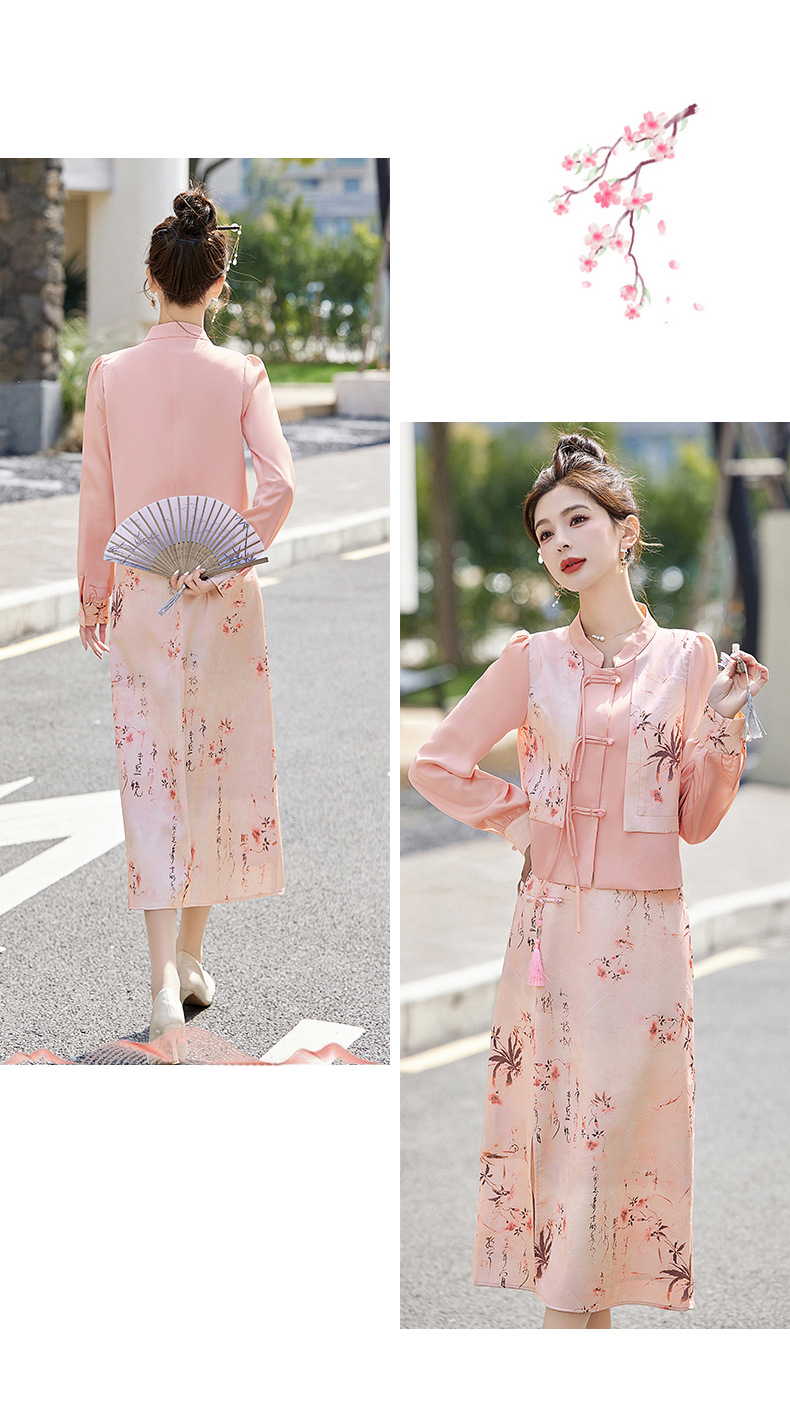 新中式国风套装裙,轻奢气质改良旗袍印花盘扣两件套HR-YWY8931