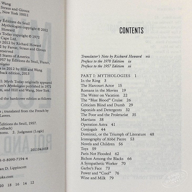 《罗兰·巴特:神话修辞术》(第二版)为完整版,采用新的译本,译者是Richard Howard和Annette Lavers。