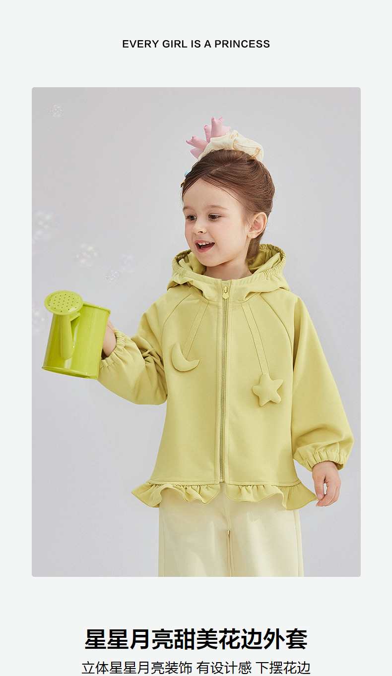 笛莎Deesha 童装女童外套2025冬新款女童星星月亮甜美花边外套