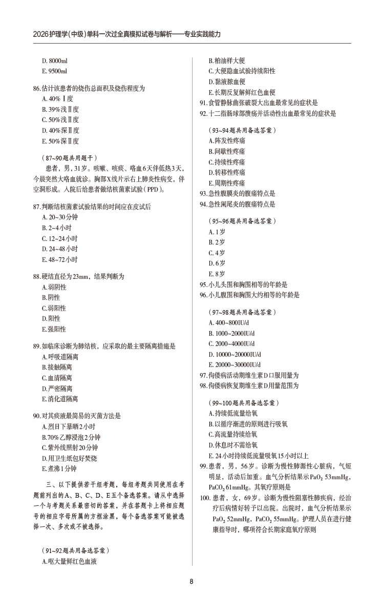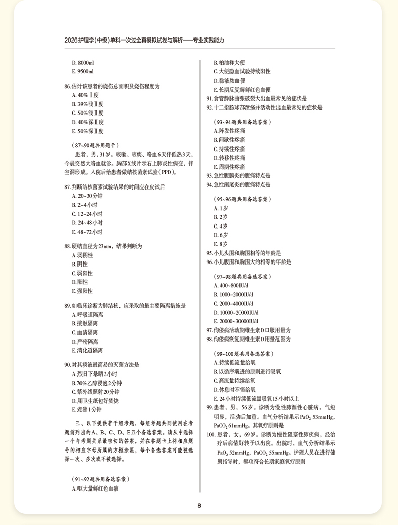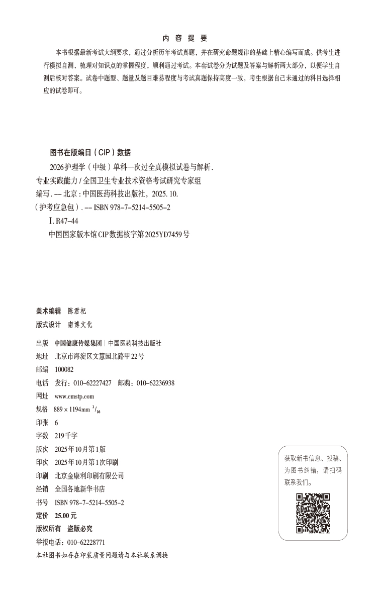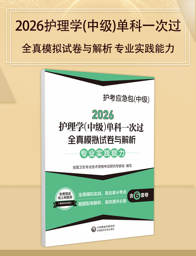 2026护理学(中级)单科一次过全真模拟试卷与解析 专业实践能力 护考应急包(中级)全国卫生专业技术资格考试 中国医药科技出版社