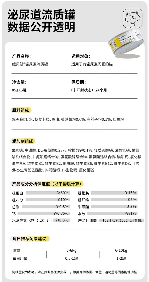 纽贝健全价处方罐头 猫用 胃肠道流质罐头 泌尿道流质罐头 85g/罐