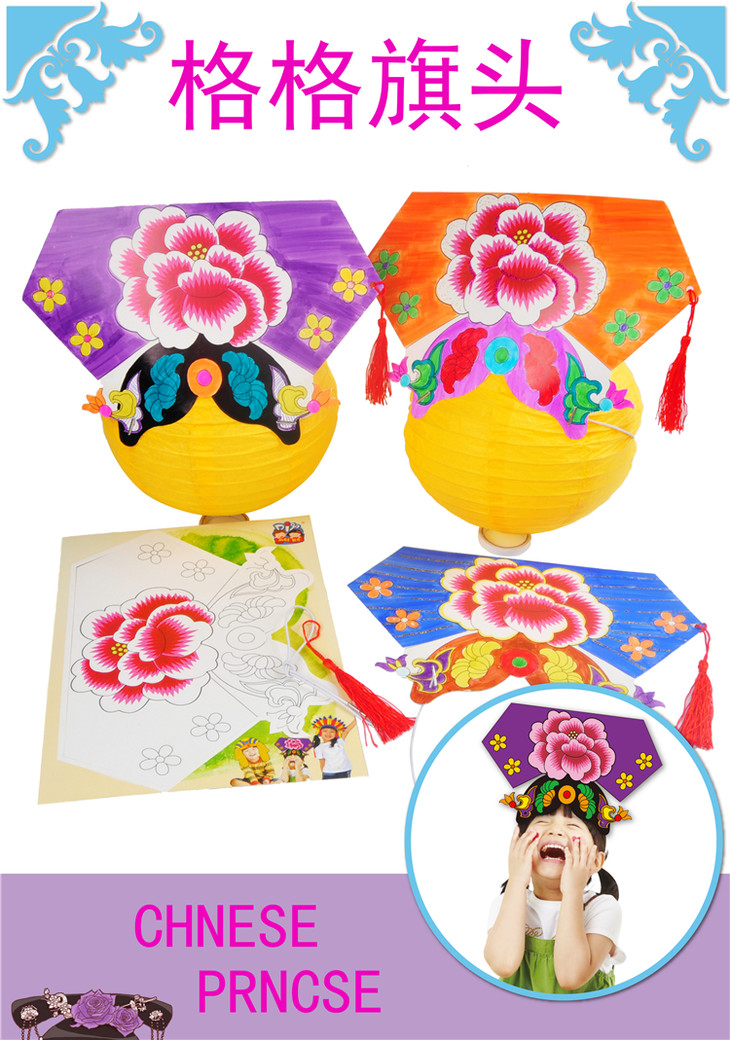 幼儿园课堂手工DIY格格旗头纸板头饰材料包