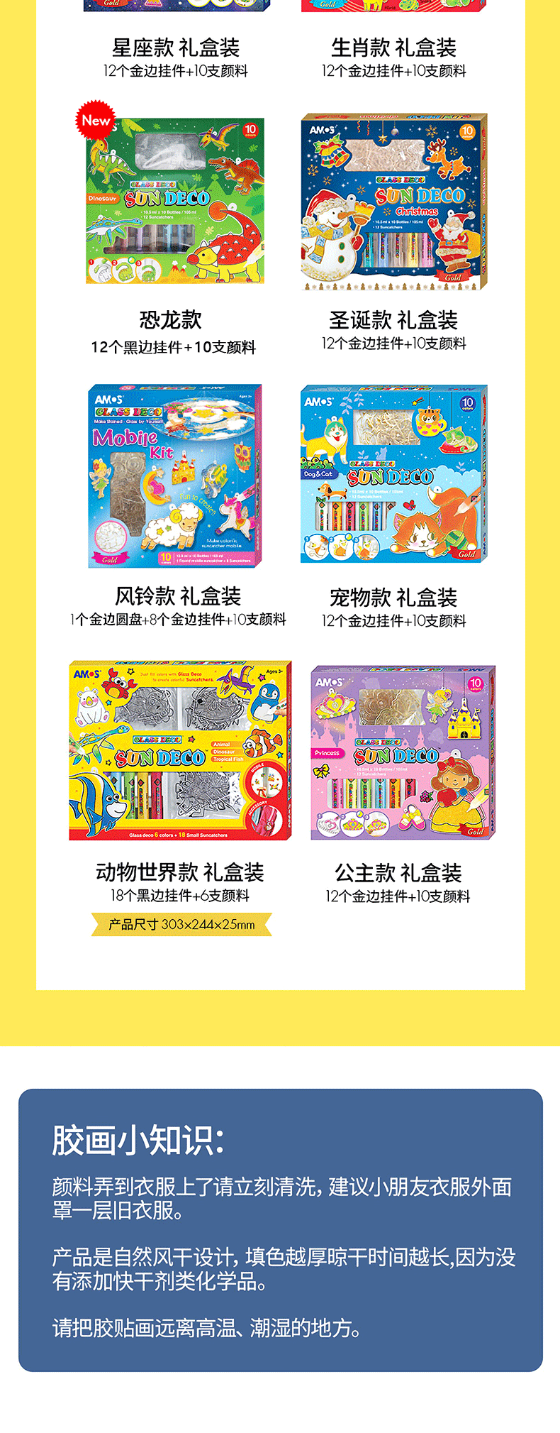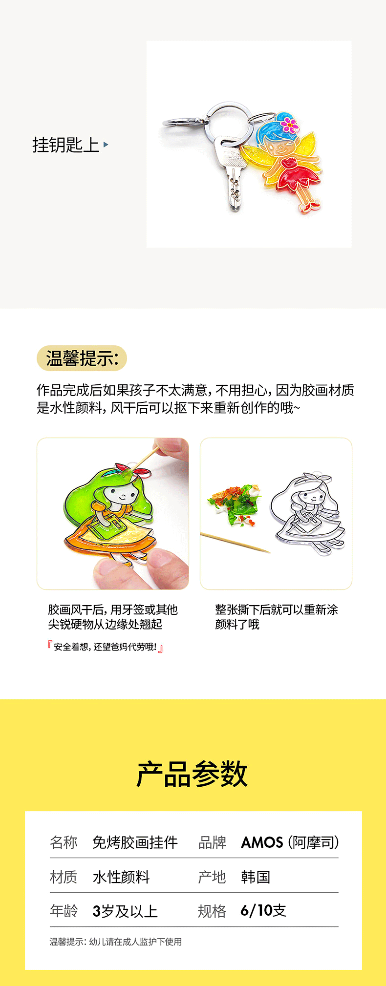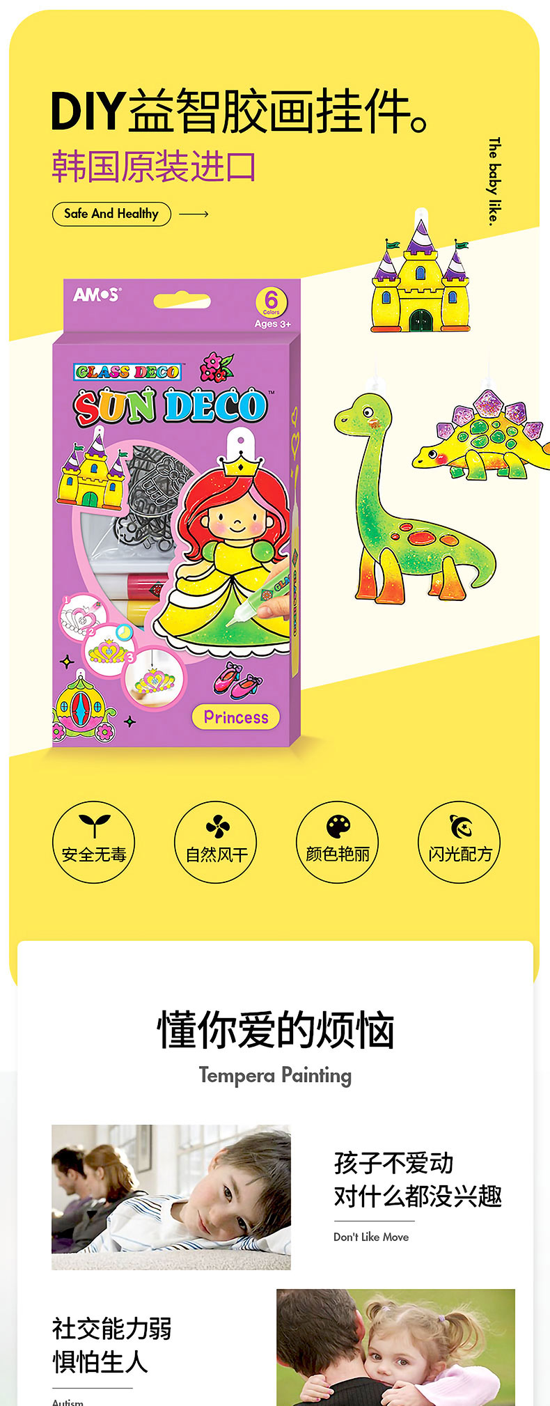 韩国进口 AMOS 儿童免烤玻璃胶画颜料 DIY 胶画套装