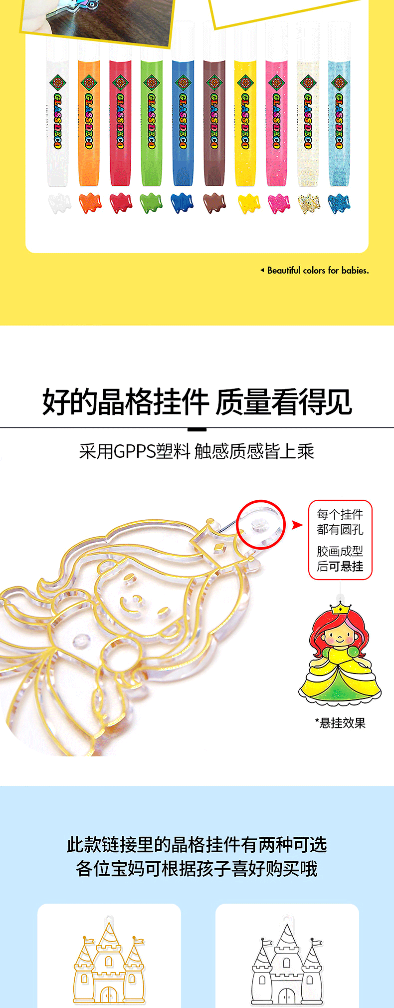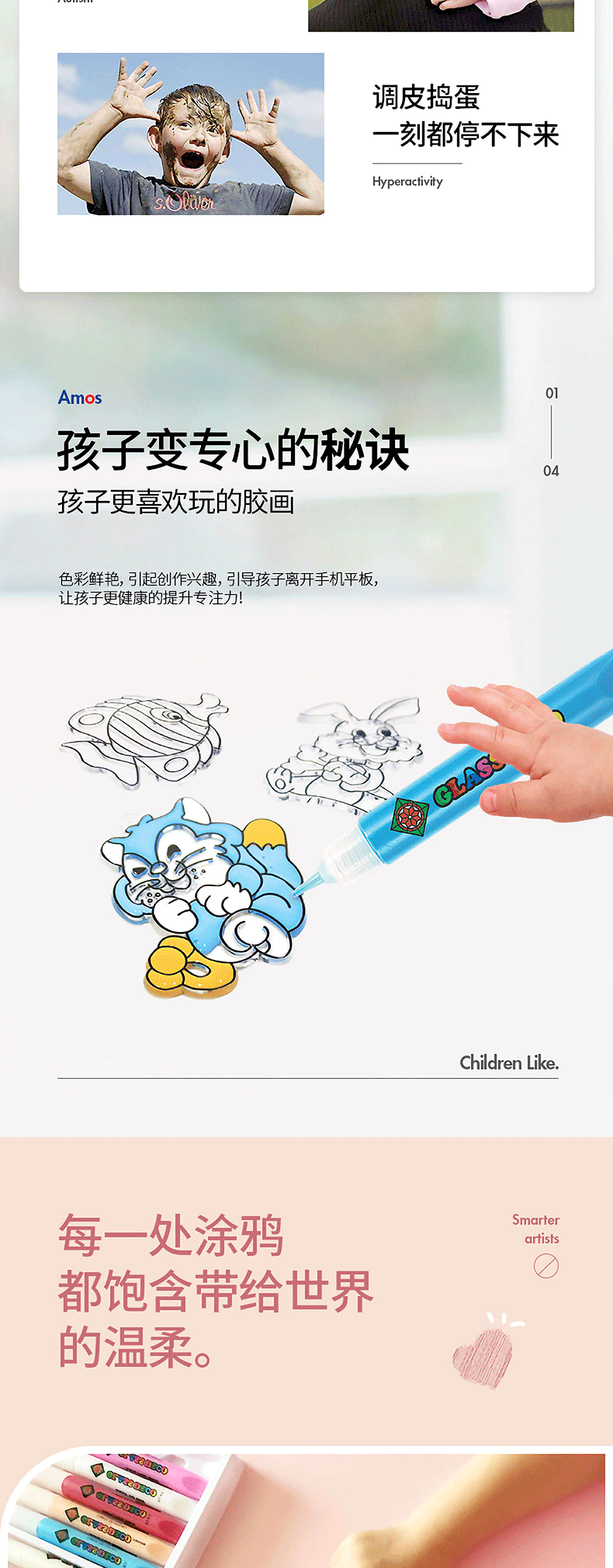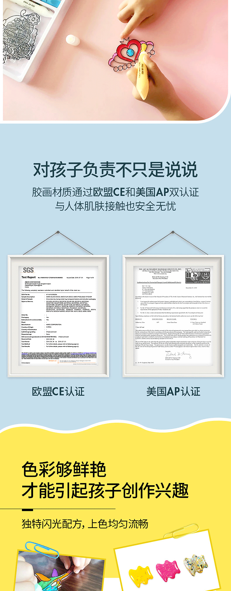 韩国进口 AMOS 儿童免烤玻璃胶画颜料 DIY 胶画套装