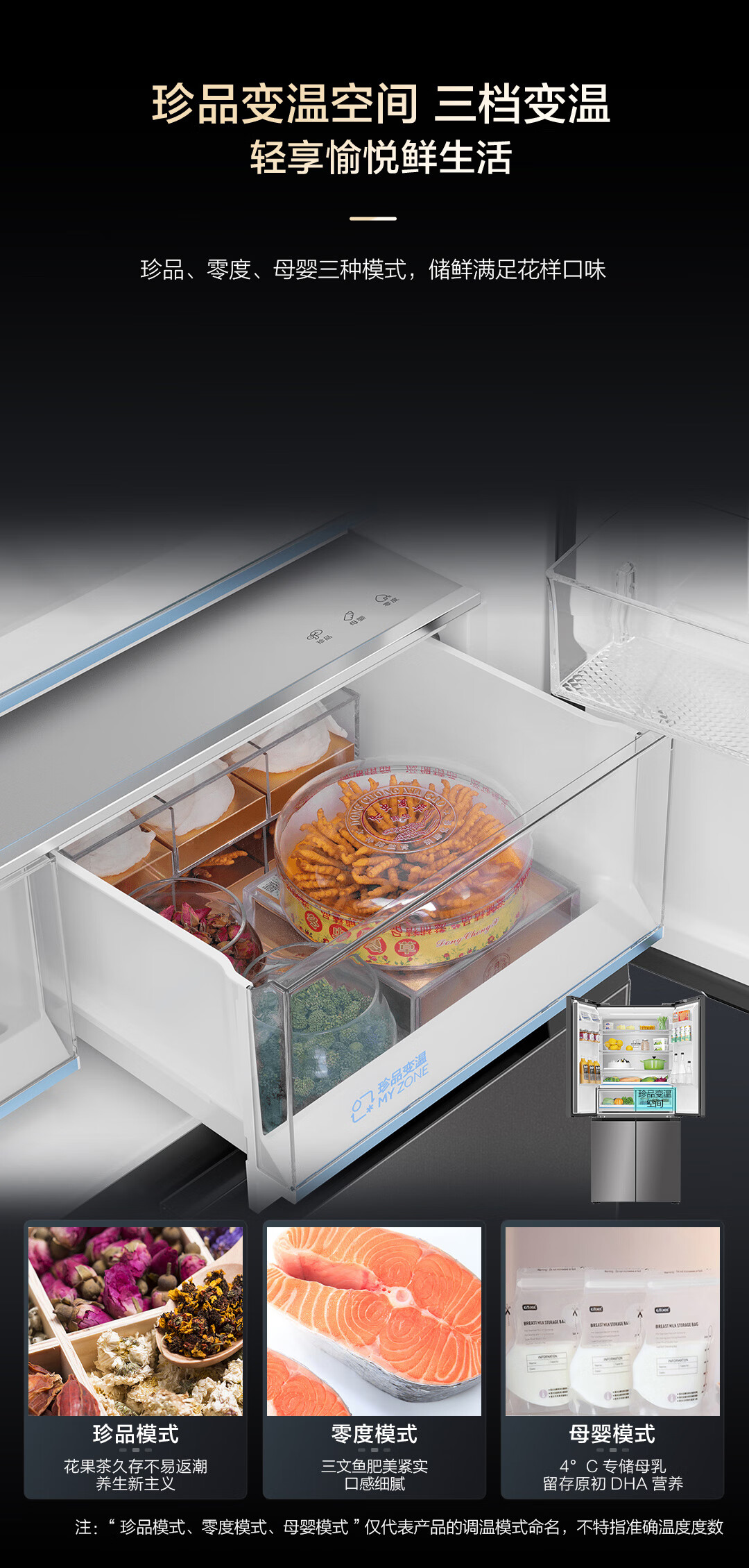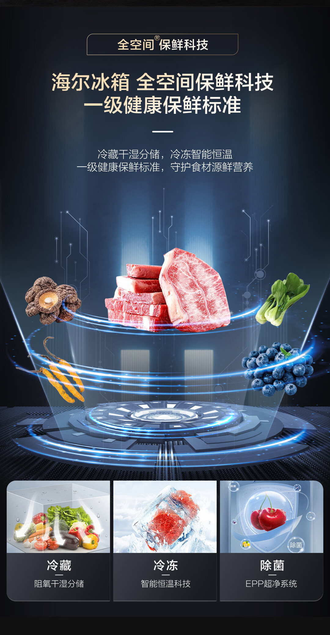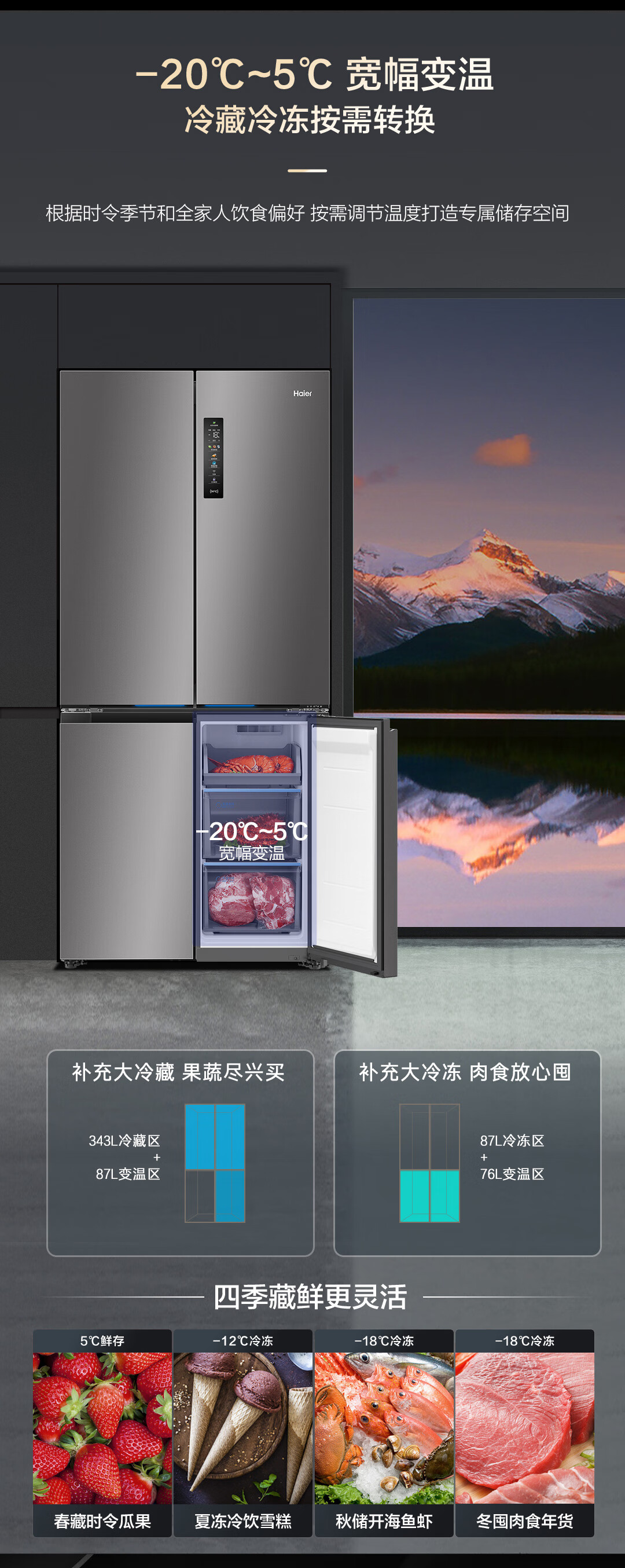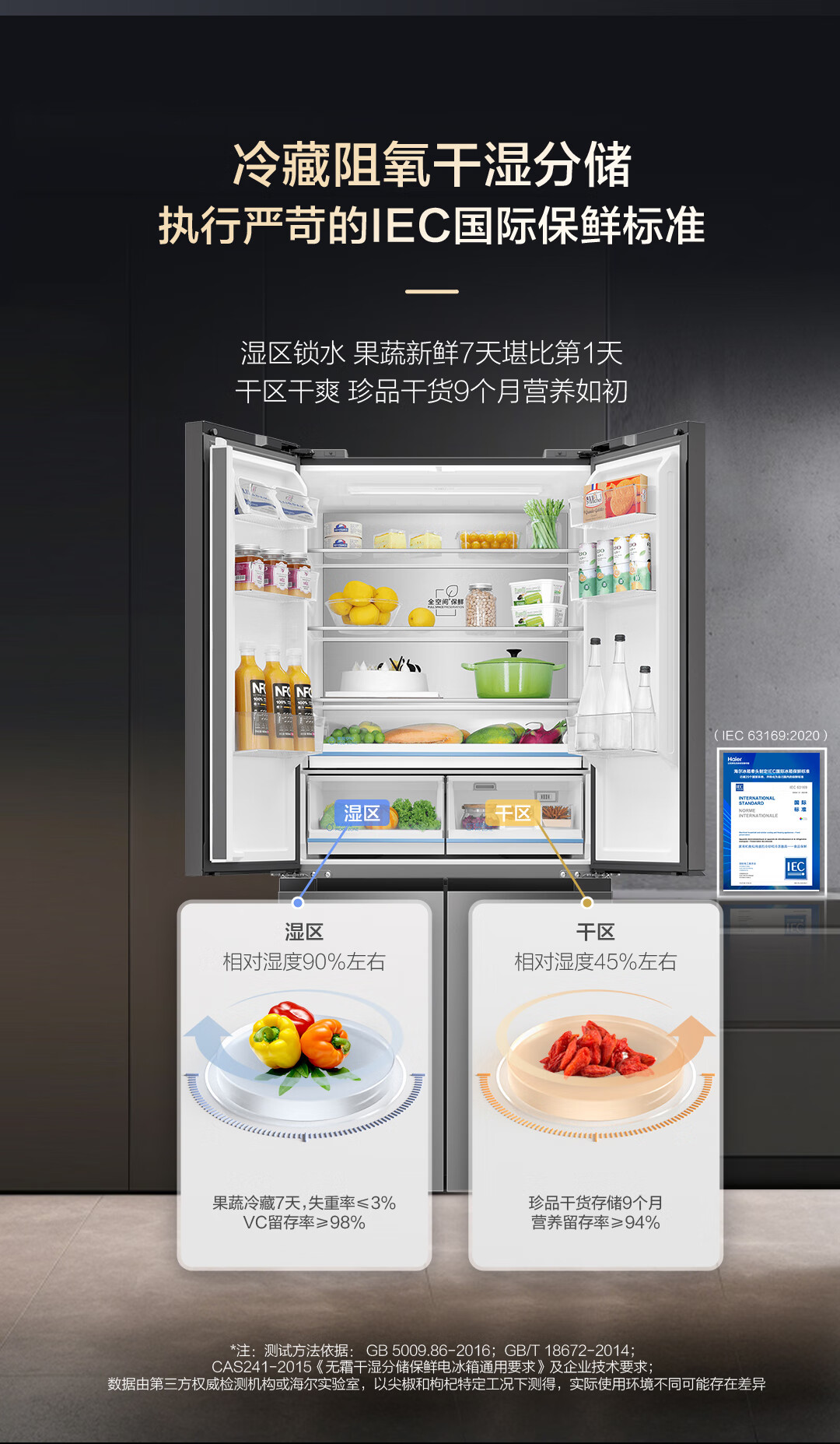 海尔(Haier)506升全空间保鲜零距离自由嵌入式十字四门电冰箱家用风冷一级能效BCD-506WGHTD14GYU1灰