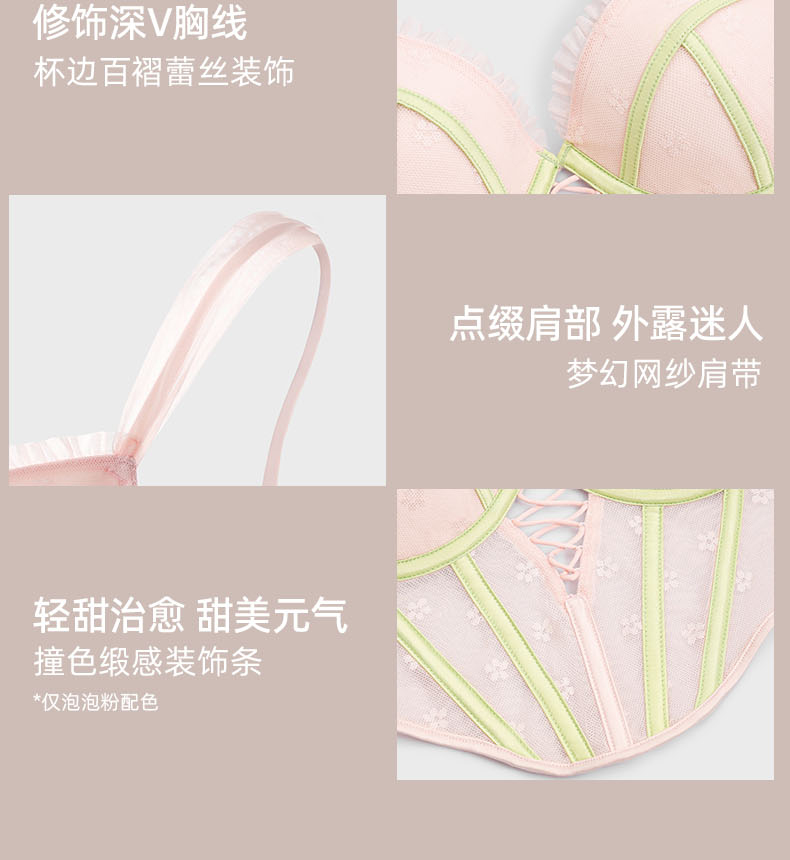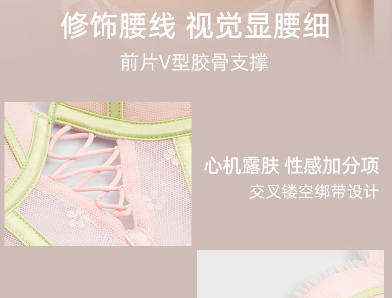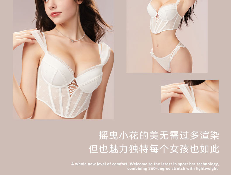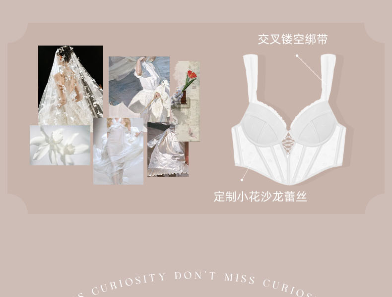 好奇蜜斯法式外穿鱼骨胸衣薄显胸小内衣性感女束身蕾丝文胸罩套装新款-玛可欣