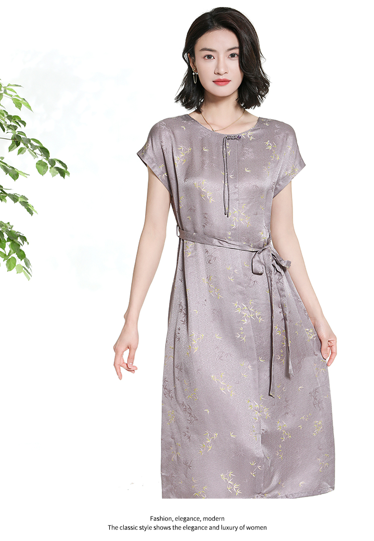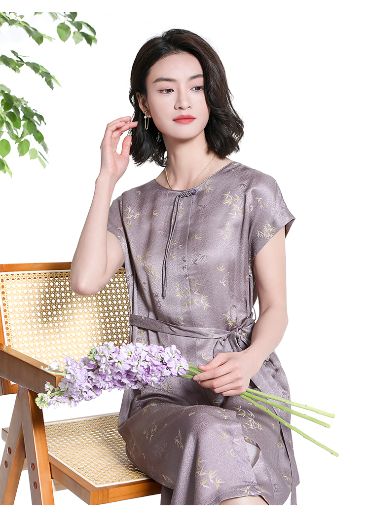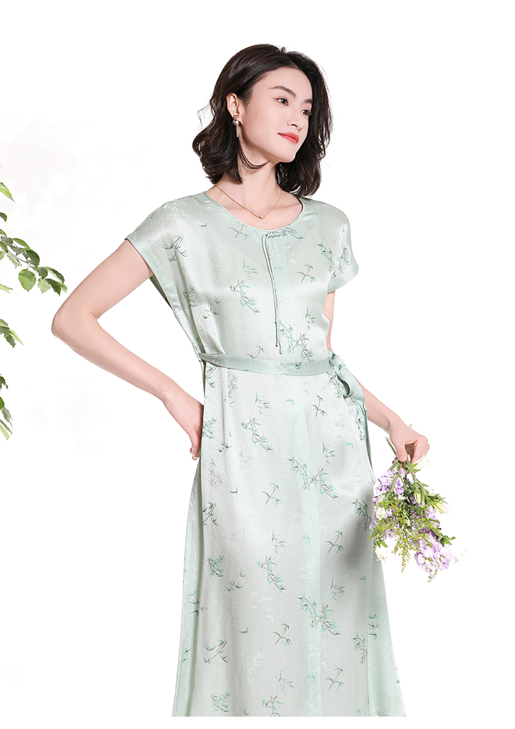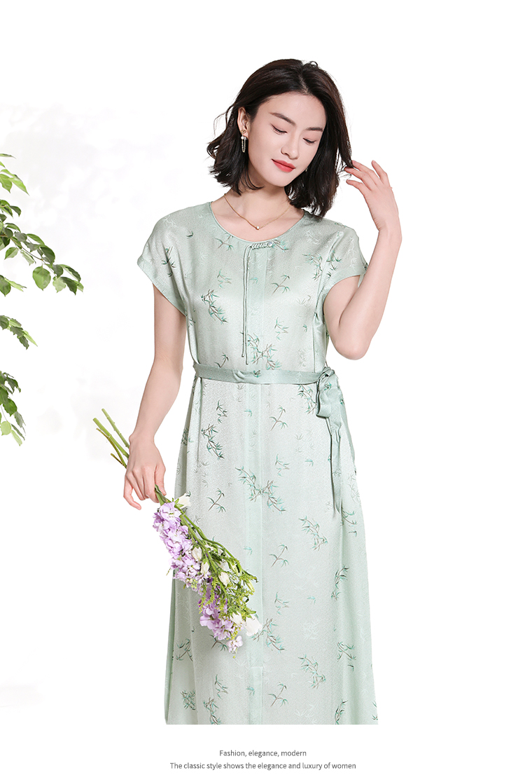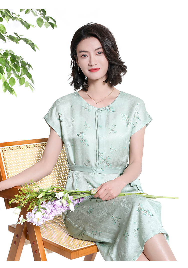 佐尔美夏季新款新中式国风桑蚕丝短袖连衣裙女M42LS100