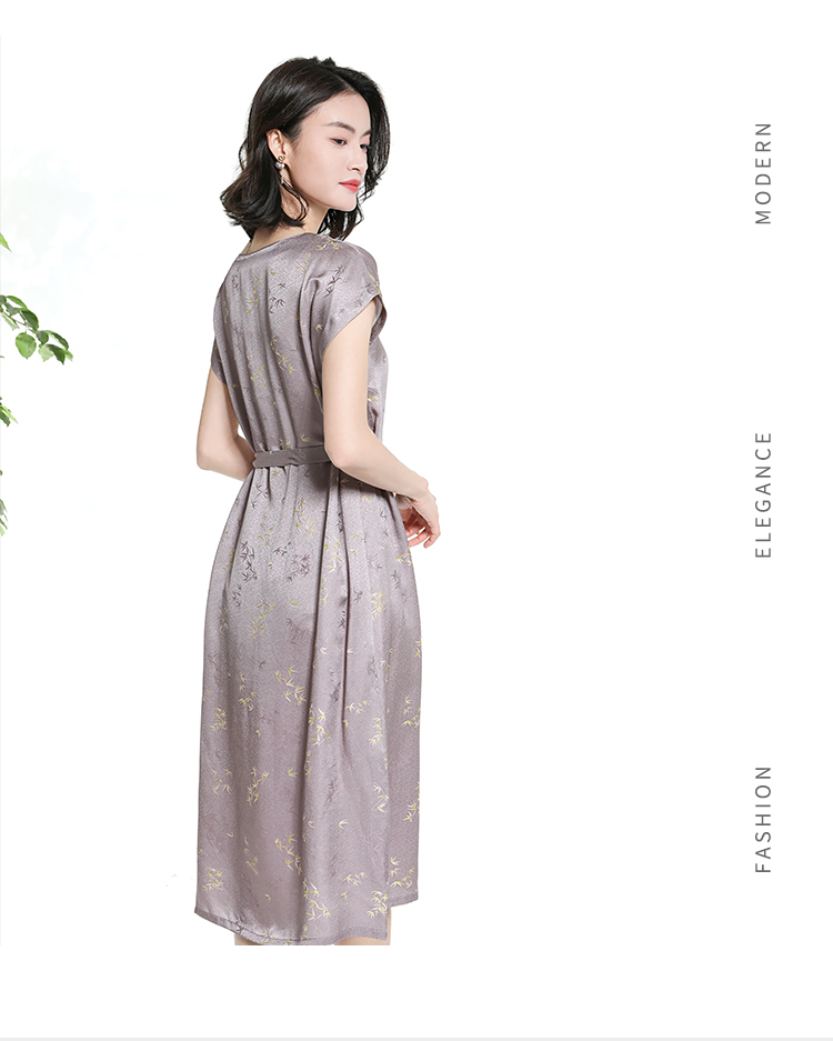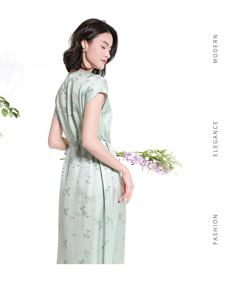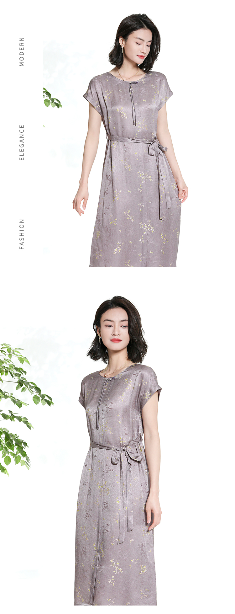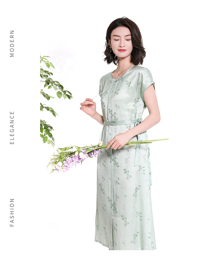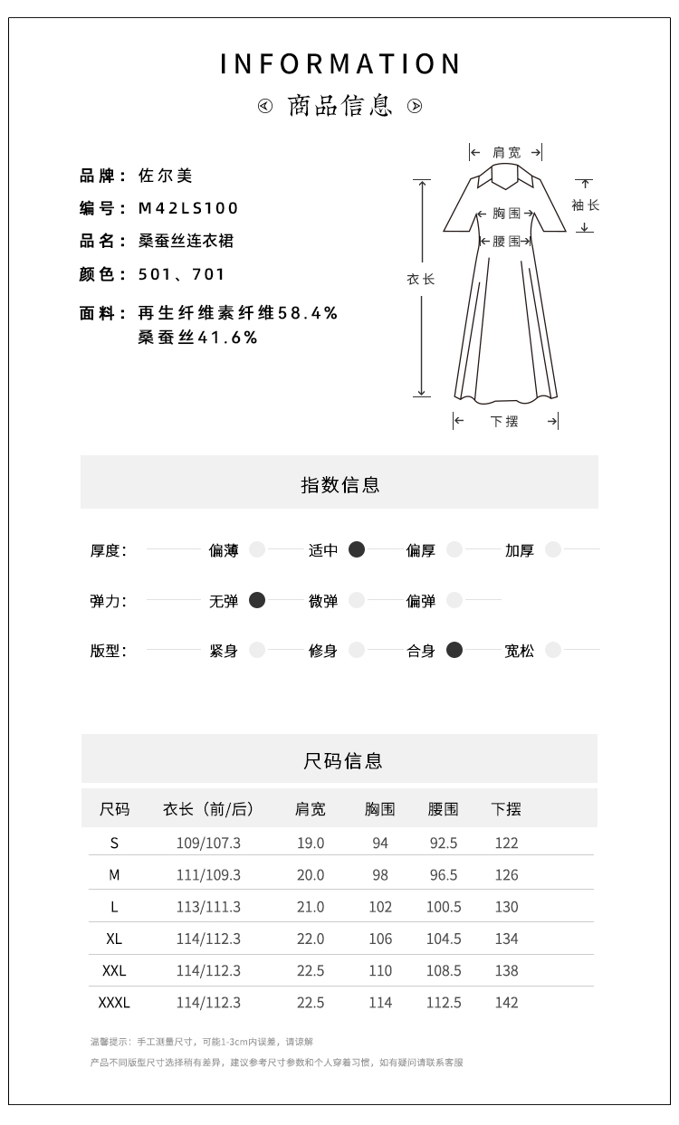 佐尔美夏季新款新中式国风桑蚕丝短袖连衣裙女M42LS100