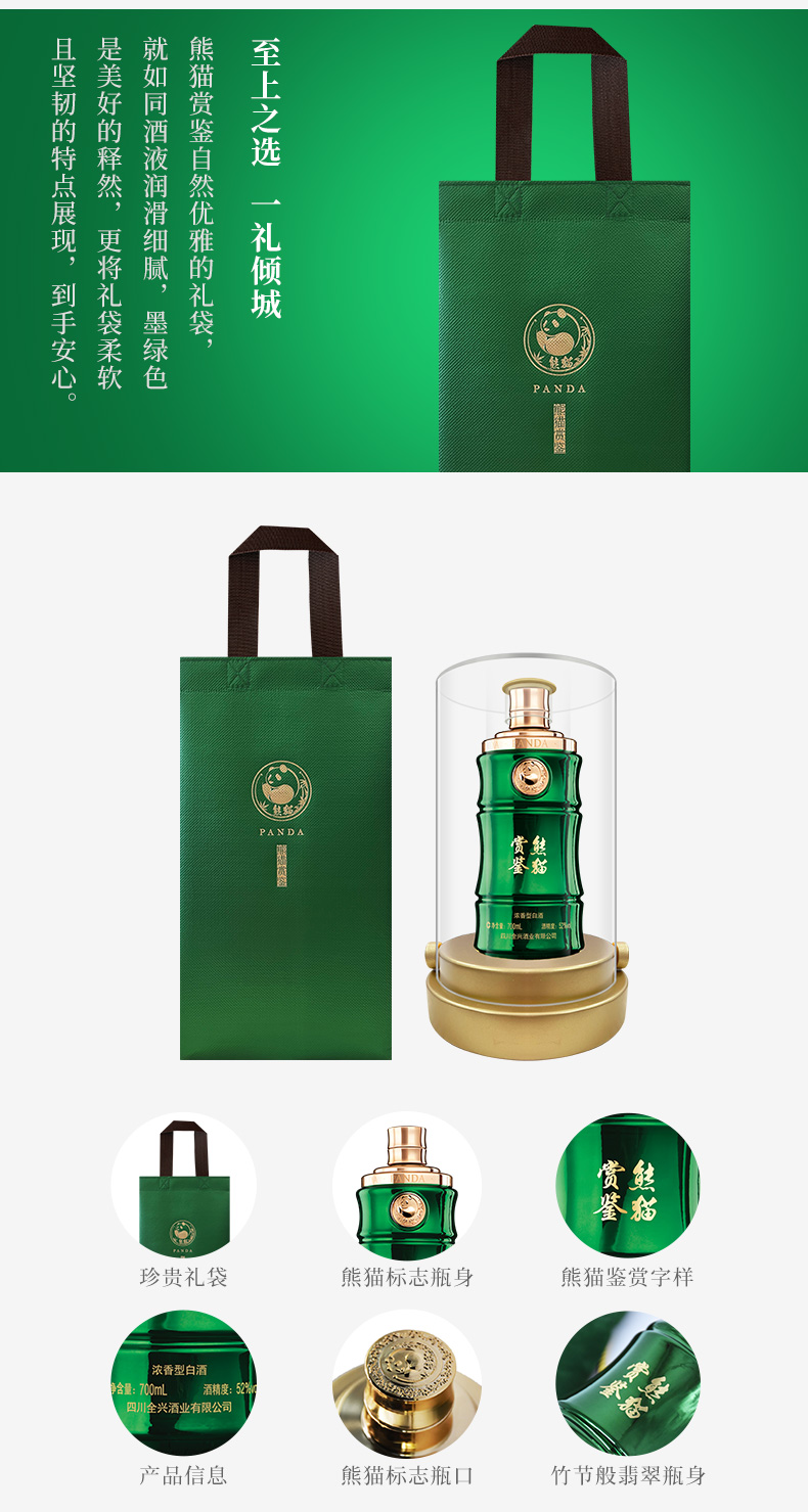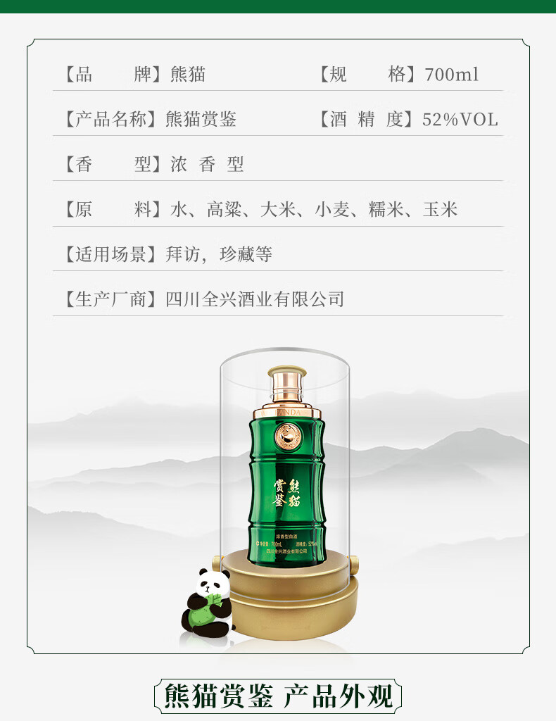 全兴【老八大名酒】熊猫赏鉴 52度浓香型高度白酒纯粮食酿造700ml 单瓶装