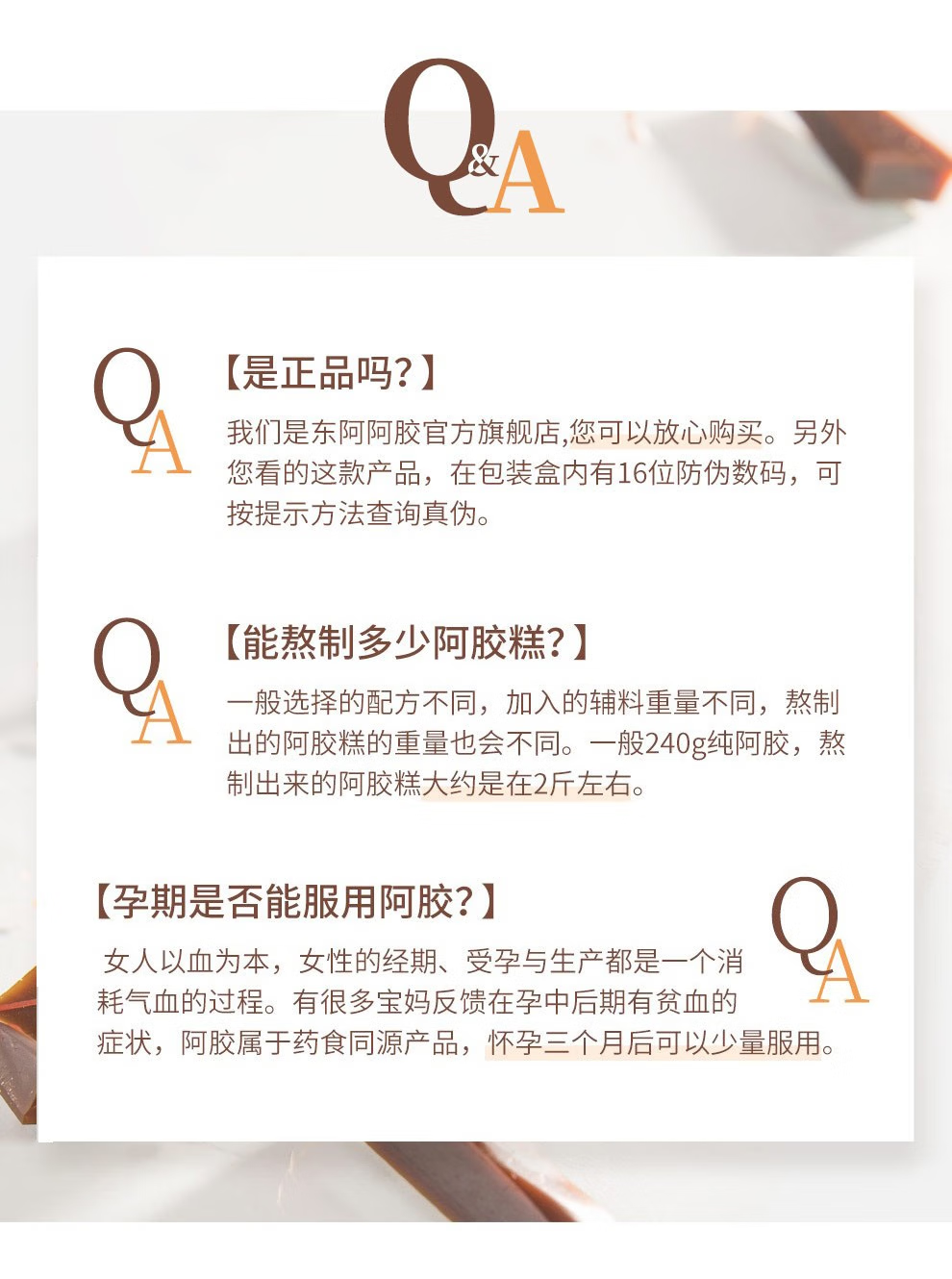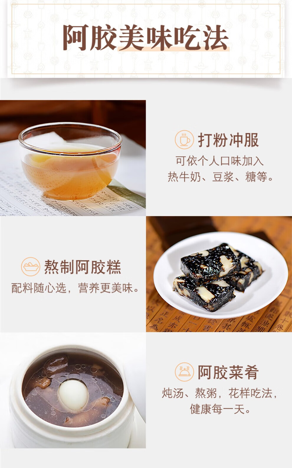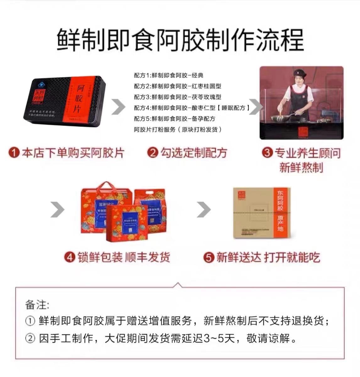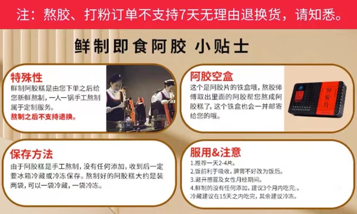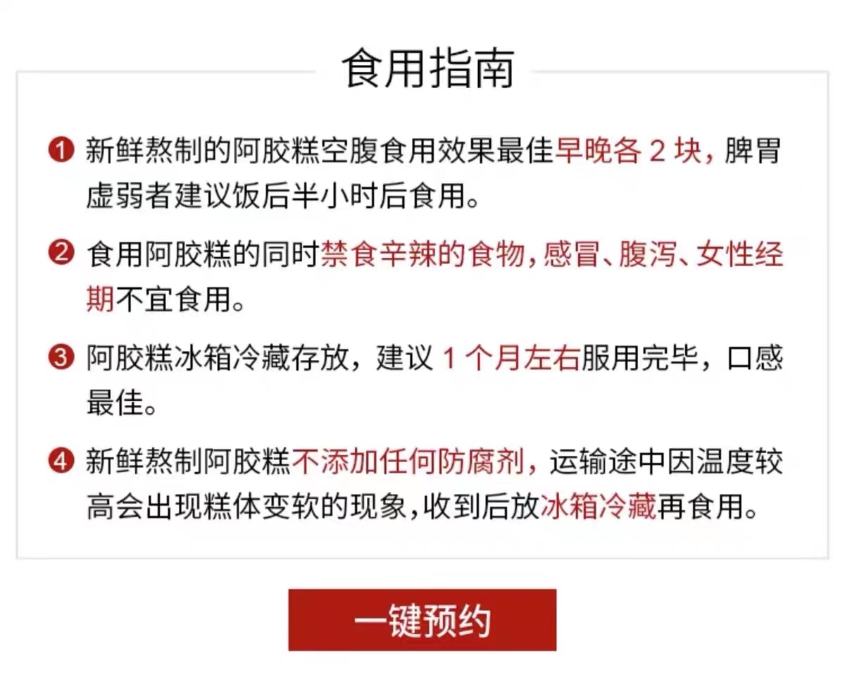 * 注:熬好的鲜制阿胶放冰箱储存最长放置3个月,最佳服用时限45天。