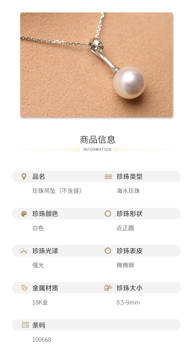 金18K海水珍珠吊坠 8.5-9mm 白 100668