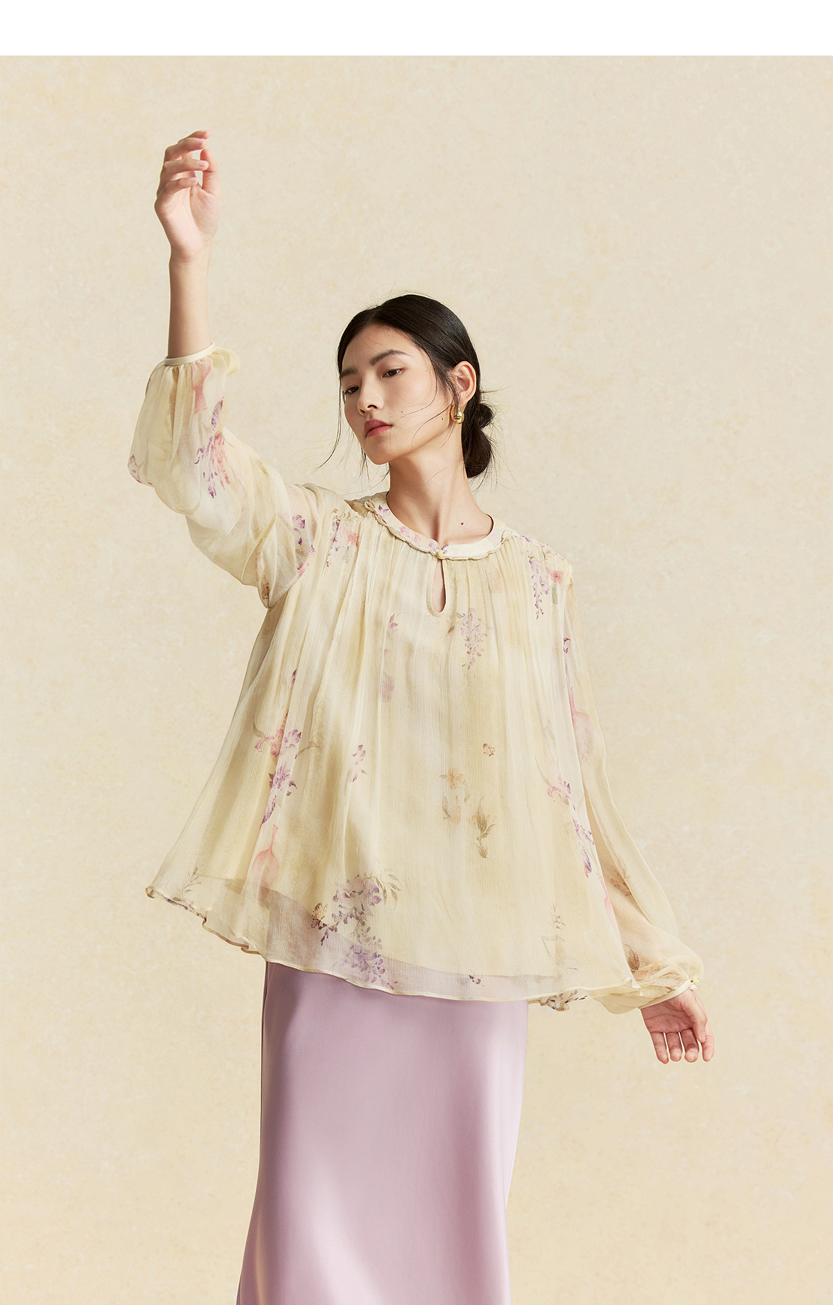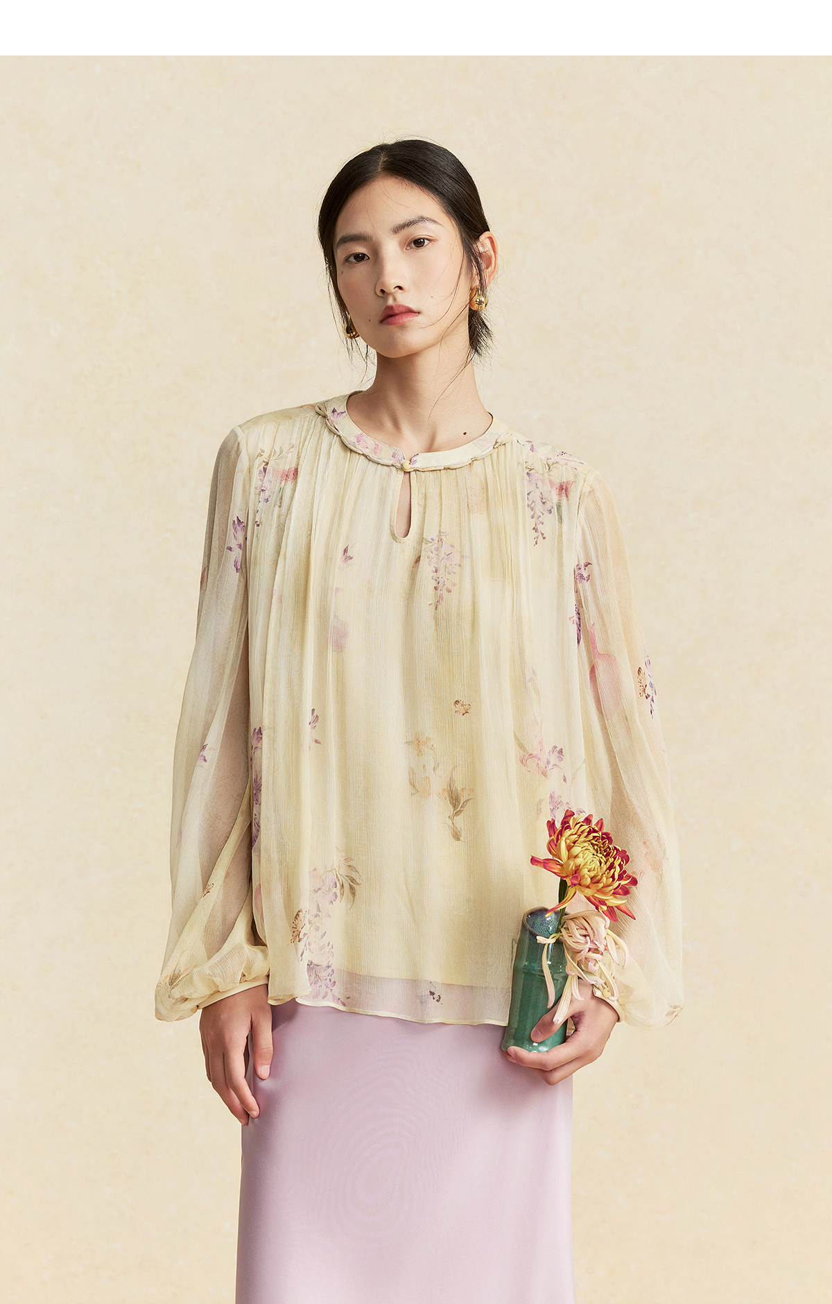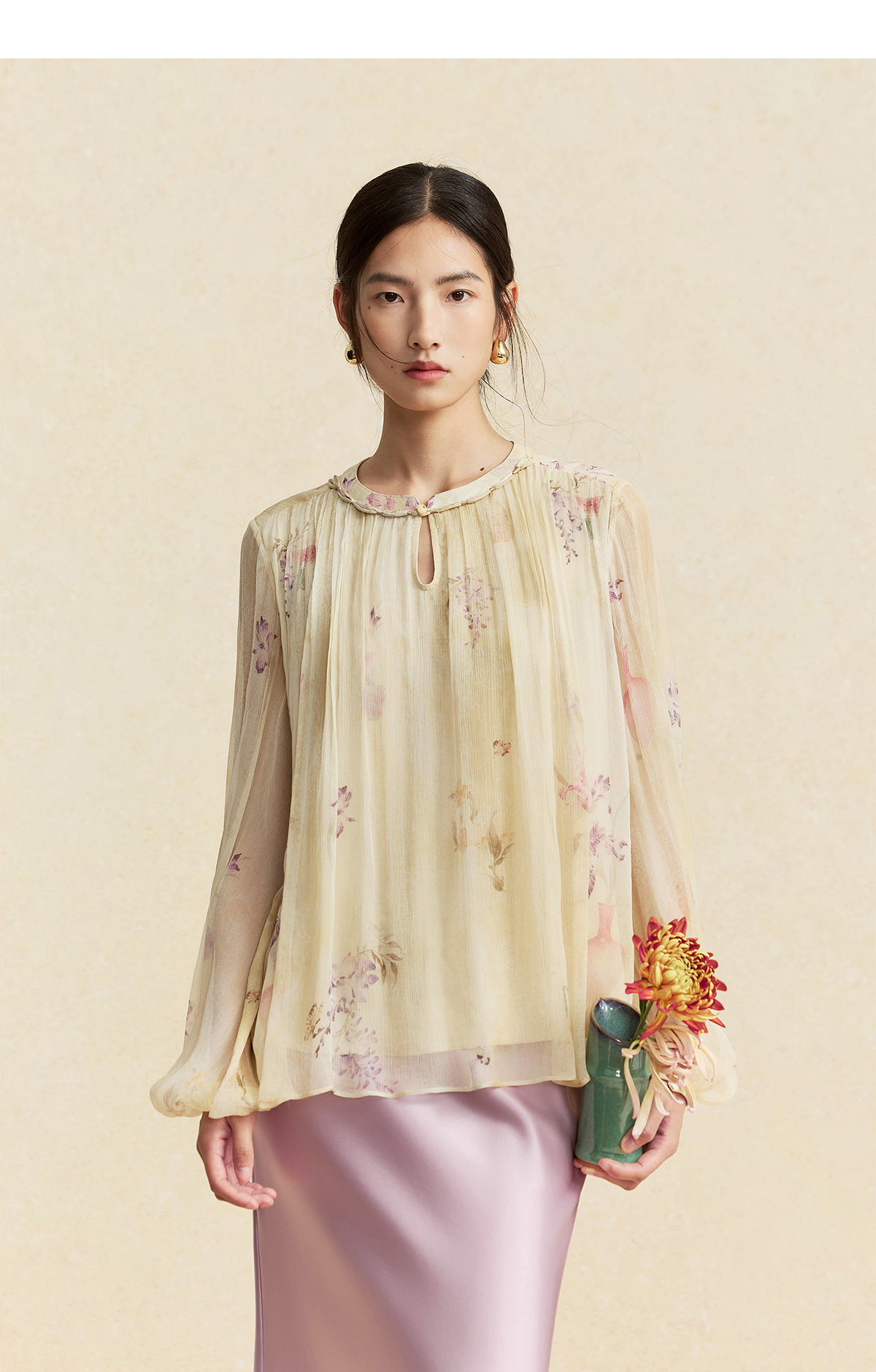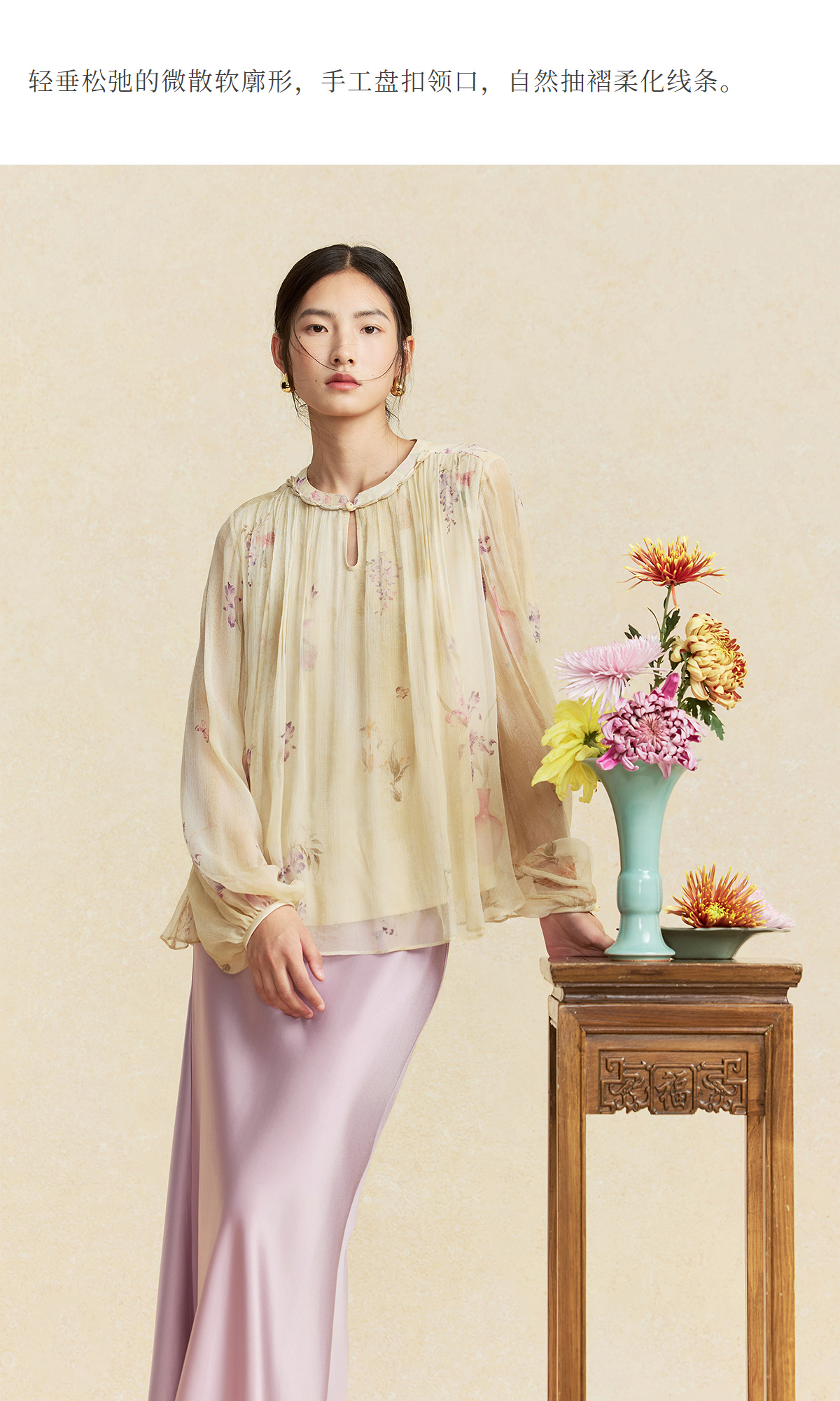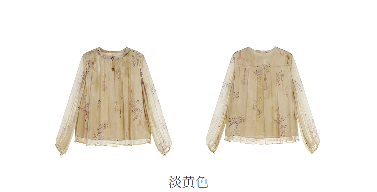 【林栖设计小店】卷草入画|桑蚕丝手工盘扣褶皱印花仙气2026春新款真丝衫1961086