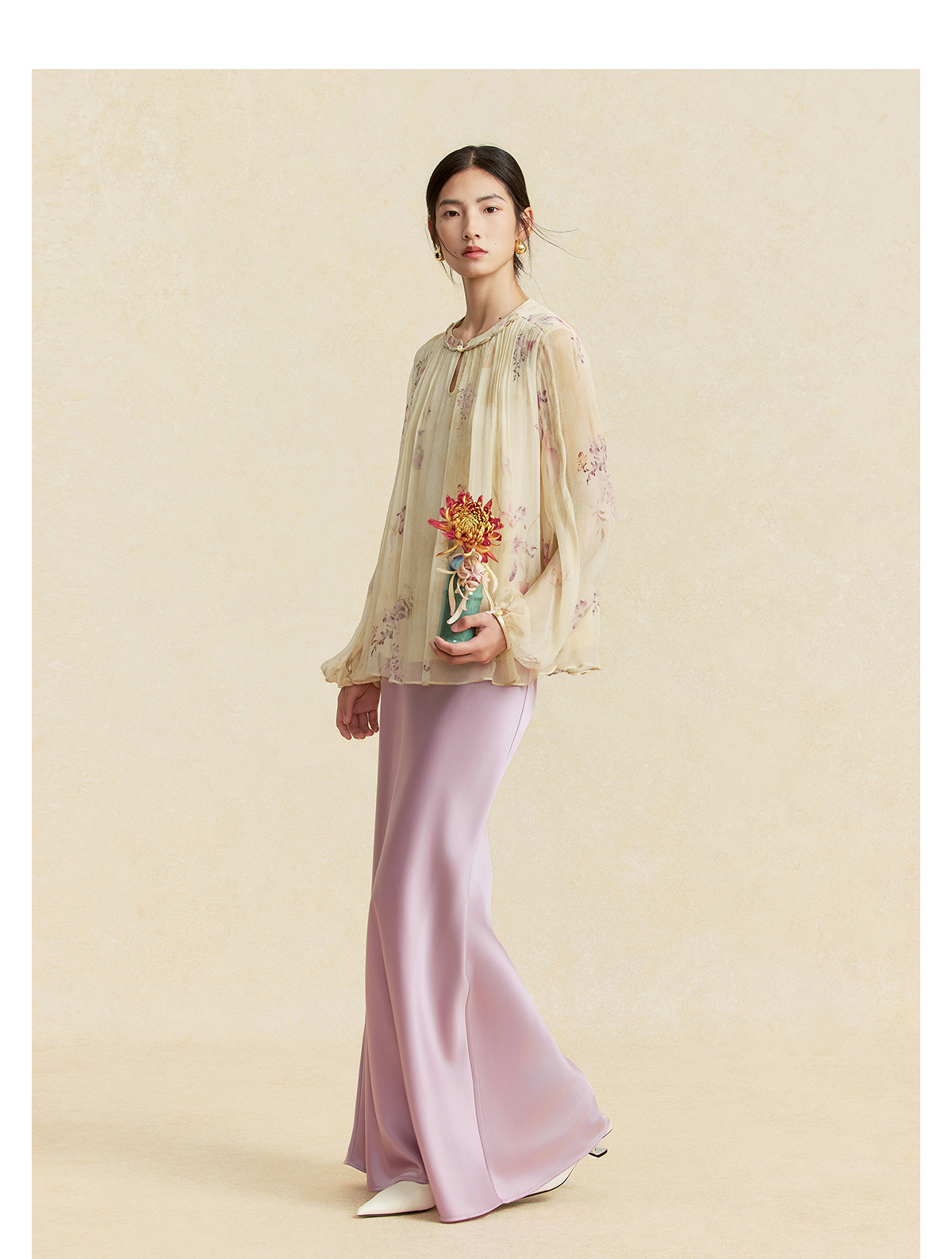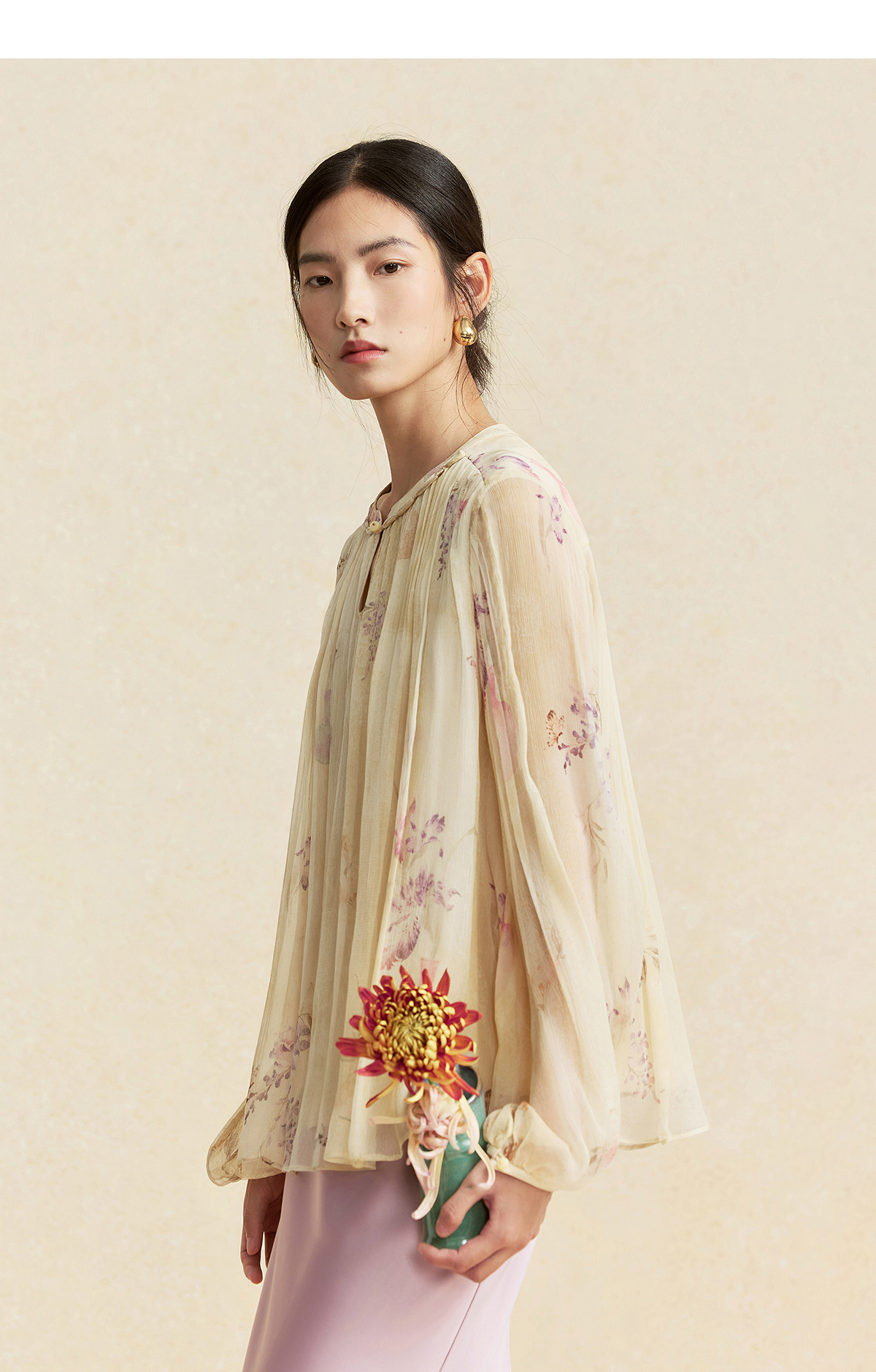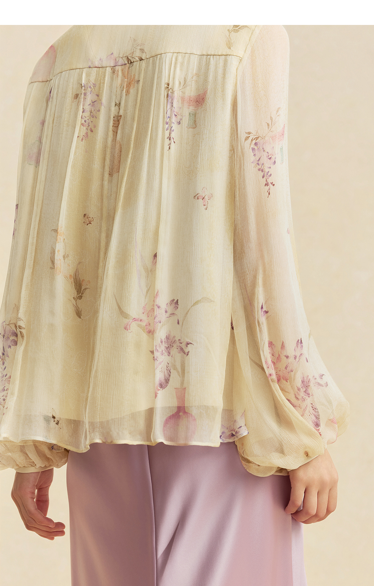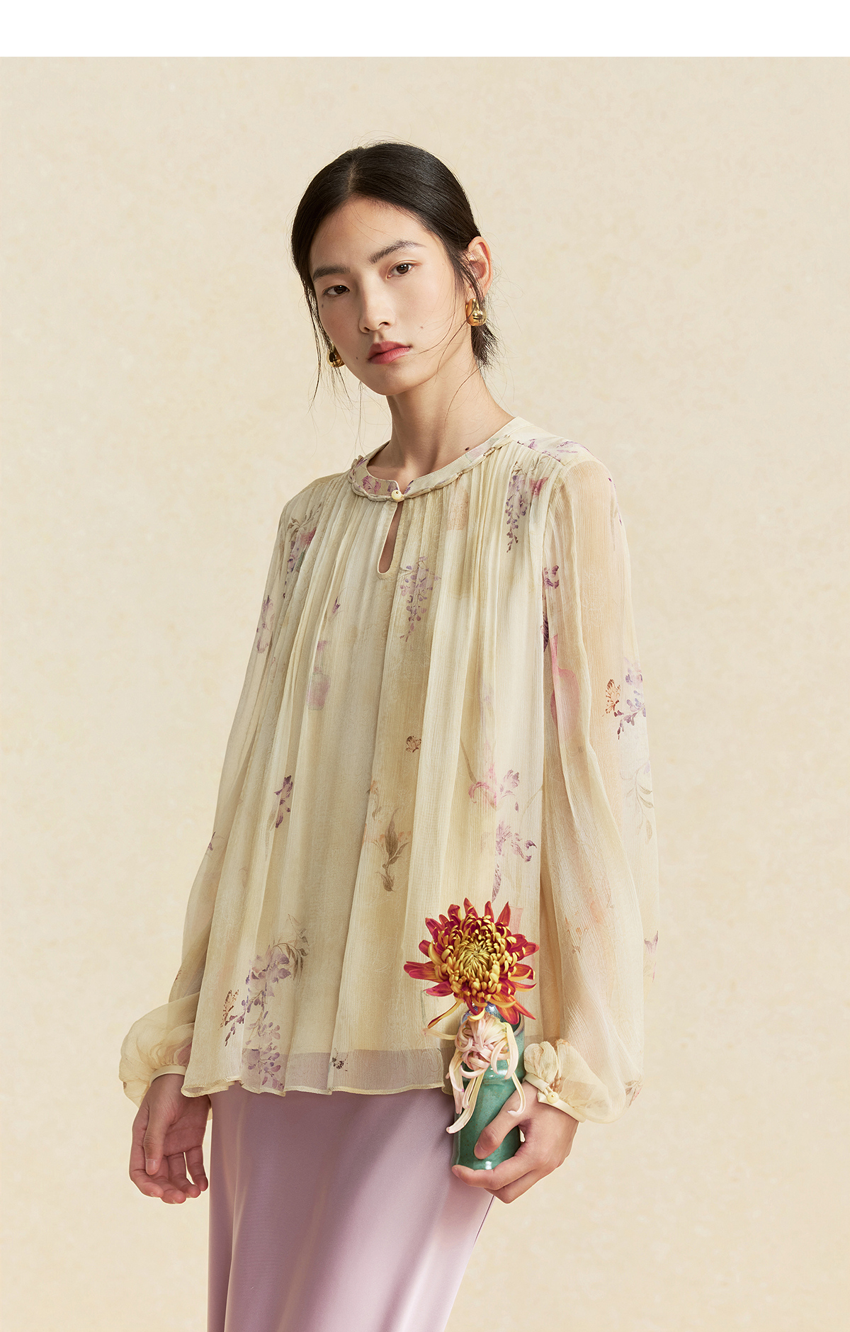【林栖设计小店】卷草入画|桑蚕丝手工盘扣褶皱印花仙气2026春新款真丝衫1961086