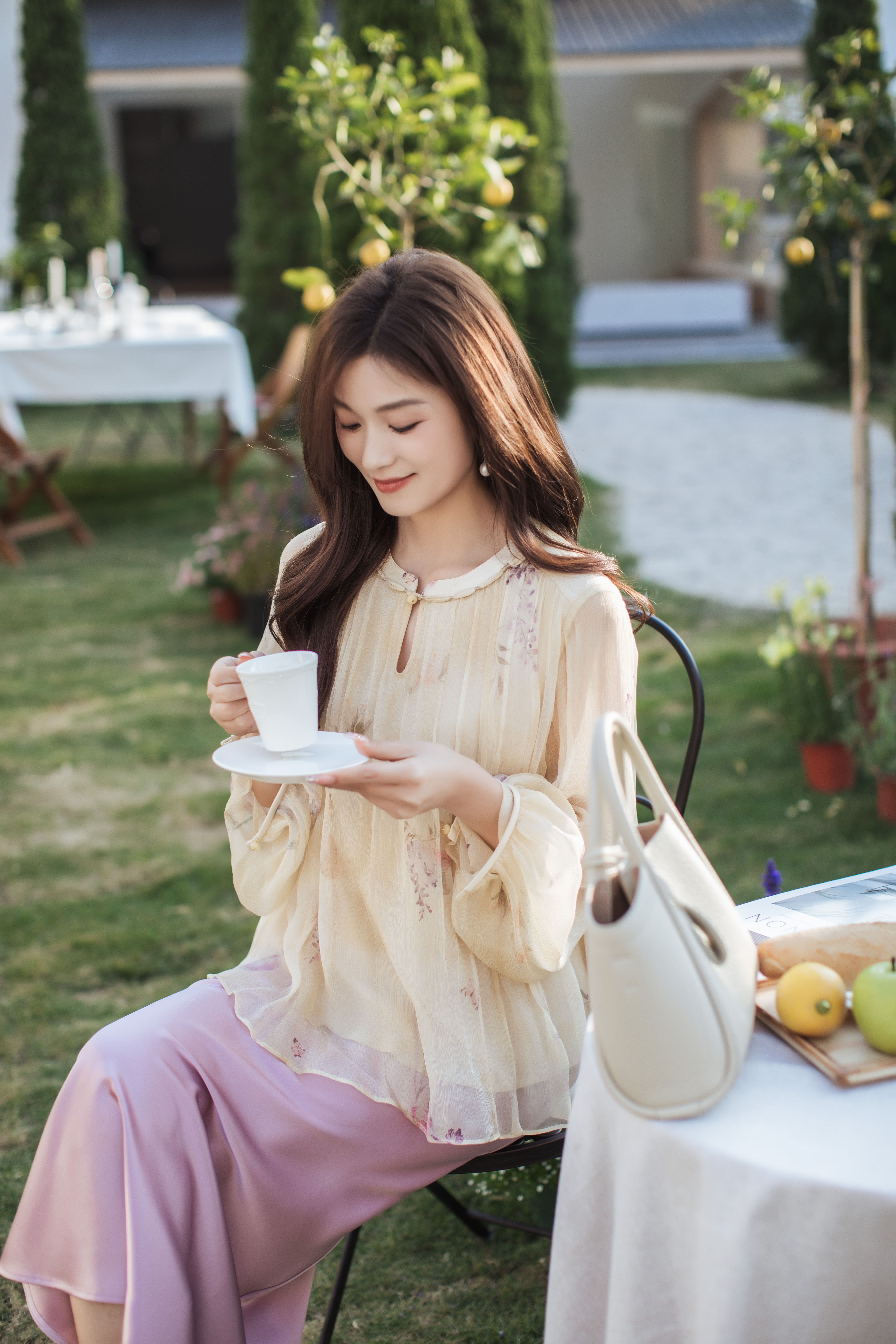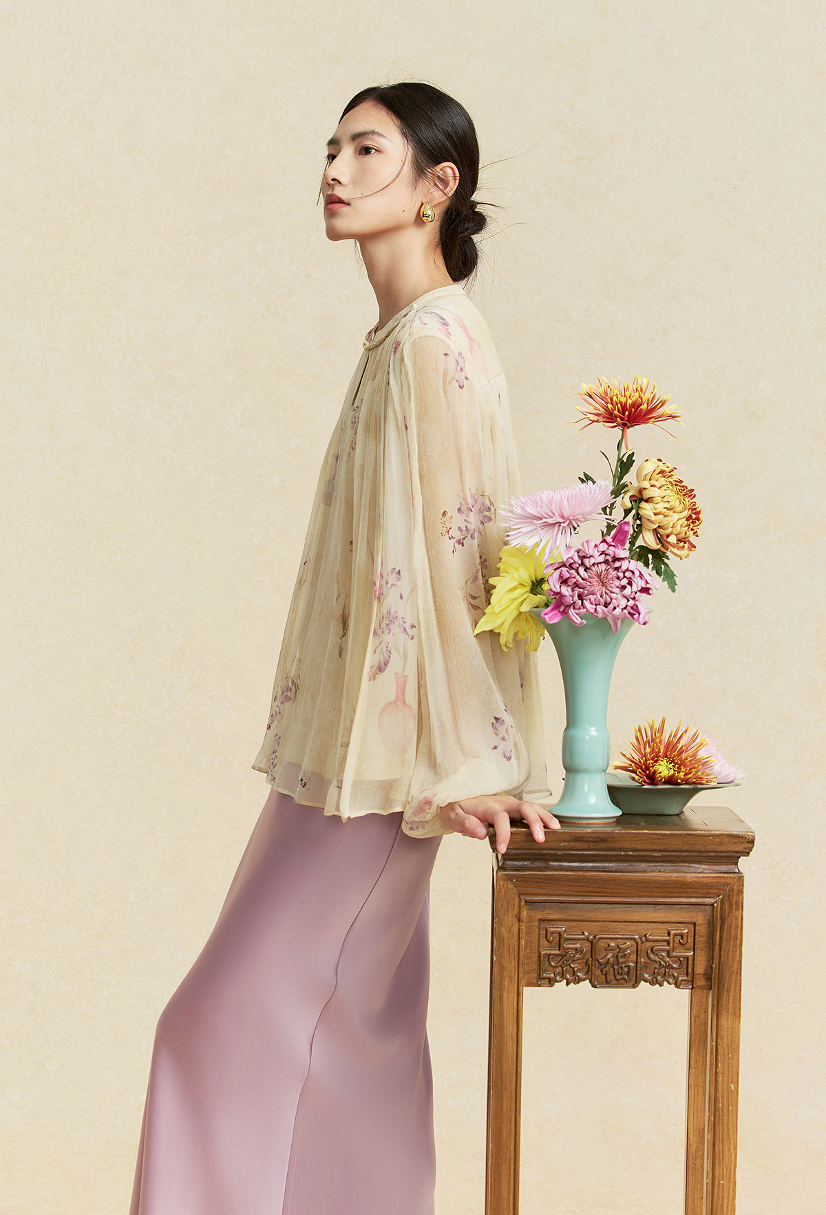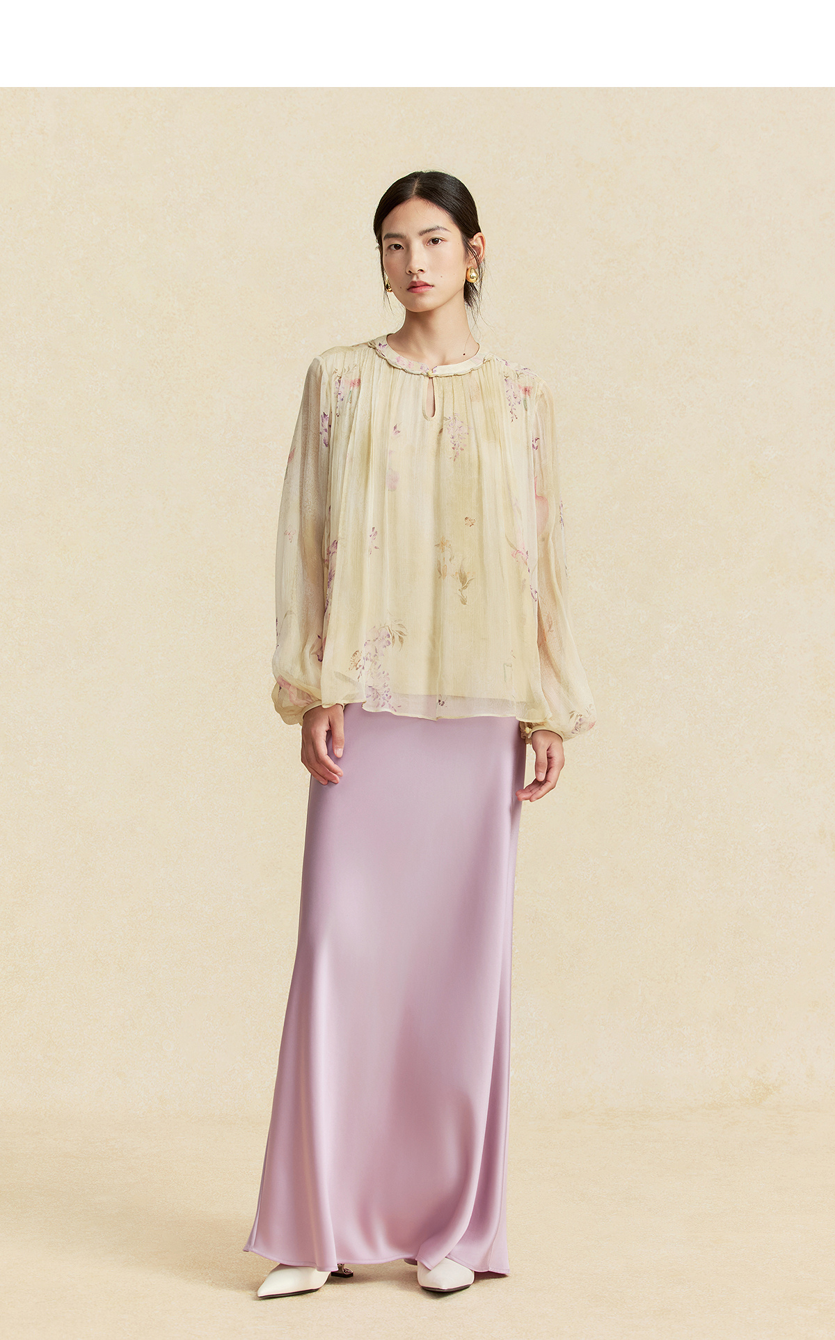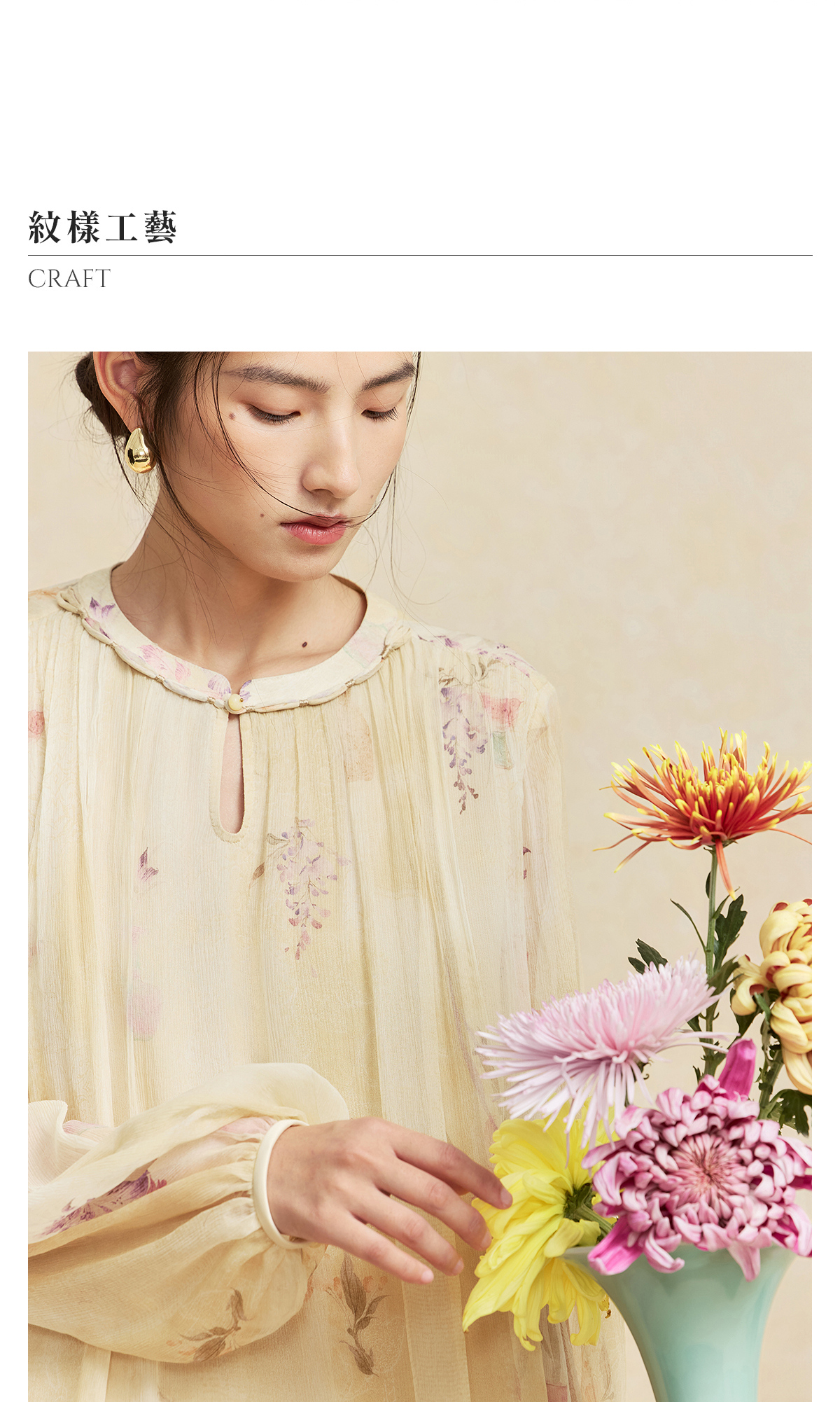 【林栖设计小店】卷草入画|桑蚕丝手工盘扣褶皱印花仙气2026春新款真丝衫1961086
