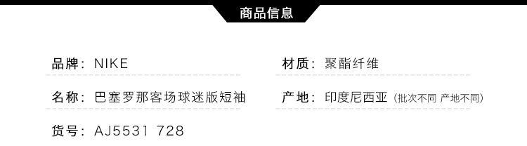 小李子:专柜正品NIKE耐克19-20赛季巴塞罗那客场球衣男AJ5531-728