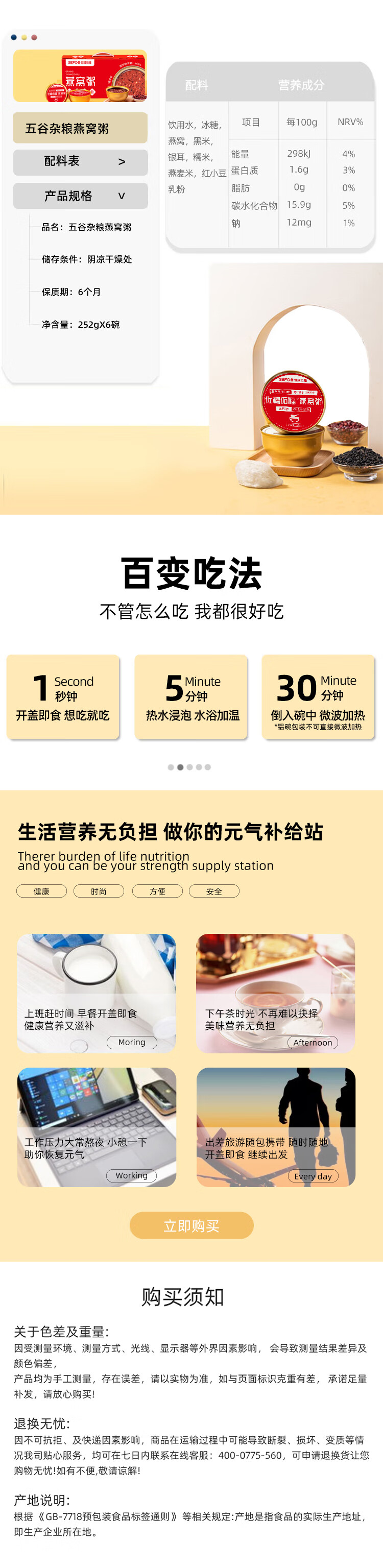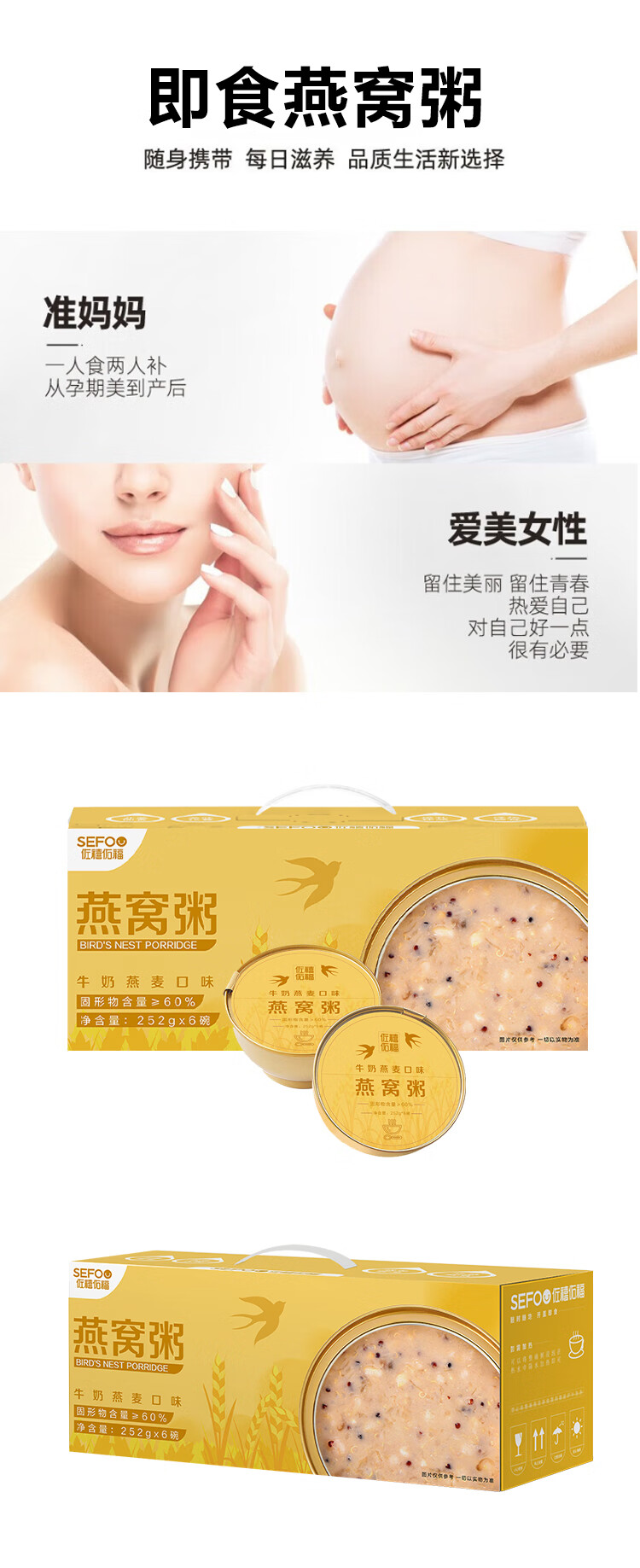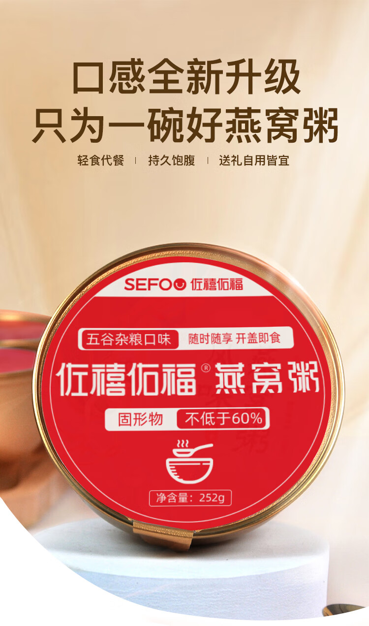 佐禧佑福燕窝粥牛奶黑米粥252g*6碗代餐即食营养粥早餐粥速食粥礼物送礼