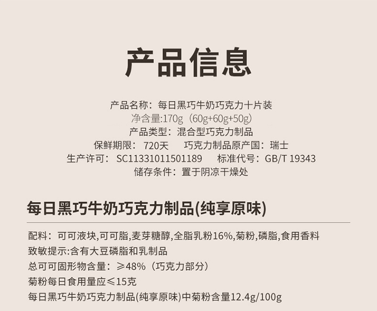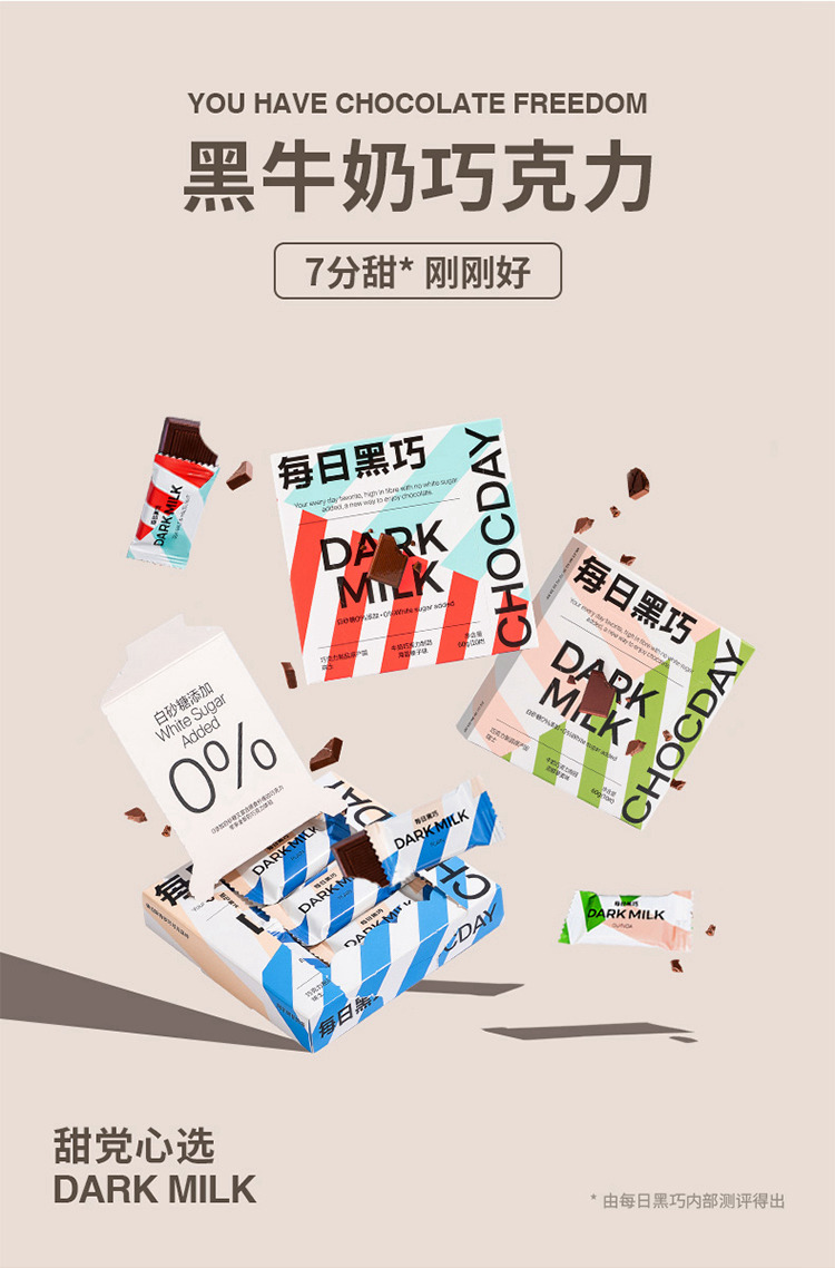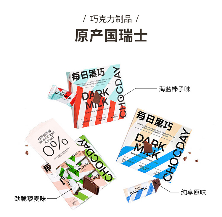 每日黑巧 黑牛奶小方三盒装混合口味 170g(包邮直发)