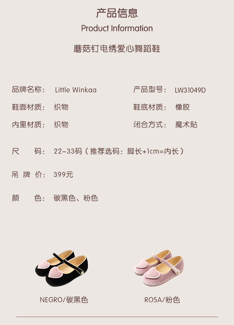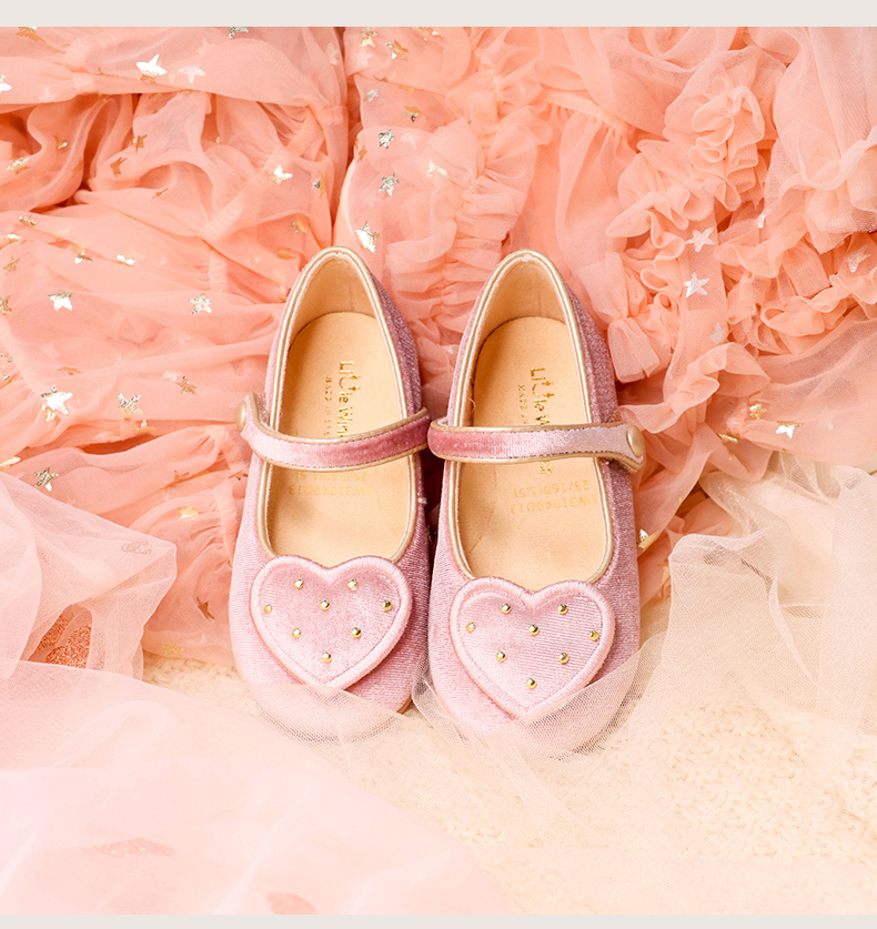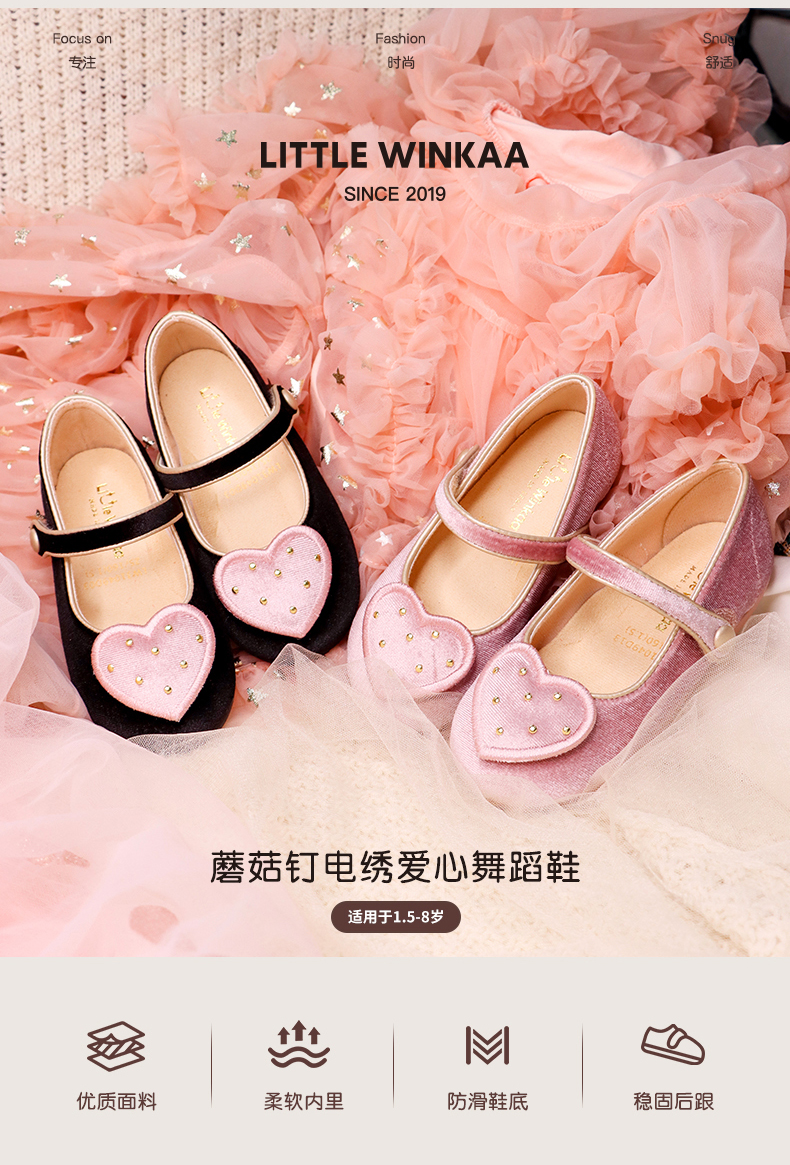 littlewinkaa蘑菇钉爱心女童舞蹈鞋儿童软底公主宝宝单鞋LW31049D