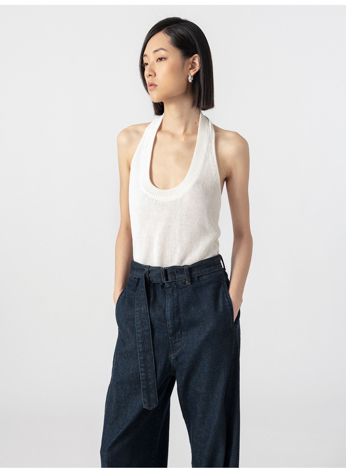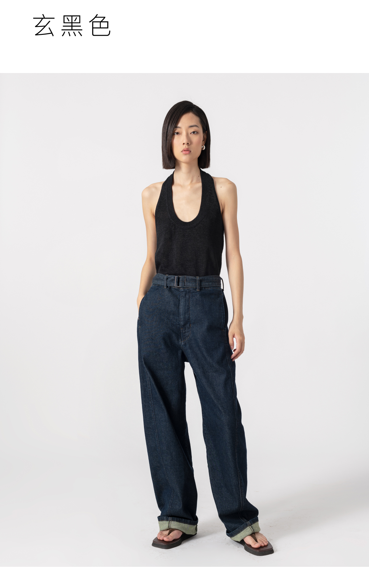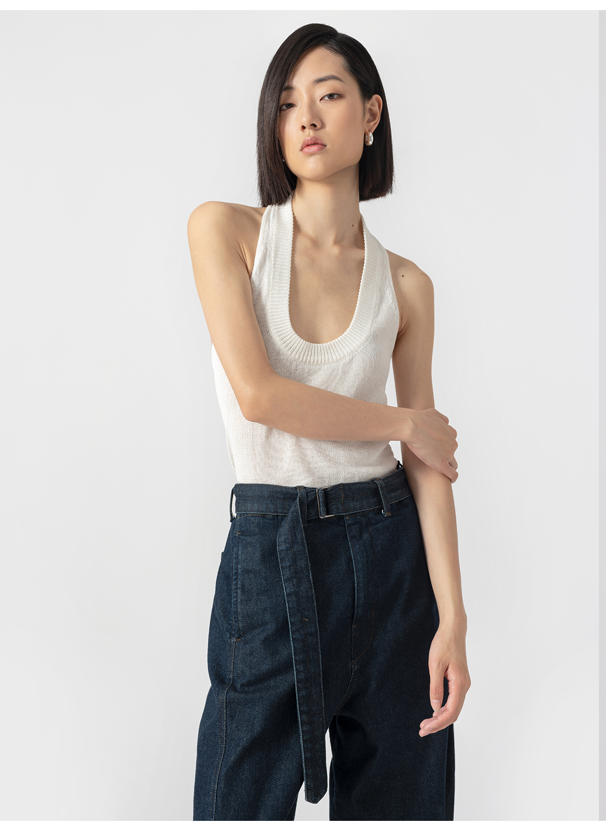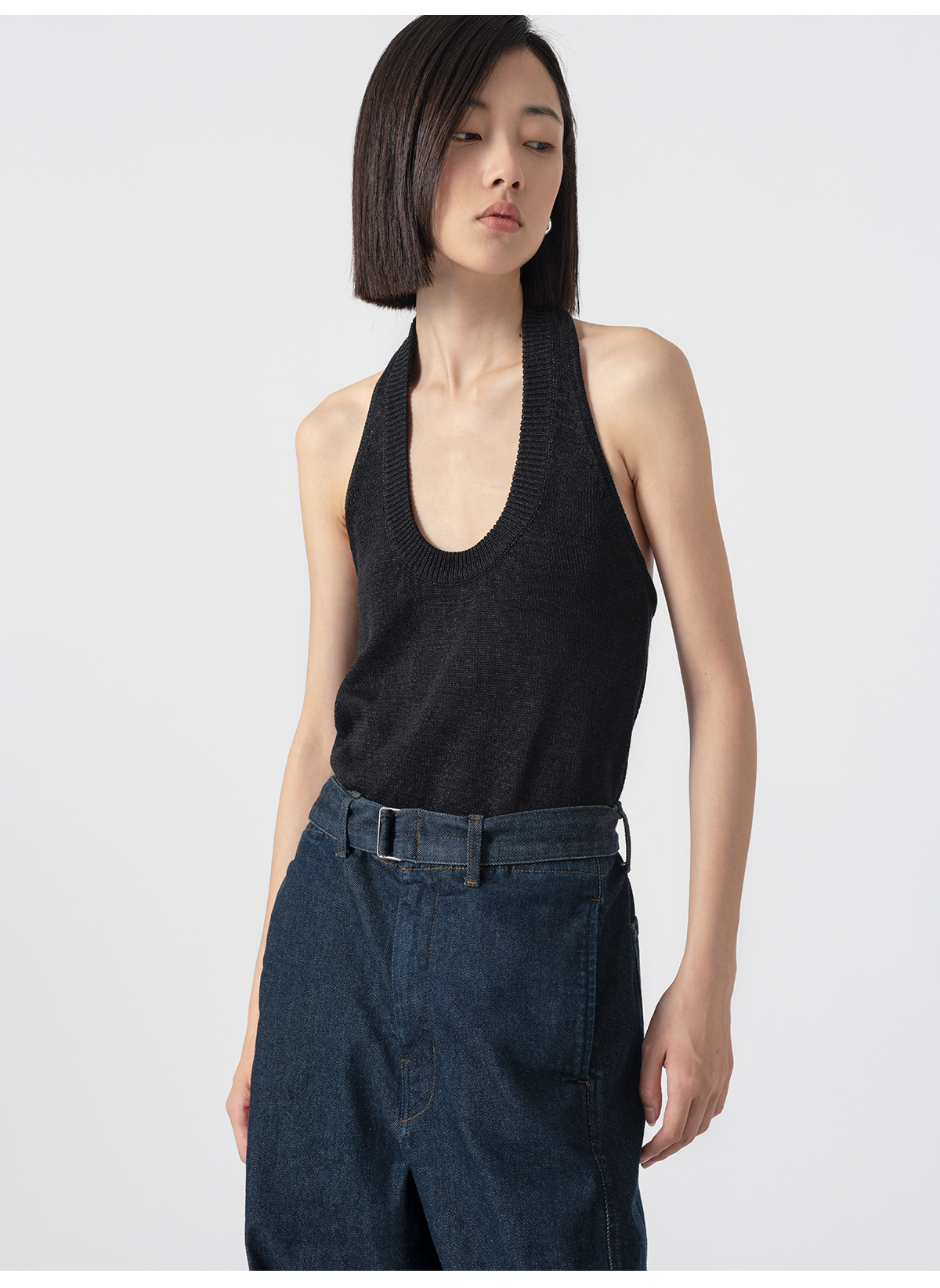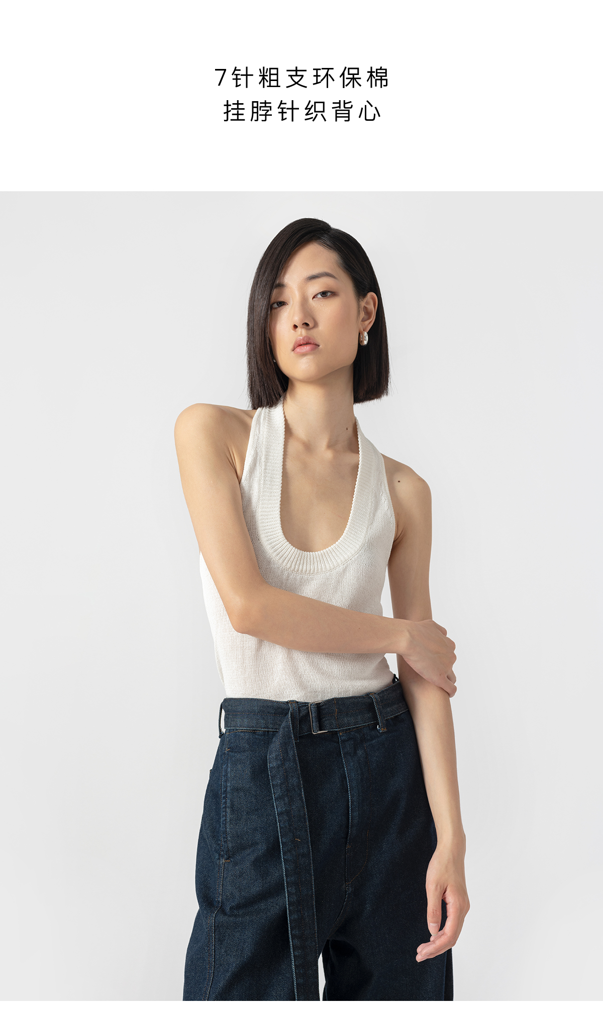 322工房经典再造环保棉挂脖针织背心2023夏无袖显瘦内搭吊带B055