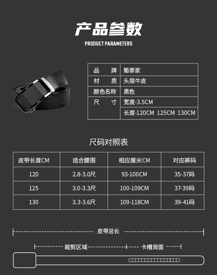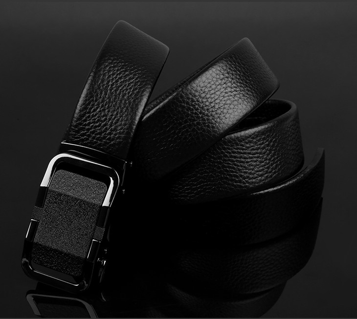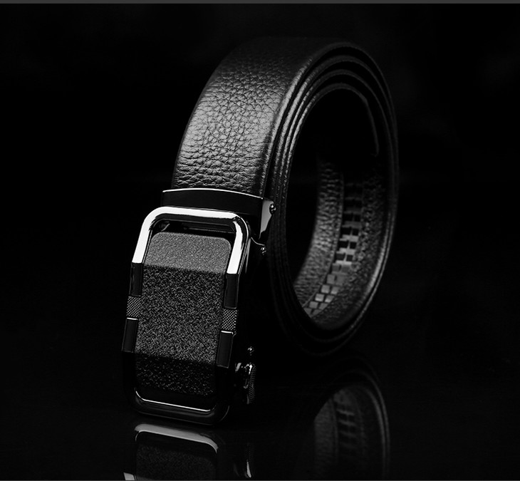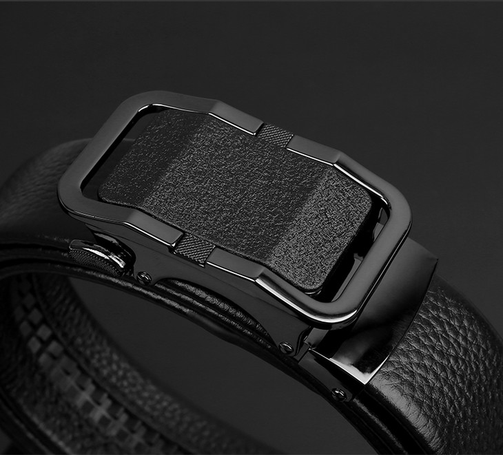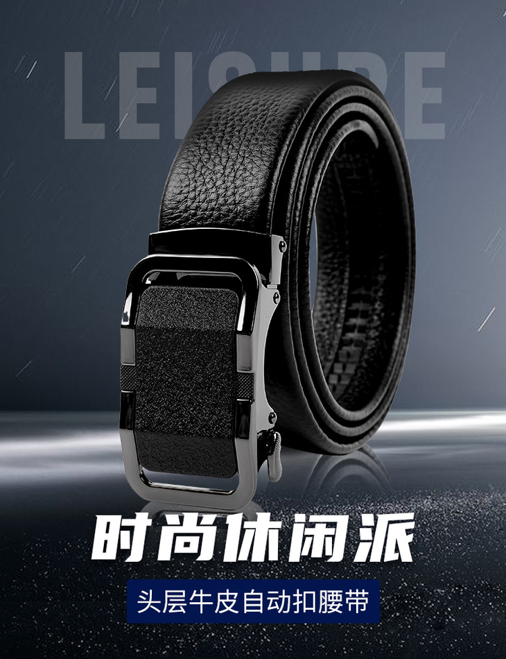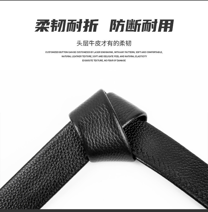 【牛皮自动扣腰带(扣头可定制图案)】男士自动扣快速穿脱腰带皮带 头层牛皮裤带柔韧耐折防断耐用