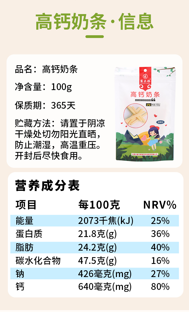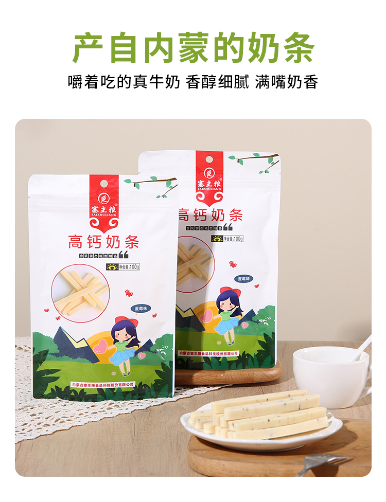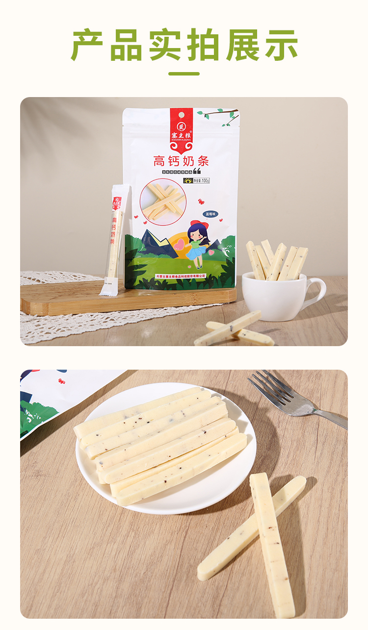 【质农】内蒙古高钙营养奶条蓝莓味100克*3袋 0反式脂肪酸营养香甜不腻放心吃