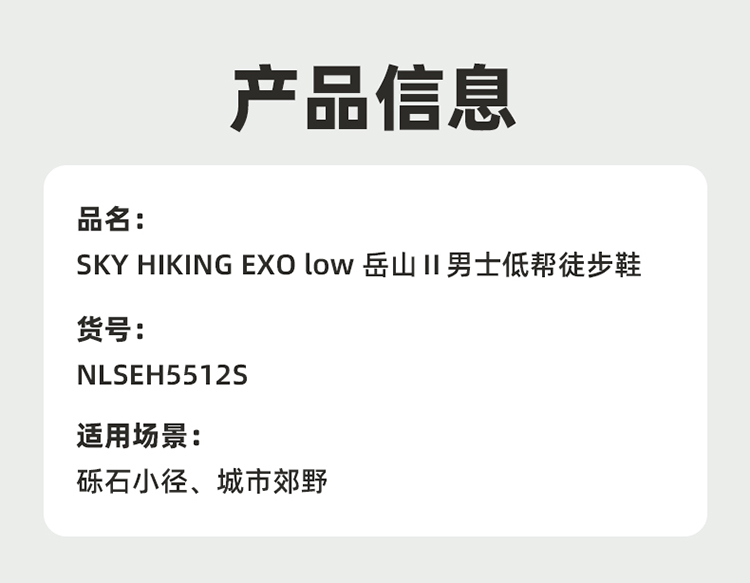 【徒步中国】诺诗兰SKY HIKING EXO low 岳山 II 男式低帮徒步鞋 NLSEH5512S