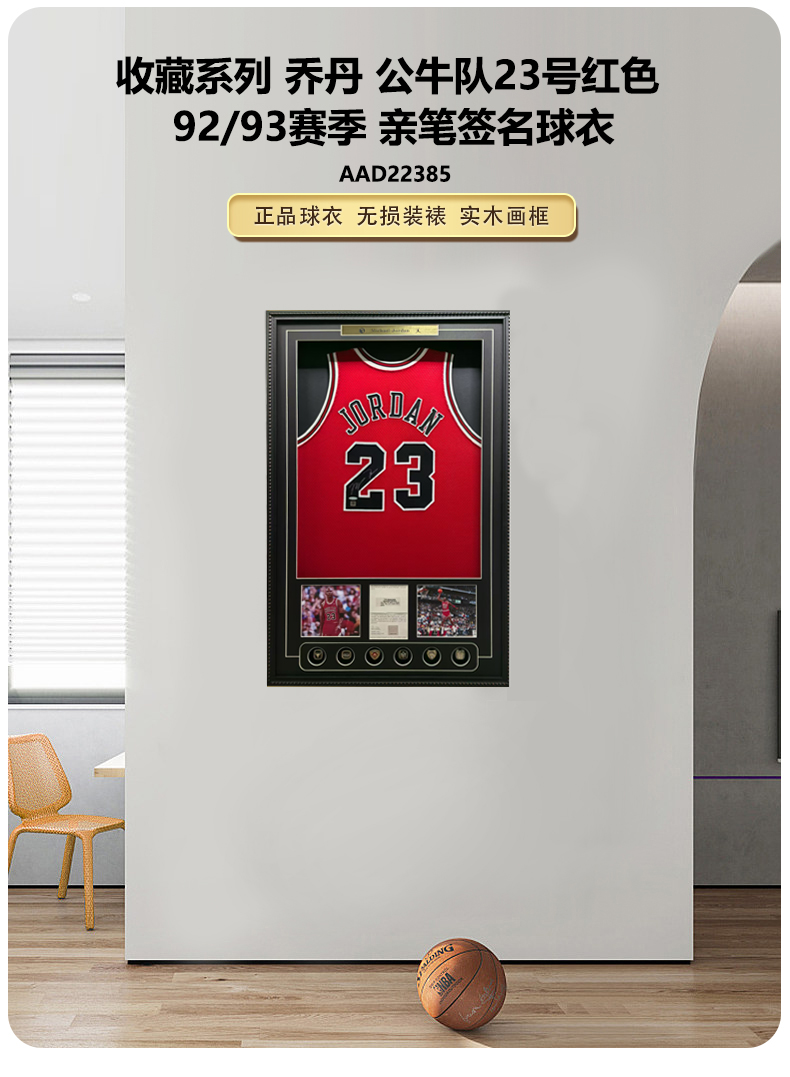 收藏系列 乔丹 公牛队23号红色 92/93赛季 亲笔签名球衣 AAD22385