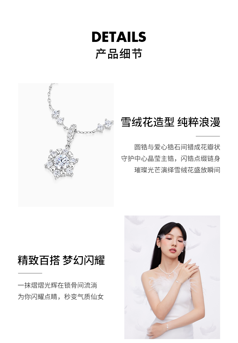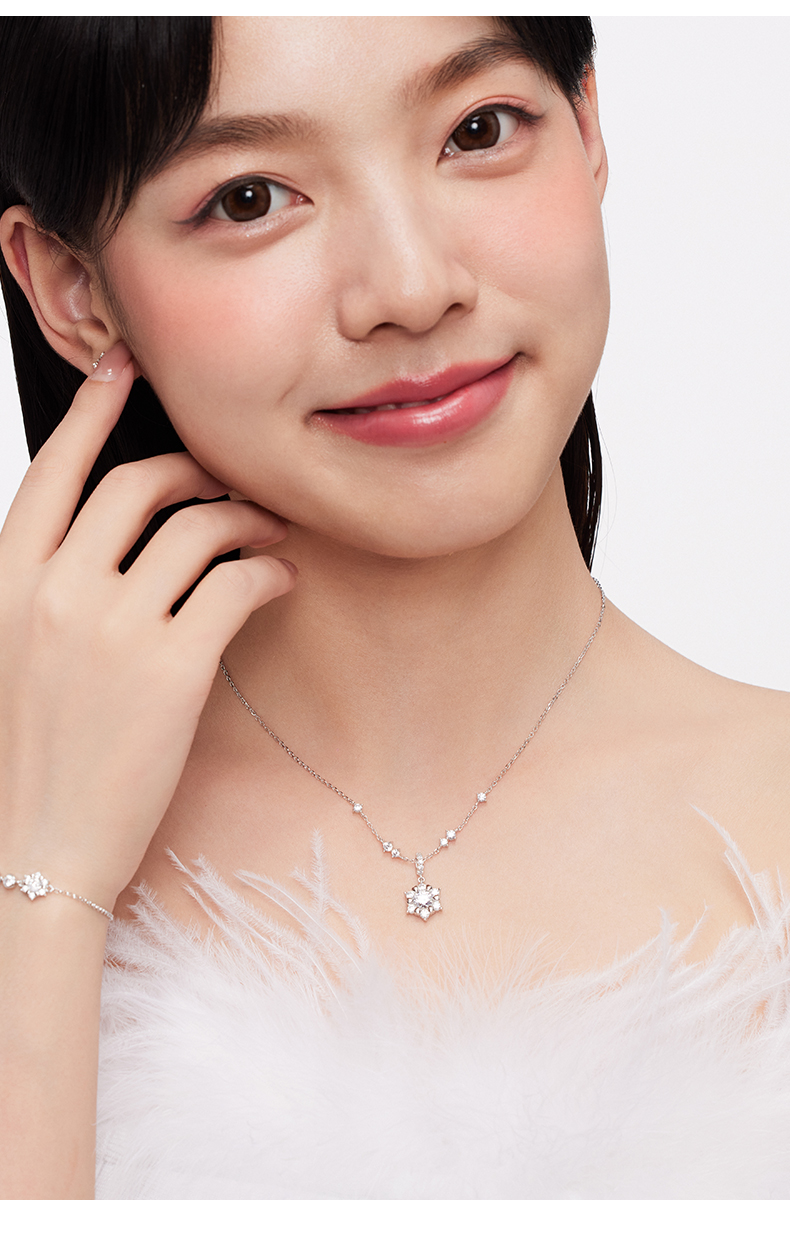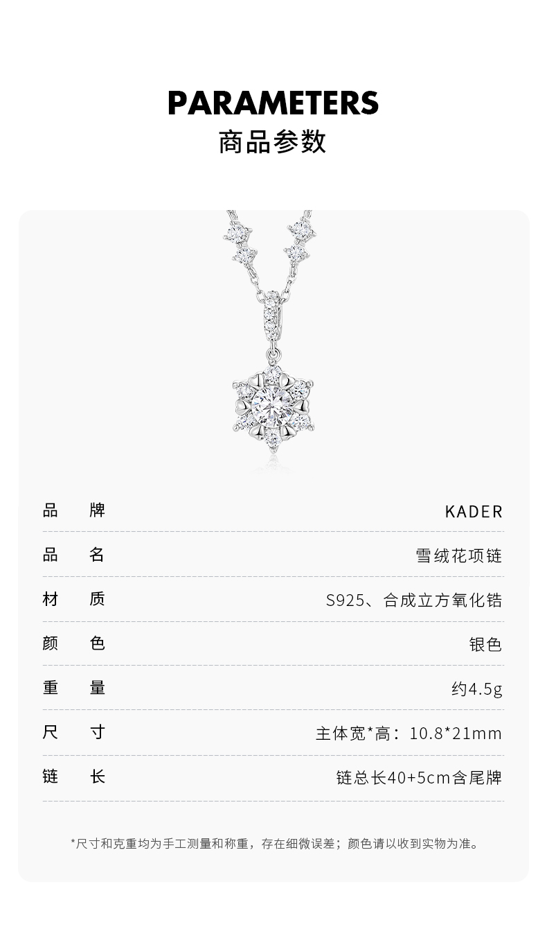 KADER卡蒂罗 雪绒花 轻奢圣诞雪花设计 梦幻冬日浪漫闪耀配饰精致 S925银 项链 女款 礼盒