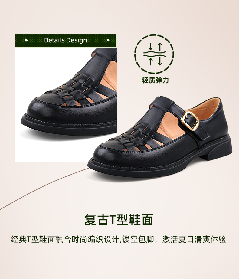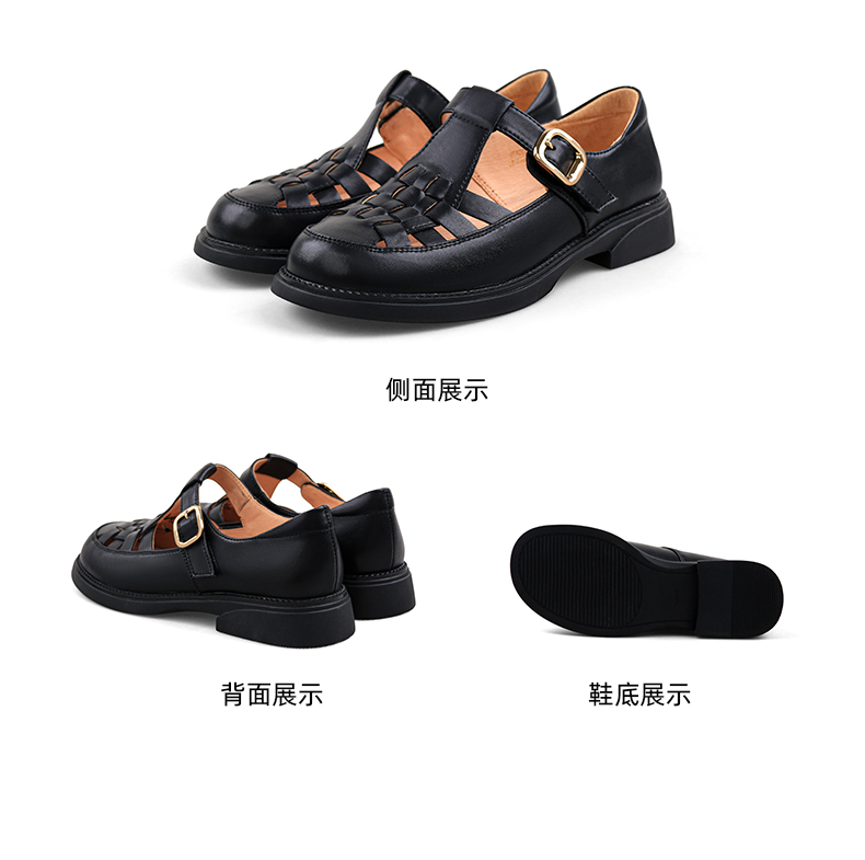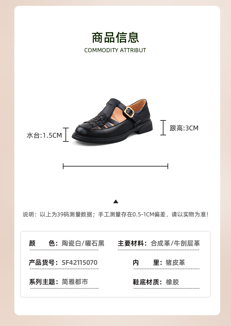 Safiya/索菲娅 2024夏新款休闲镂空复古包头编织罗马凉鞋 SF42115070
