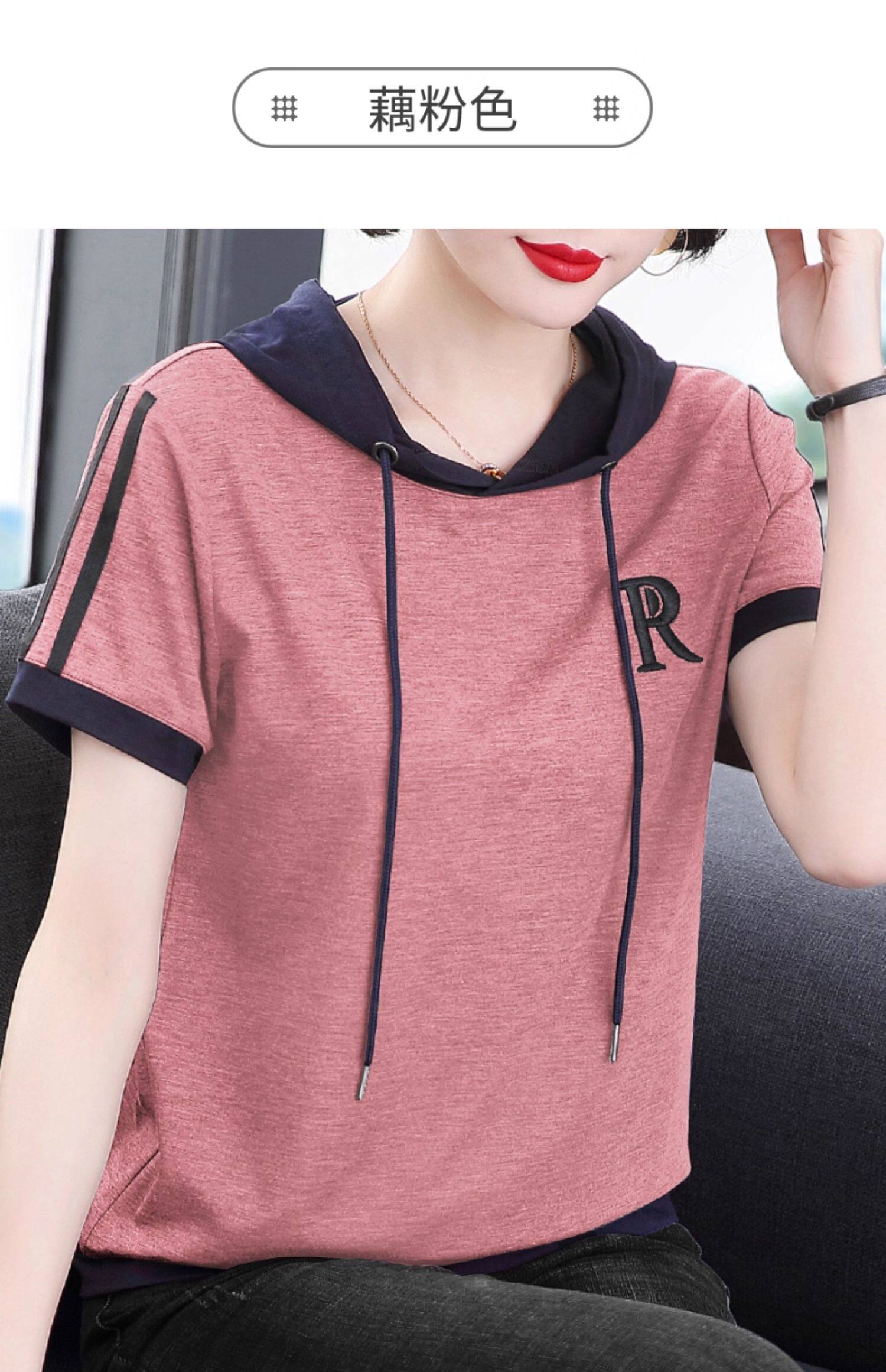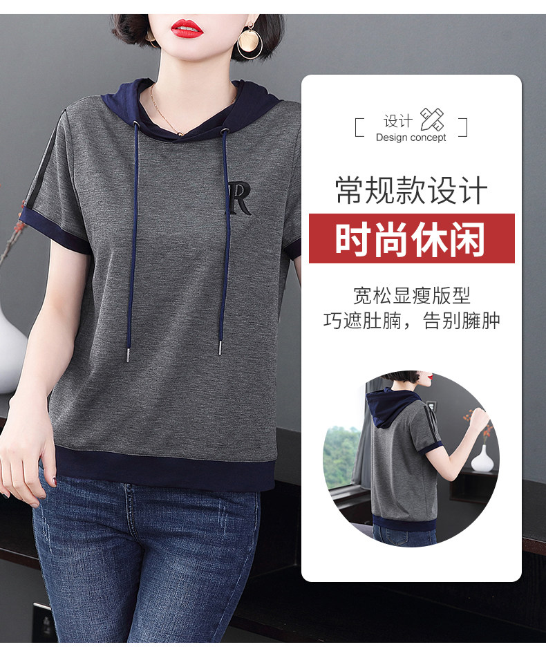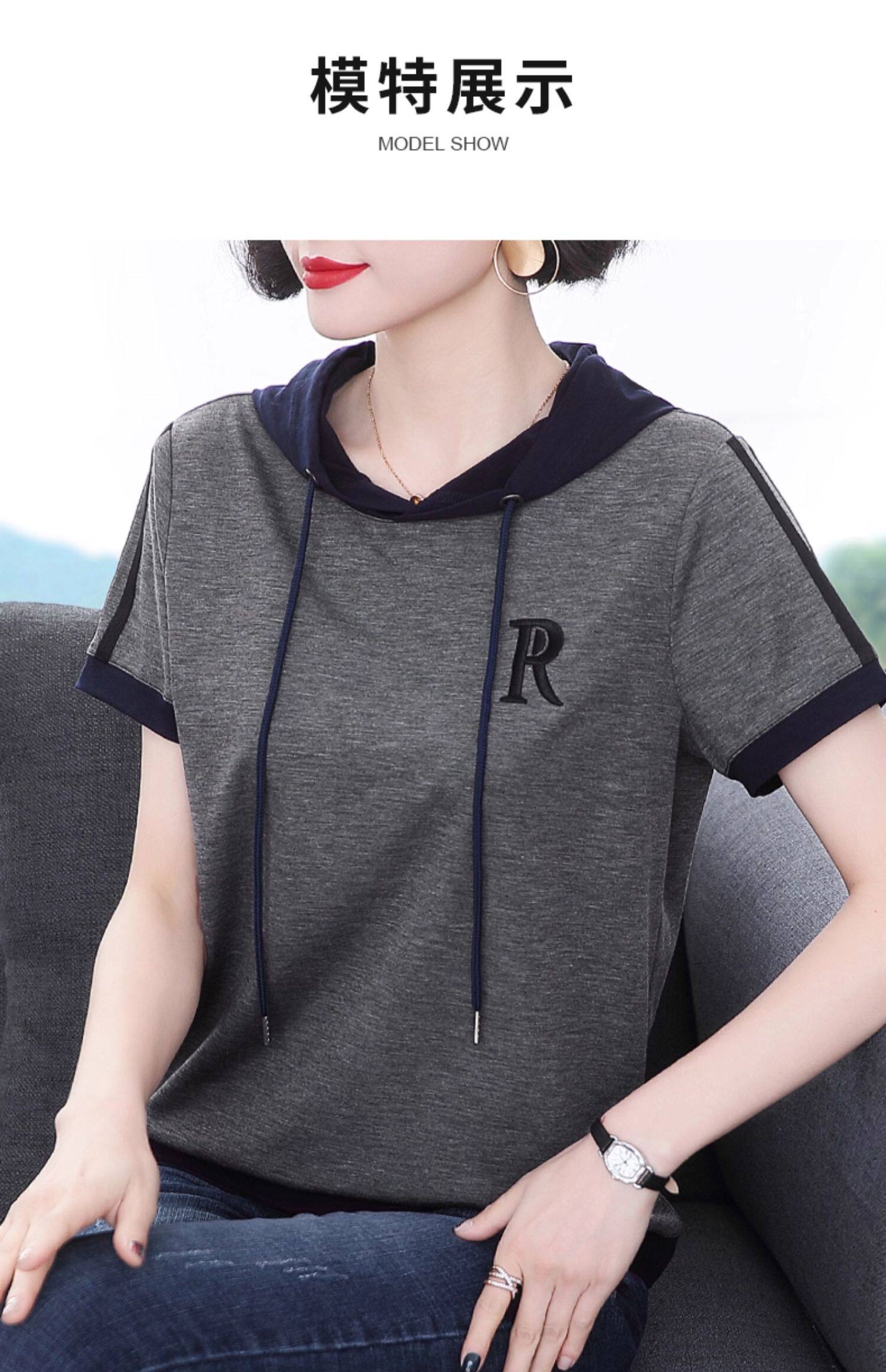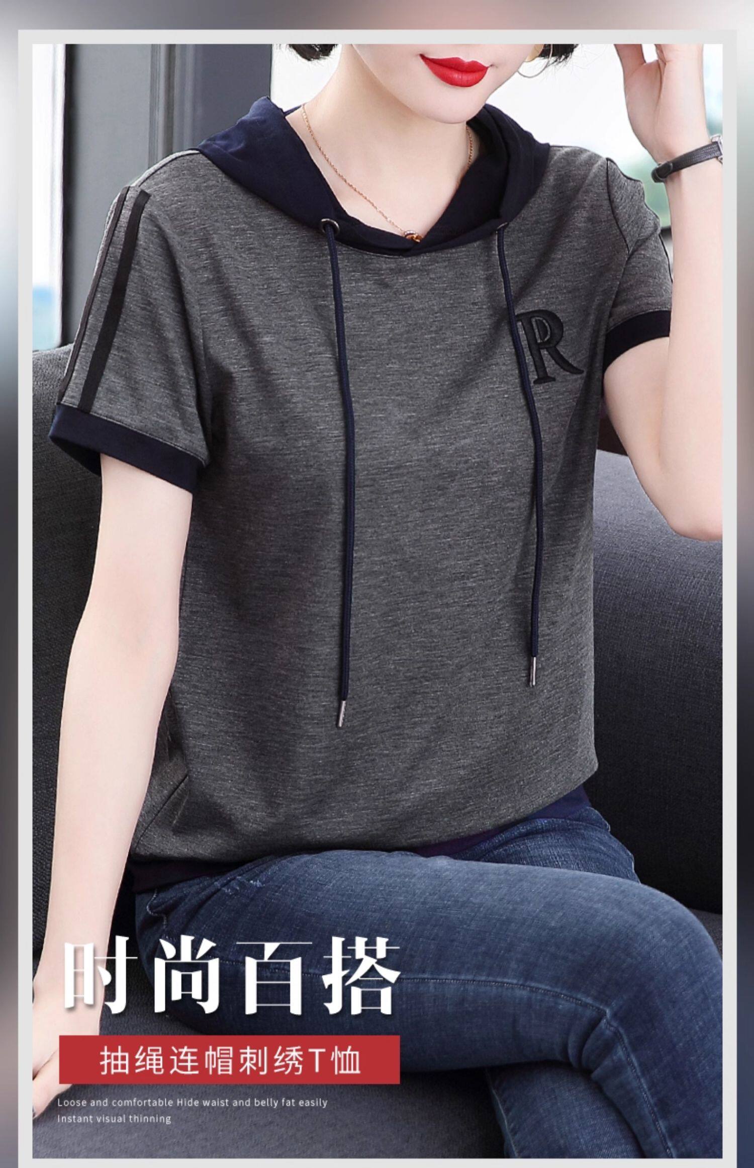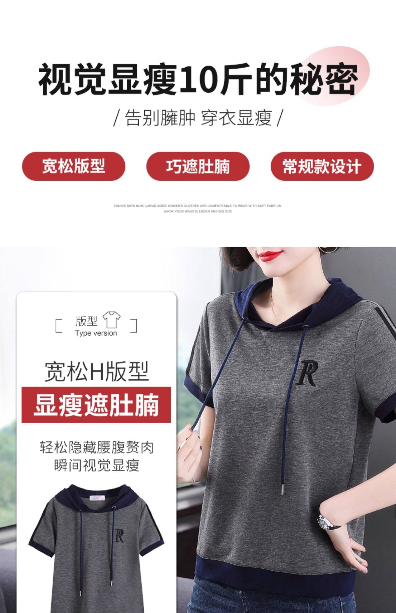 连帽短袖t恤衫女薄款夏装2026新款妈妈大码休闲带帽运动上衣宽松