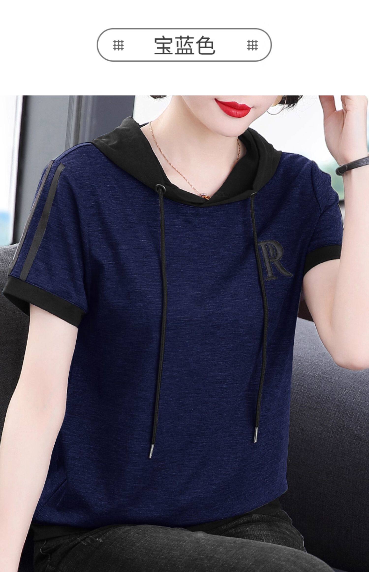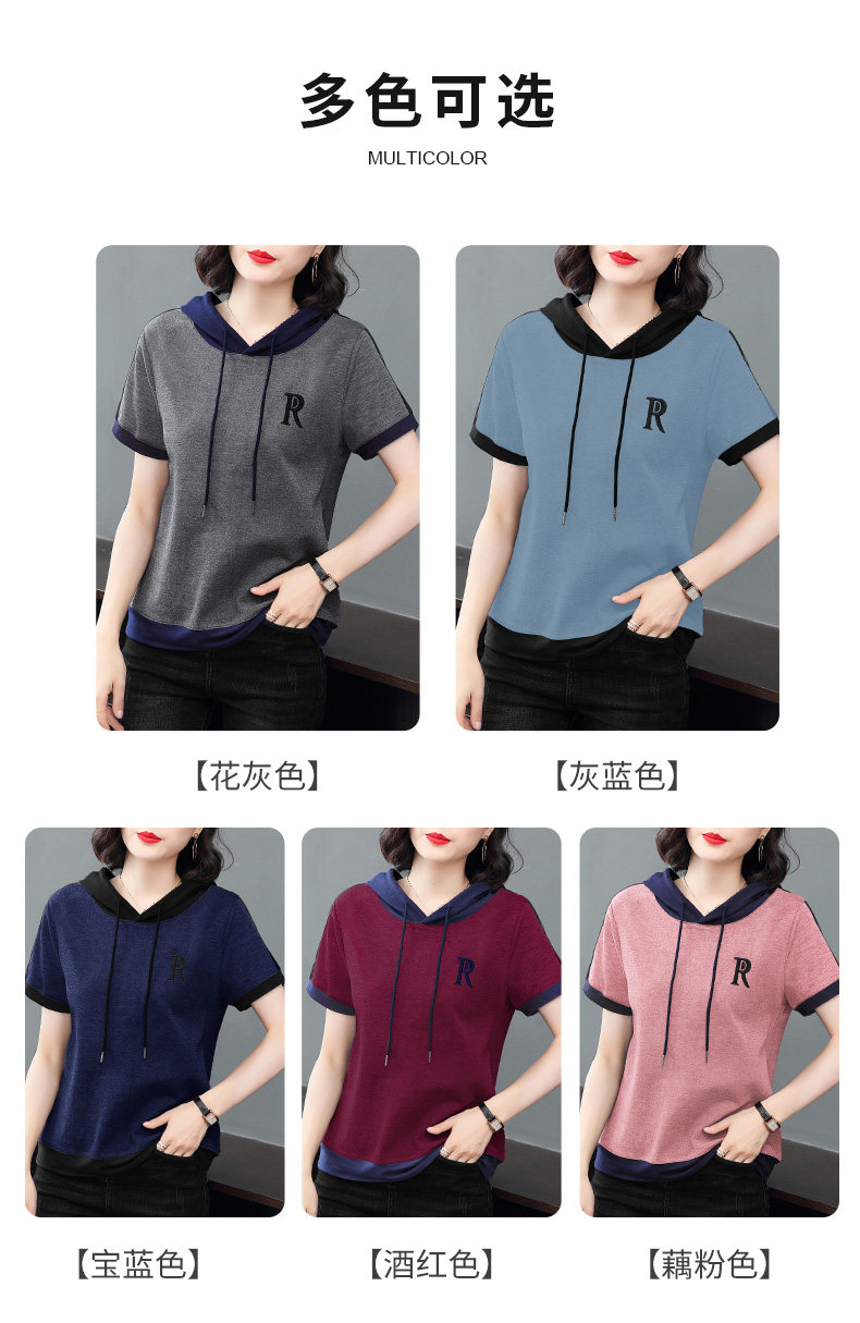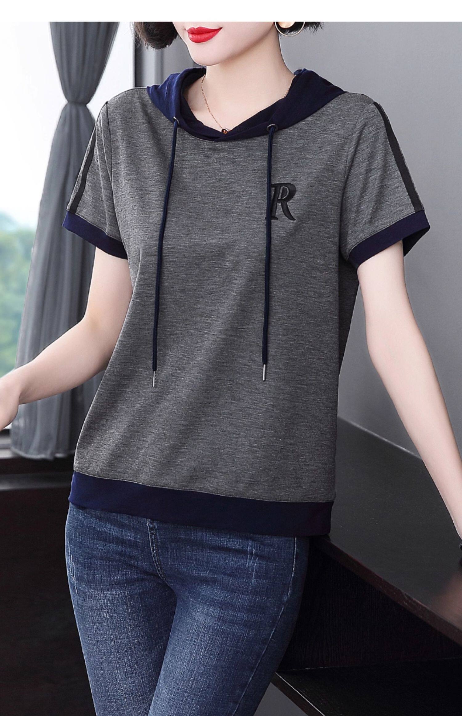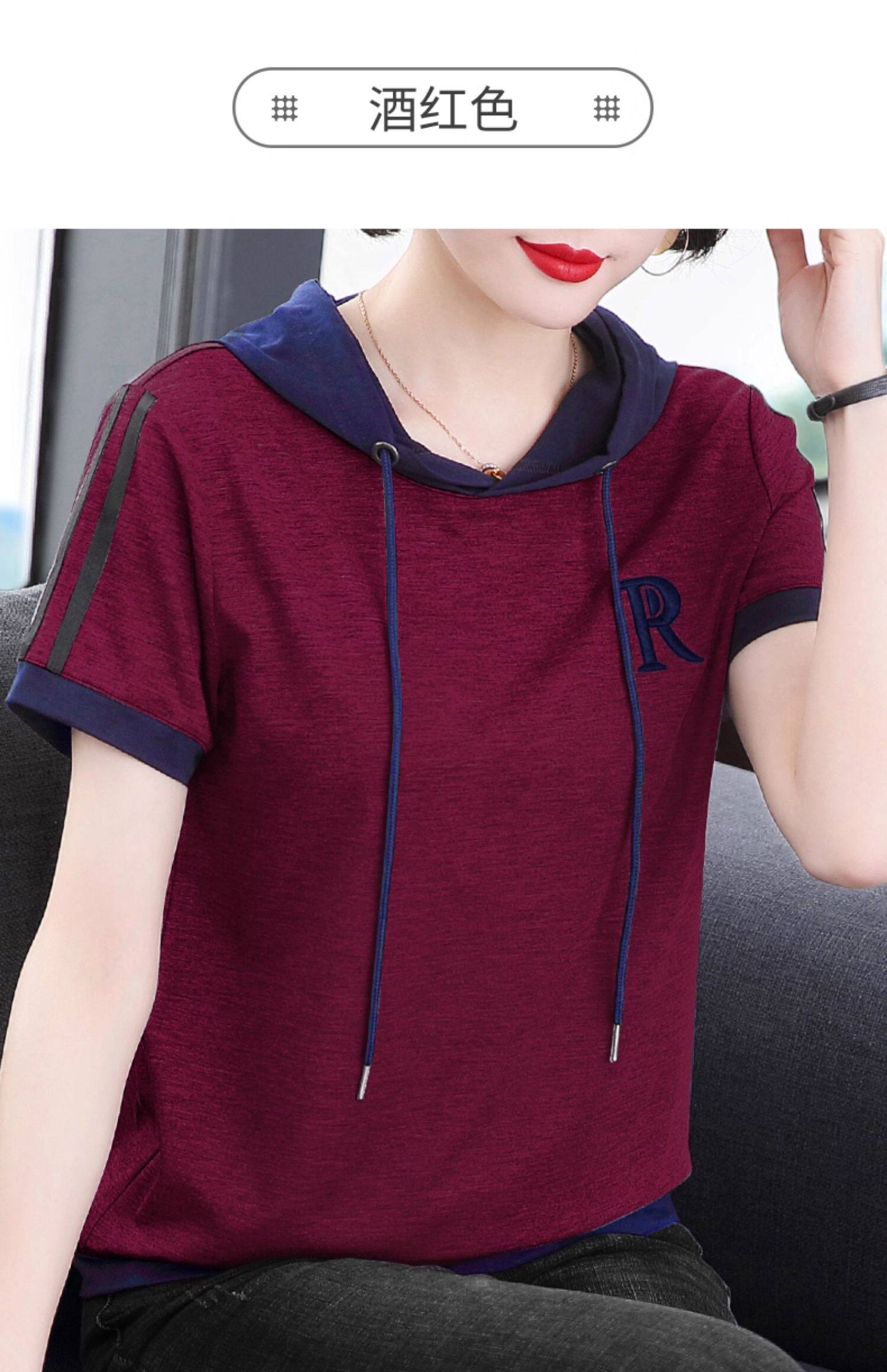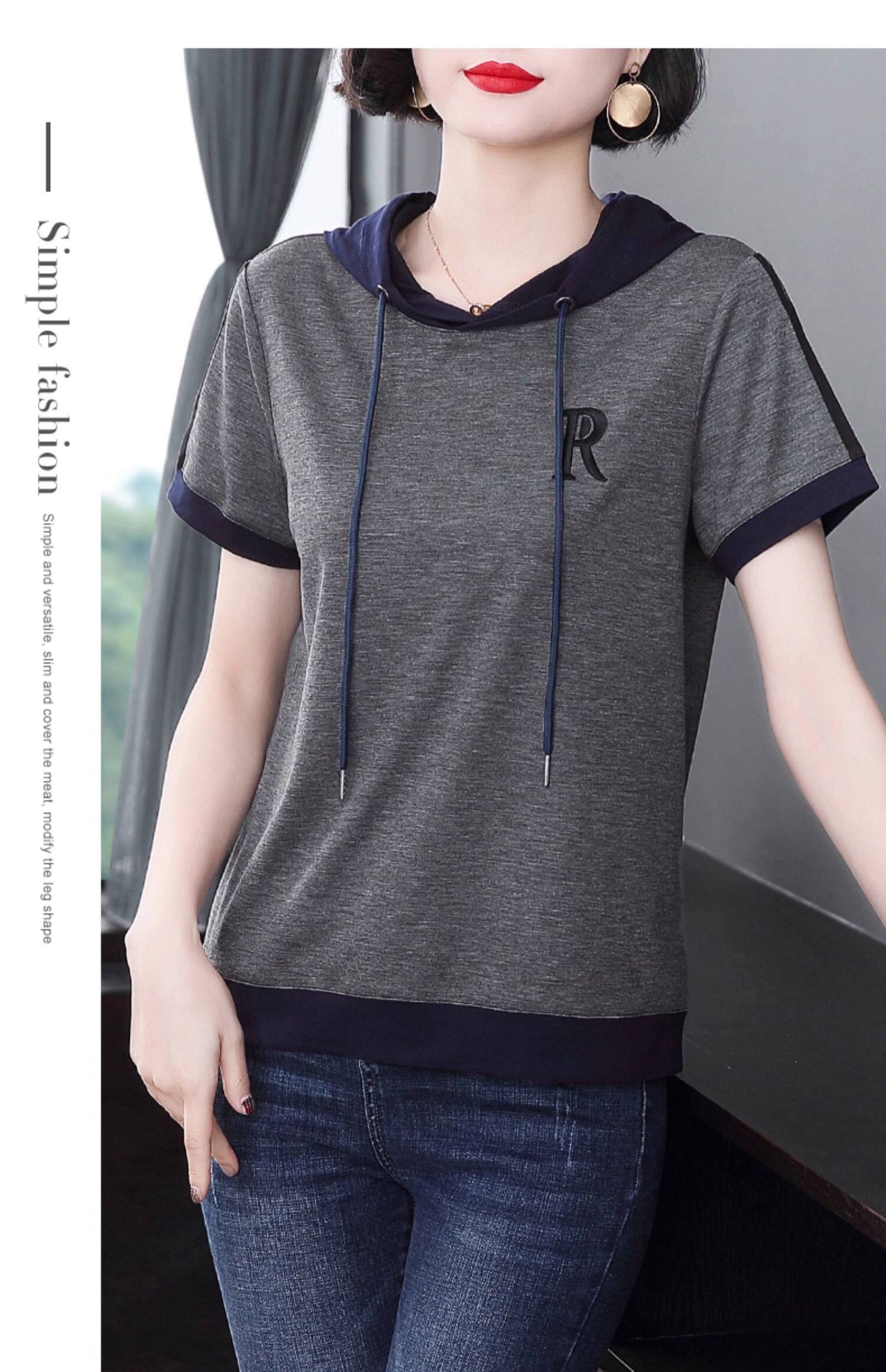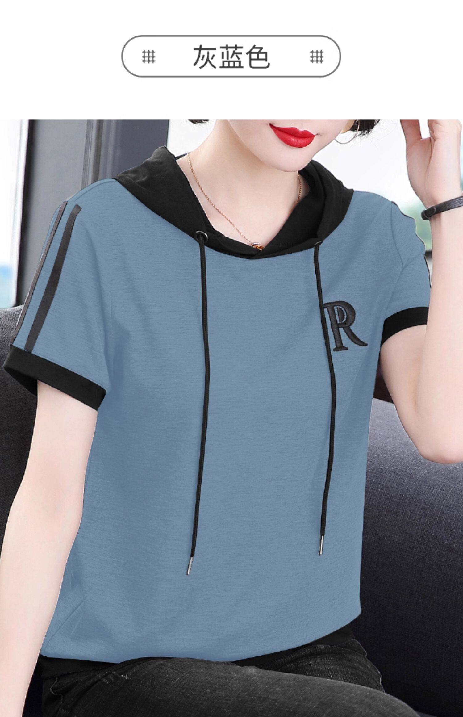 连帽短袖t恤衫女薄款夏装2026新款妈妈大码休闲带帽运动上衣宽松