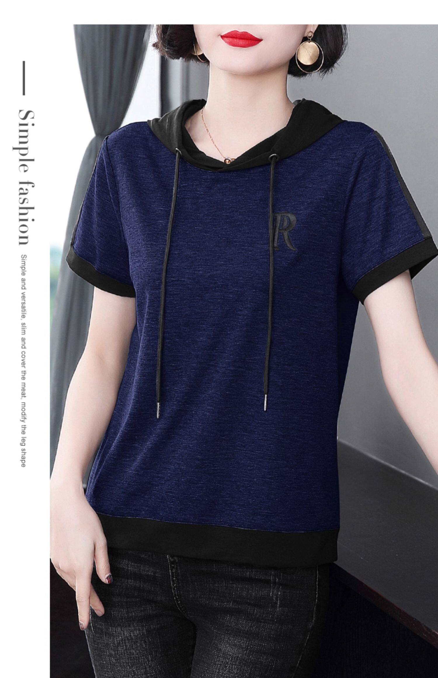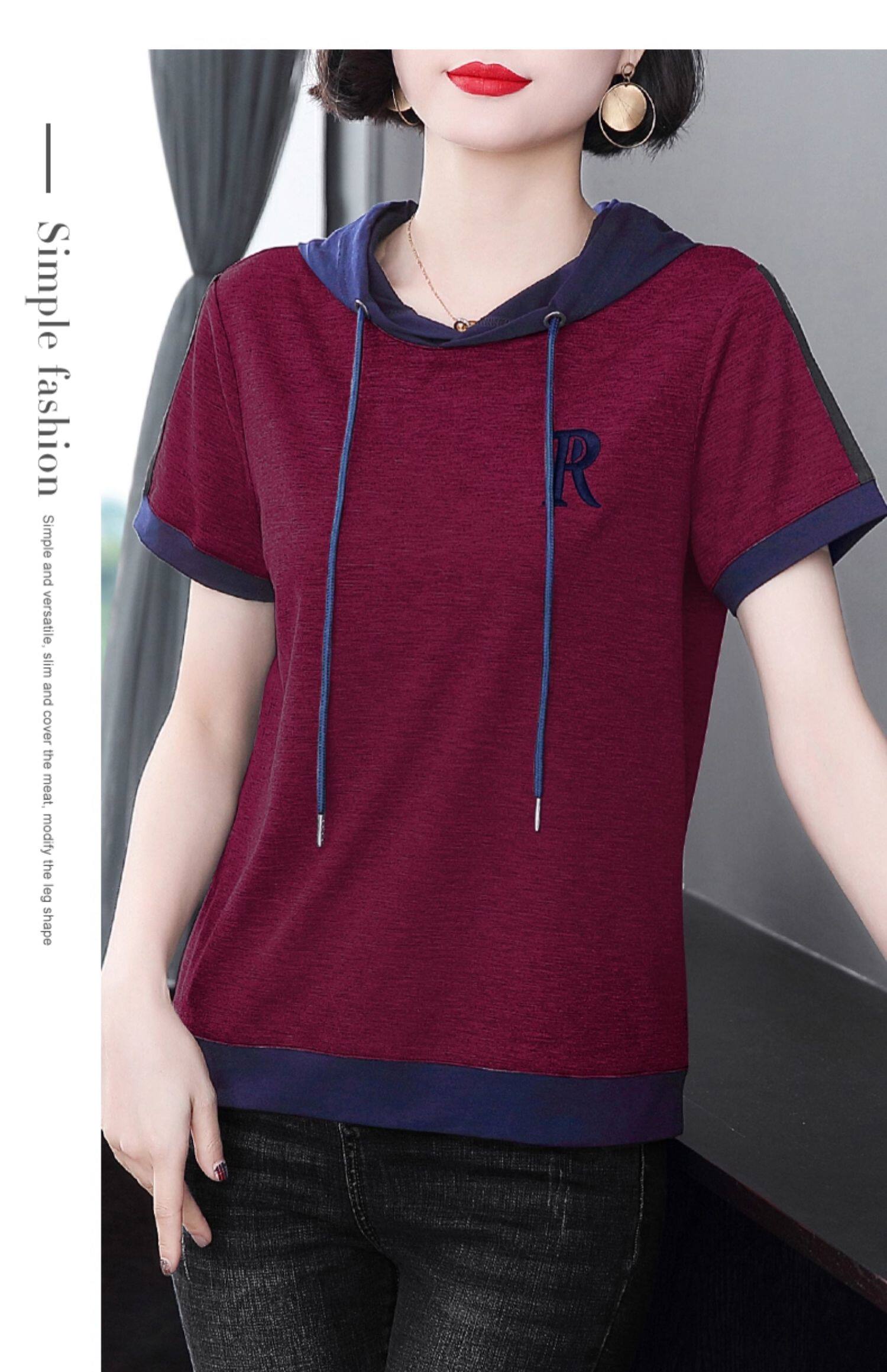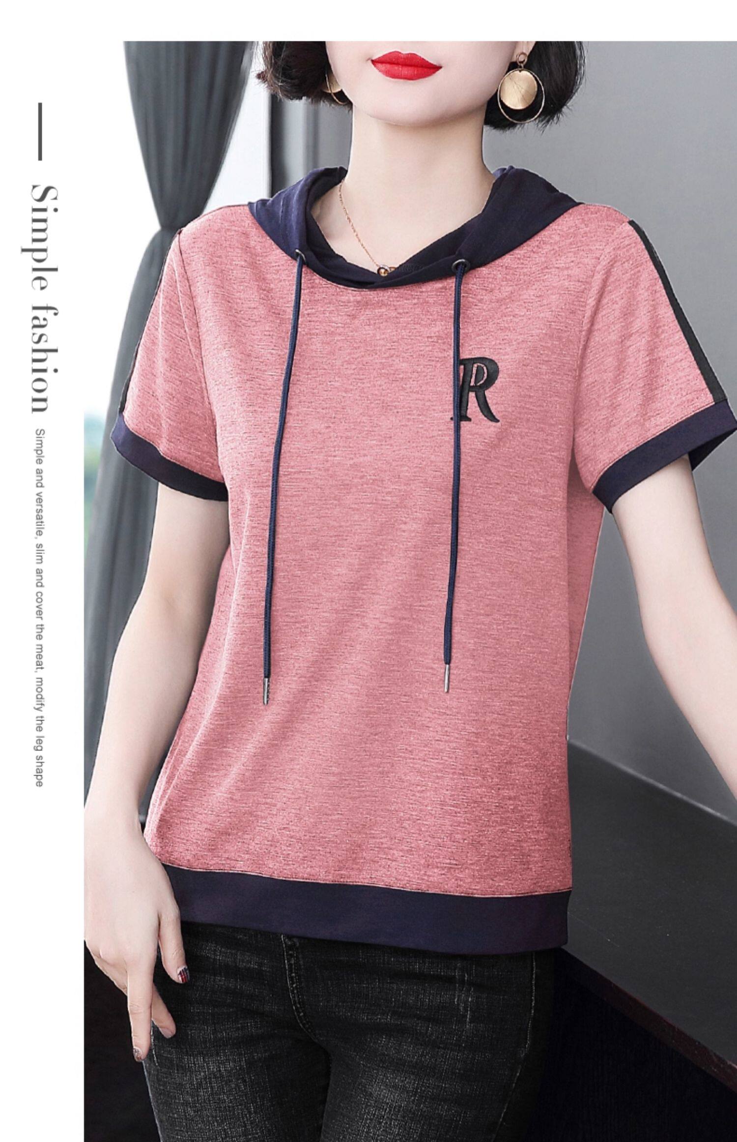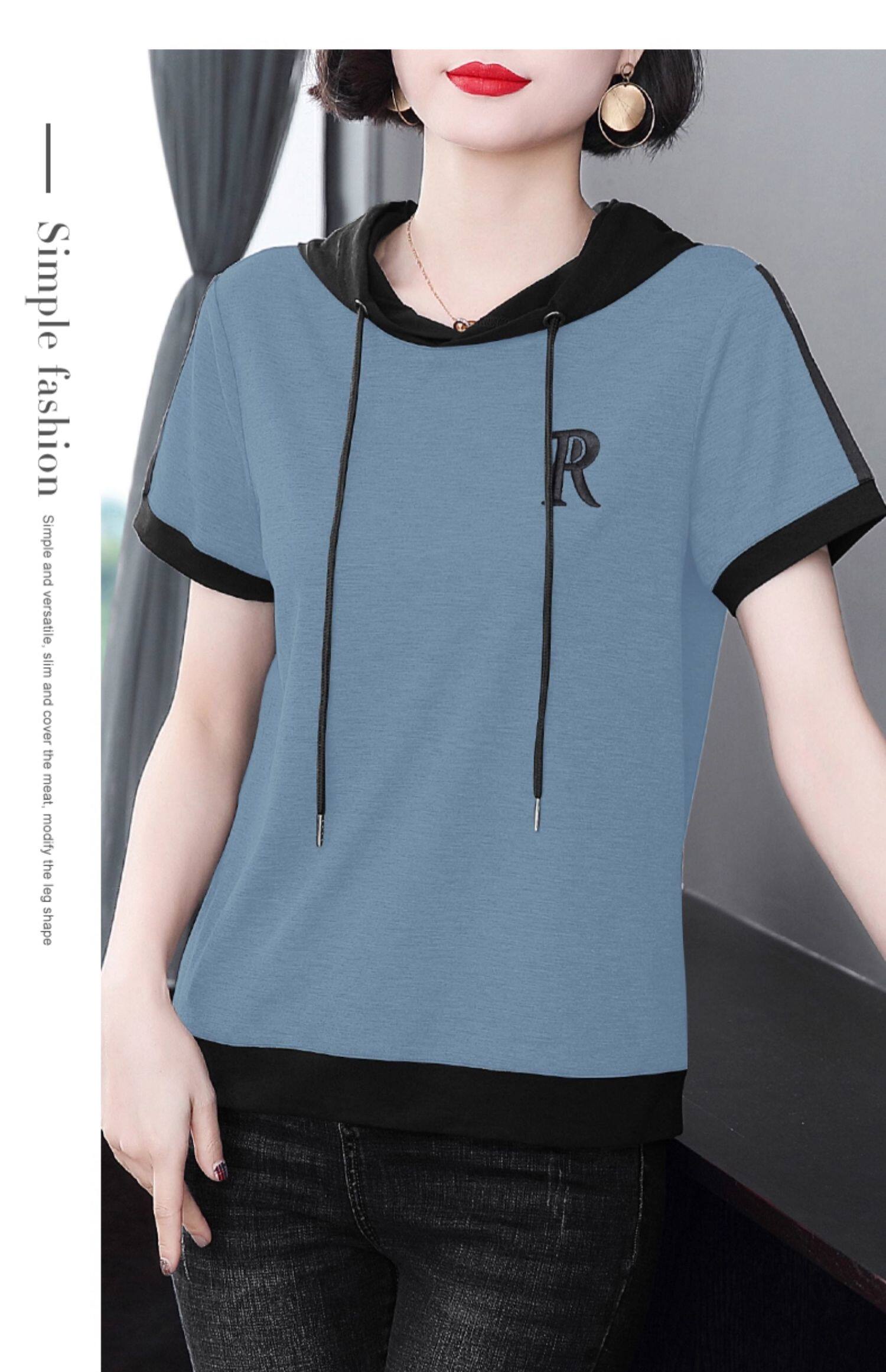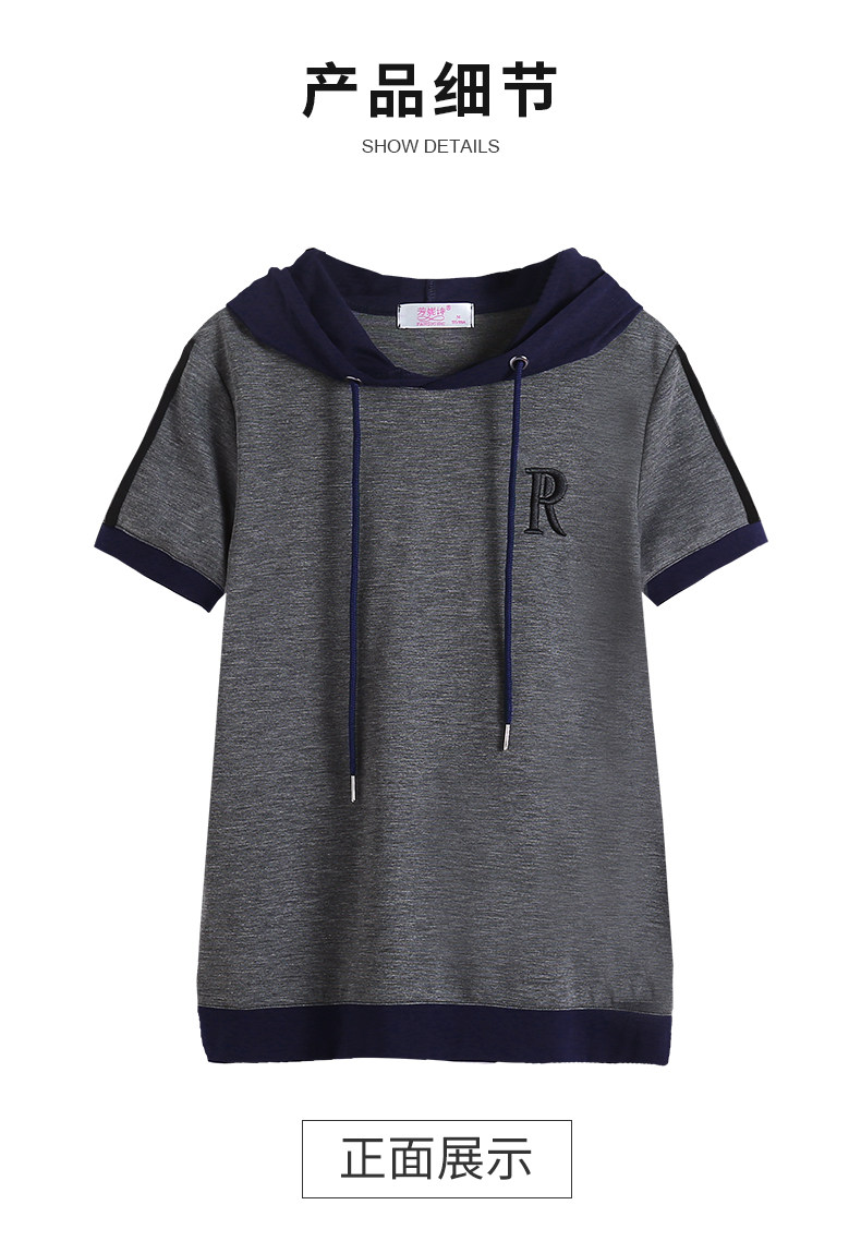 连帽短袖t恤衫女薄款夏装2026新款妈妈大码休闲带帽运动上衣宽松