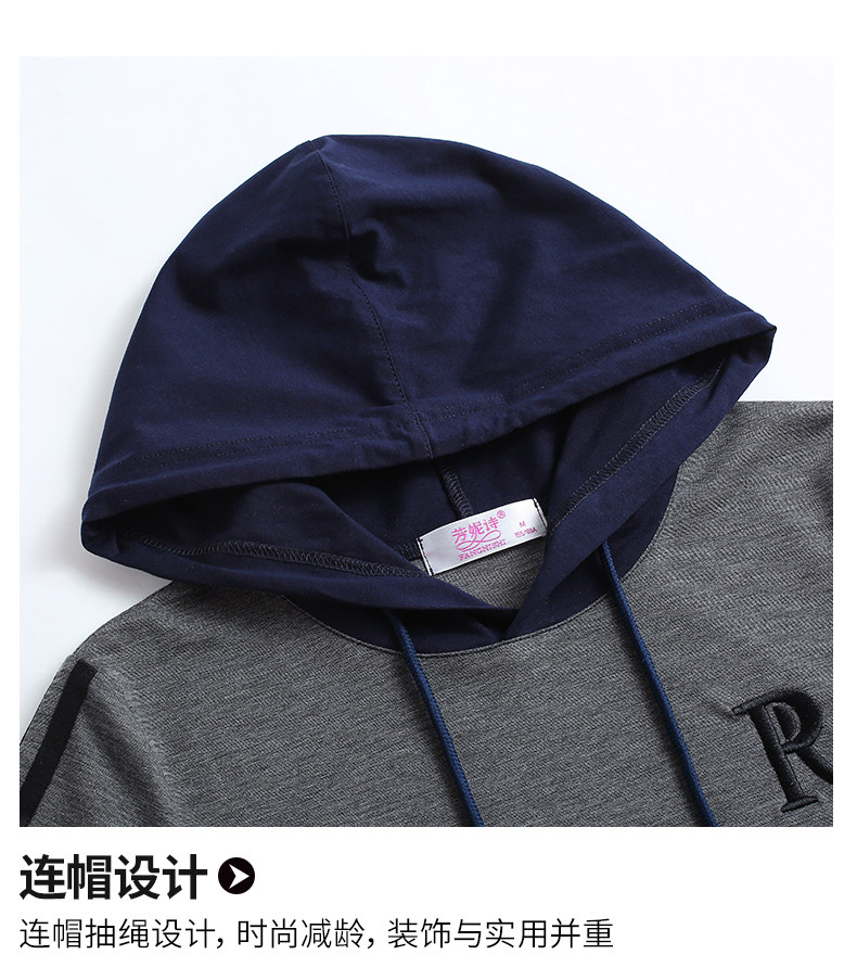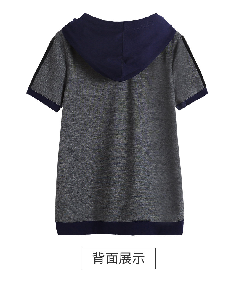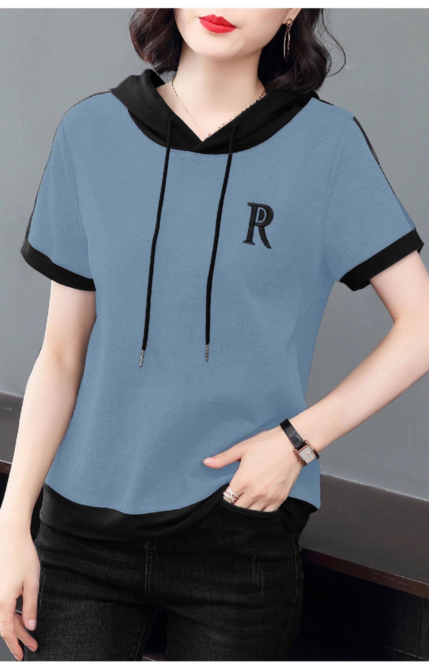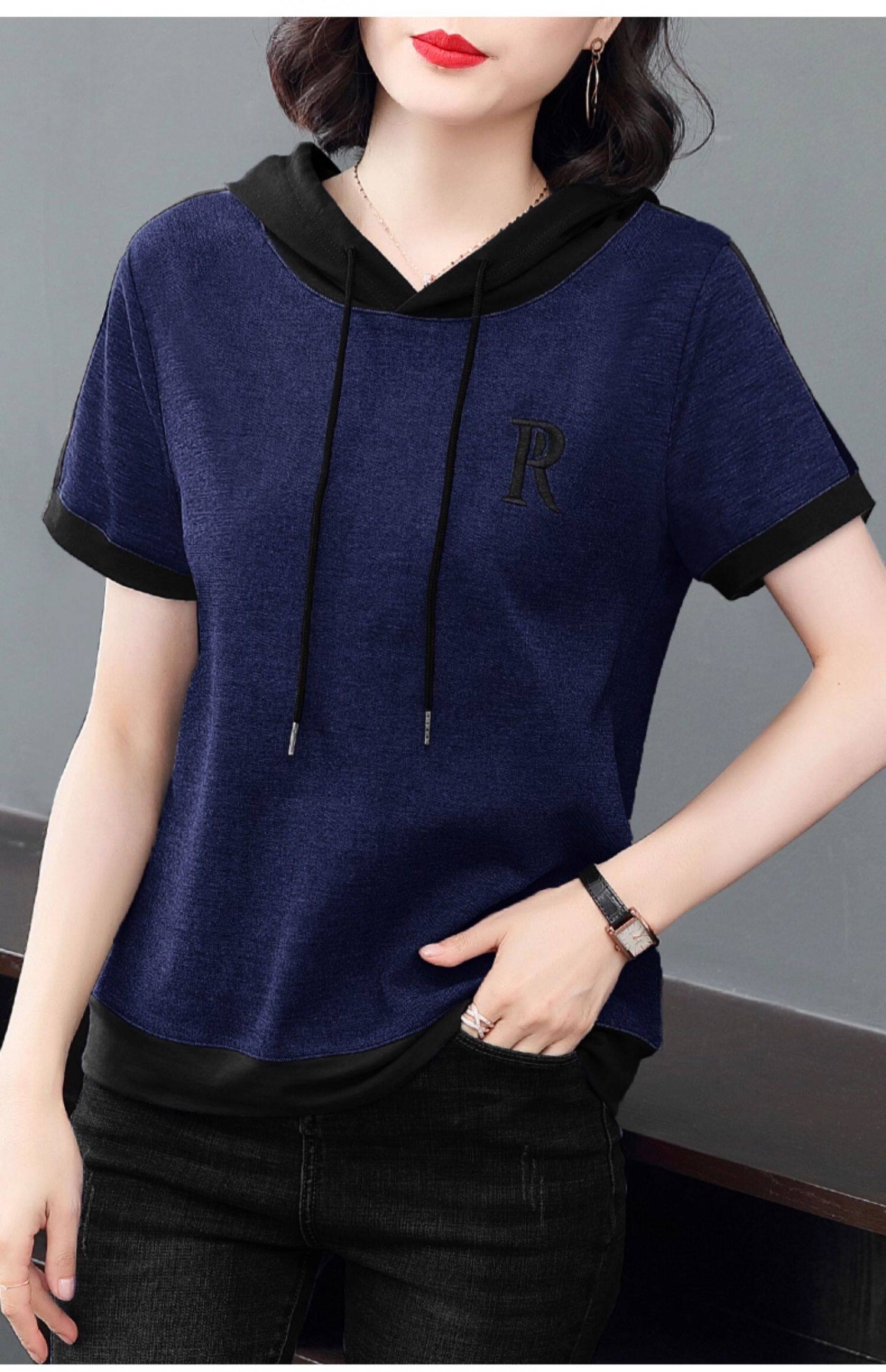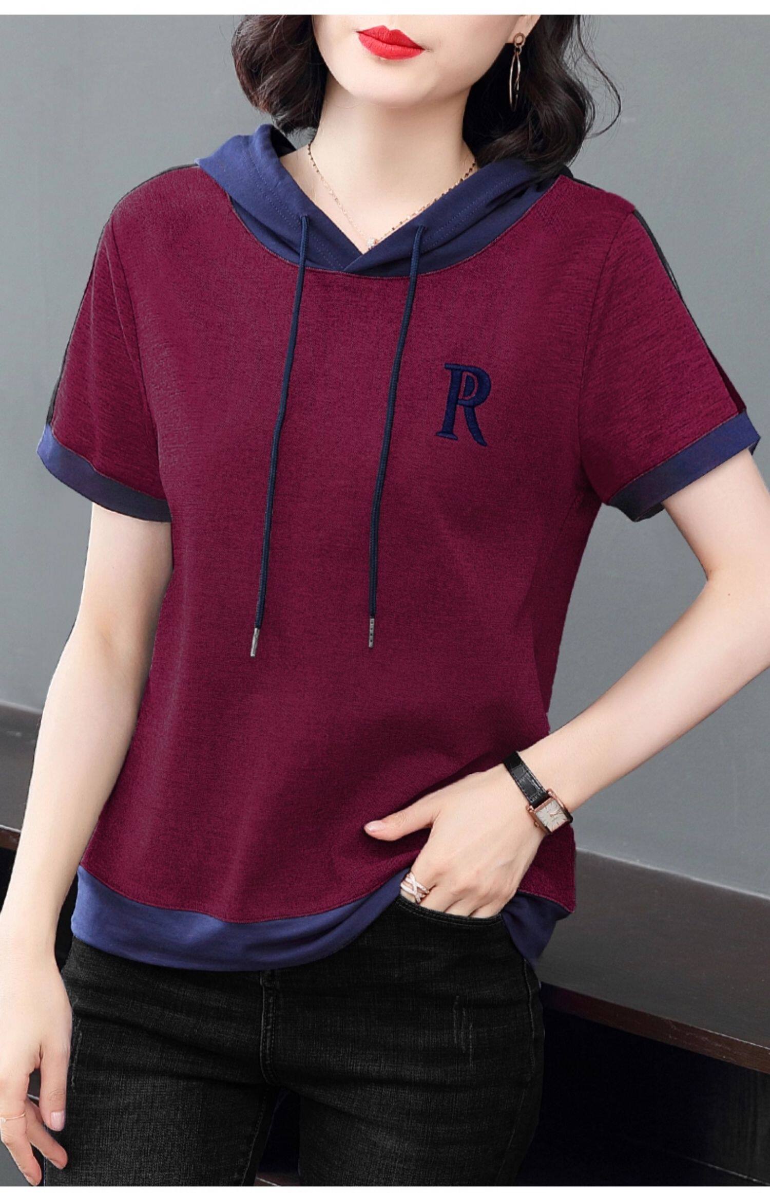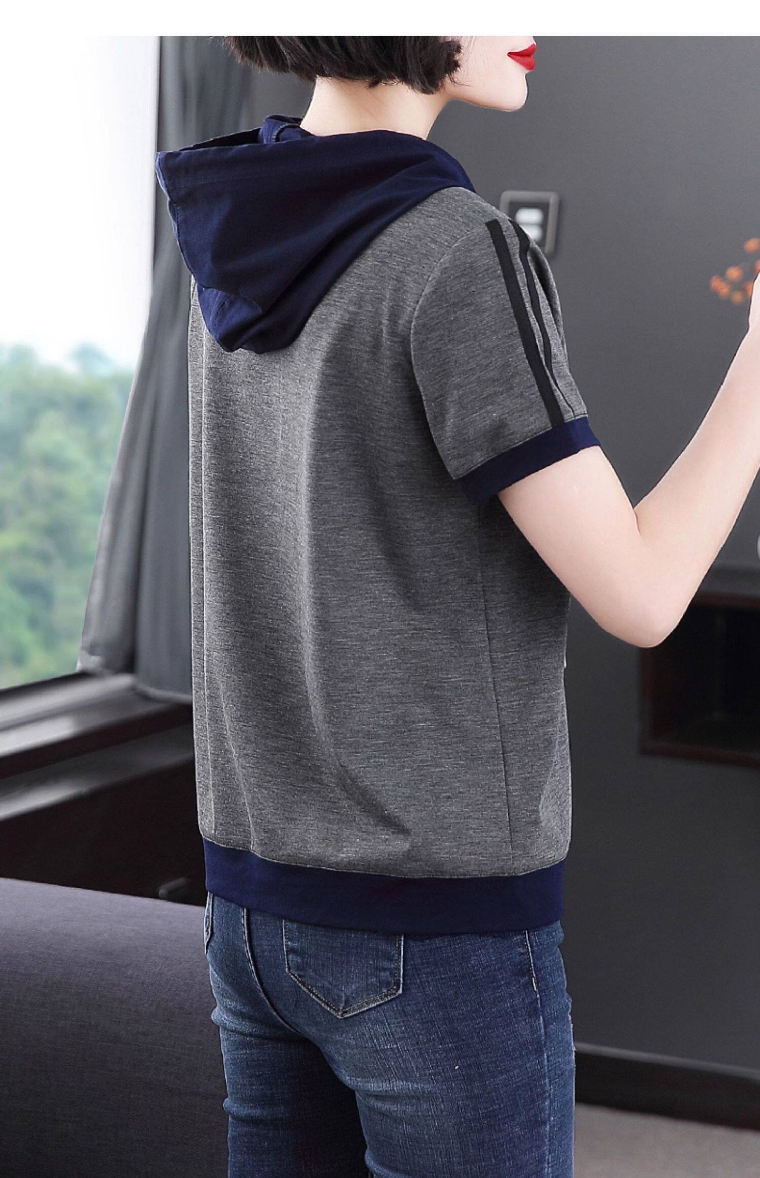 连帽短袖t恤衫女薄款夏装2026新款妈妈大码休闲带帽运动上衣宽松