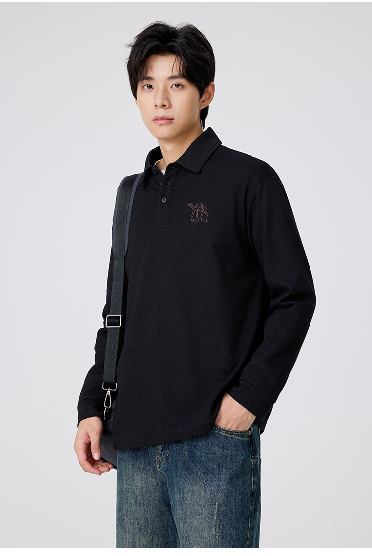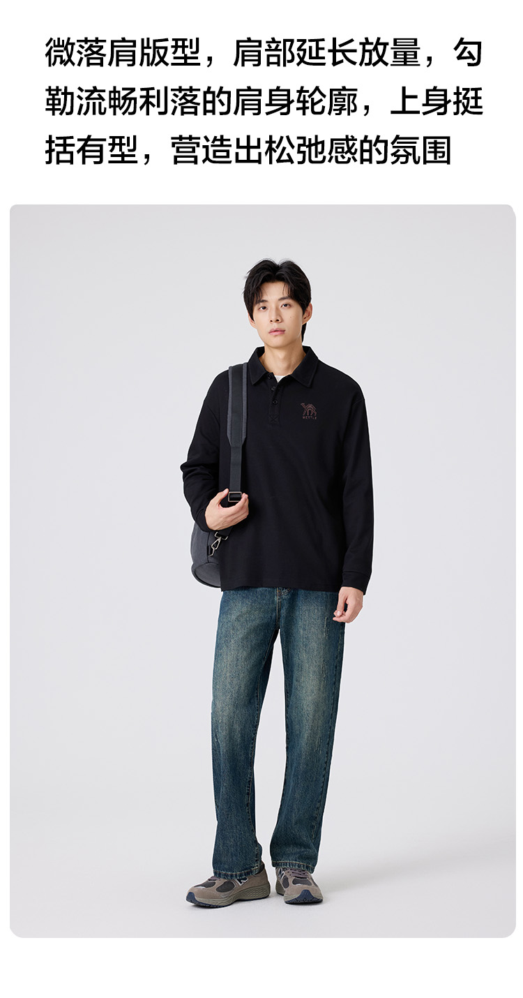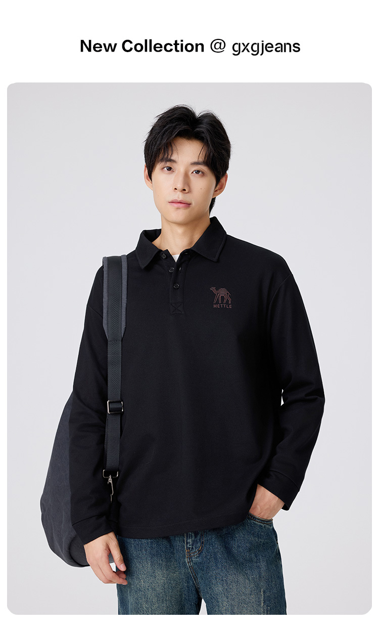 gxgjeans 男装长袖POLO衫2025秋款日常百搭垂顺透气亲肤男士打底衫上衣K&C